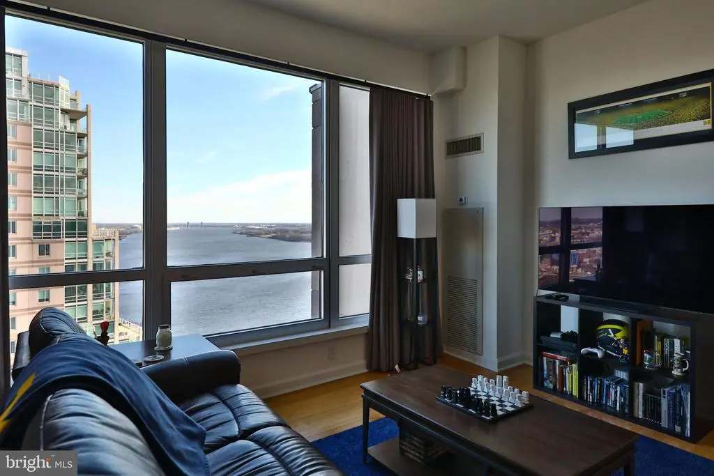 Experience sweeping views of the Delaware River from every room of this stunning 1 bedroom, 1 bath residence. Floor to ceiling windows fill the open concept living space with natural light, creating an airy and sophisticated ambiance. The designer kitchen features sleek cabinetry, stainless steel appliances, abundant counter space, and generous storage. Seamless engineered hardwood floors flow throughout the living areas, while the bedroom offers soft neutral carpeting for added comfort. The spacious owner’s suite includes a closet and a luxurious ensuite bathroom with a large jacuzzi tub, perfect for relaxing after a long day. Located within Waterfront Square Condominium & Spa, this premier gated community offers an exceptional resort style lifestyle along the riverfront, featuring 24/7 concierge service, a complimentary weekday shuttle to Center City, an indoor junior Olympic pool and hot tub, a wrap around river sundeck with expansive outdoor lounging areas, and a state of the art fitness center with steam, sauna, massage rooms, and on site fitness classes. Philadelphia’s largest green roof parks offer beautifully landscaped spaces with seating areas for entertaining, a play area, and a community herb garden. In addition, there are two fenced dog parks within the community. Twice yearly exterior window cleaning ensures crystal clear views, and semi annual A/C and heating filter changes maintain optimal comfort. Nestled within this private riverfront enclave, the community combines tranquility with urban convenience, just minutes from Center City, major highways, bridges, and the airport. Recent updates include newer hardwood flooring, custom window treatments, a customized bedroom closet, new kitchen appliances (2020), and a new water heater (2021). This residence presents a rare opportunity to enjoy elevated city living with stunning views, thoughtful upgrades, and premier amenities. Schedule your private tour today and discover why Residence P2305 is one of Philadelphia’s most coveted addresses.
