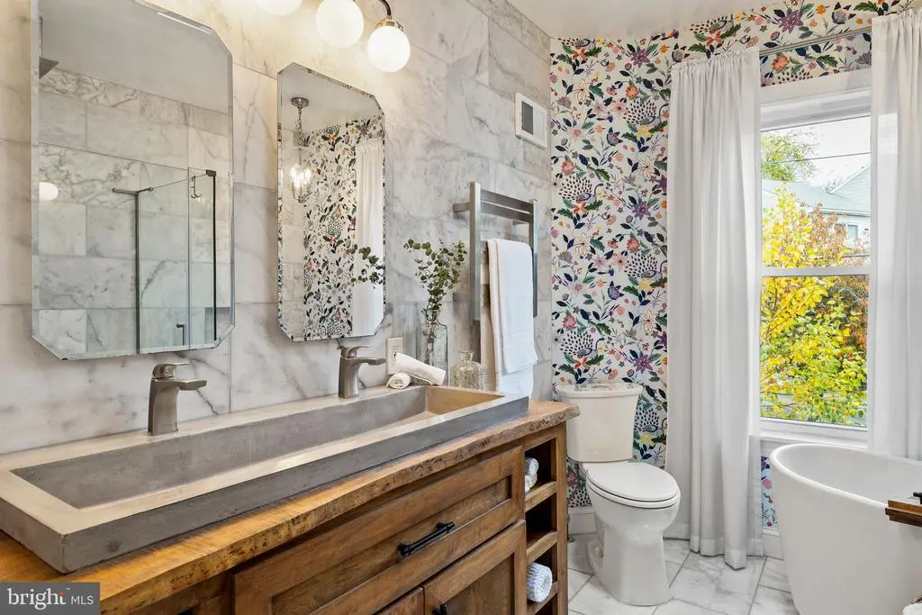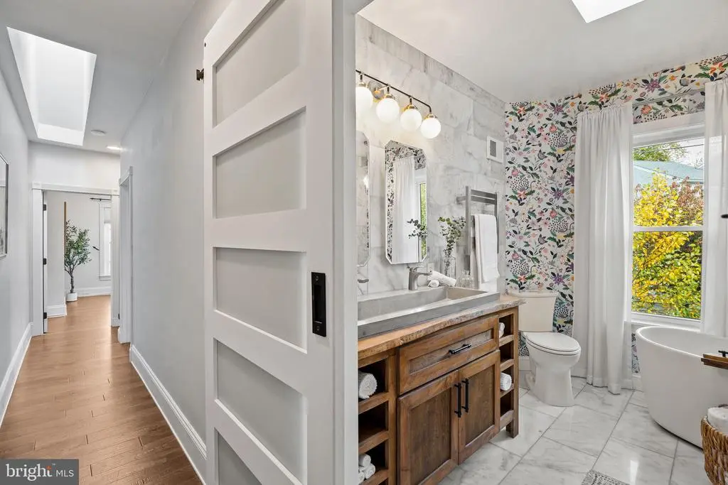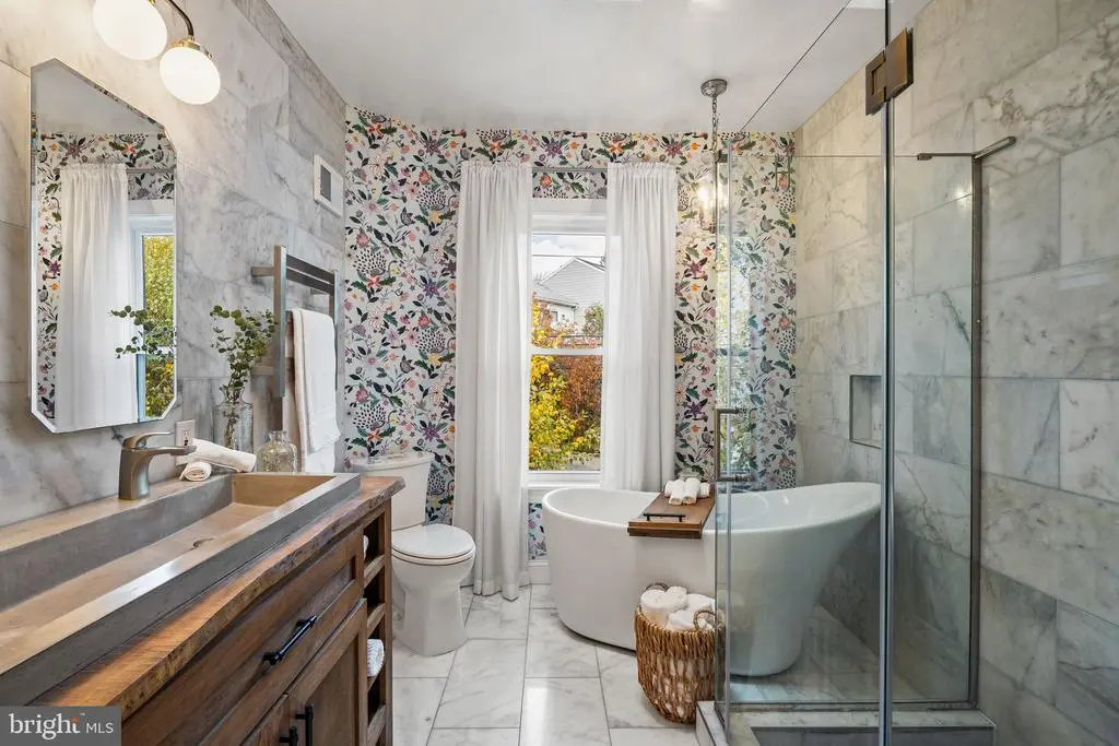 Welcome home to 211 Lofty Street. Perfectly situated on a corner lot, this admired Manayunk home pairs timeless curb appeal with warm, thoughtful design. Framed by gardens, mature trees, and a white picket fence, this home radiates the kind of character that makes you feel at home the moment you arrive. The outdoor spaces are what make this home truly special. Picture cozy fall evenings gathered under string lights on the brick patio for Friendsgiving, or summer nights spent watching the game on a projector with the fire pit blazing. This wide 50-foot yard provides rare green space for city living, with lush landscaping, custom flower boxes, and classic shutters that add charm in every season. Two private parking spots are tucked conveniently within the fenced yard, making everyday living easy and inviting. Step inside, where natural light fills the home through oversized windows and highlights the exposed brick and open floor plan designed for comfort and connection. The updated kitchen, completed in 2020, feels like something straight out of a magazine: bright, welcoming, and crafted with care. Featuring white cabinetry with black hardware, soapstone countertops, a double oven, a five-burner range with pot filler, reclaimed 100-year-old joist shelving, counter-to-ceiling subway tile, and a wood-paneled ceiling with warm, custom lighting. The kitchen opens seamlessly to the dining and living areas, centered around a gas fireplace that brings everyone together. A refreshed powder room with a barn door completes the main level. Upstairs, the primary bedroom feels like a quiet escape, with vaulted ceilings, skylights, exposed brick, and a generous closet. The middle bedroom features hand-stenciled walls and picture frame molding, while the third bedroom, currently a nursery, glows with natural light, wainscoting, and a custom closet. A hallway skylight leads to a spa-like bathroom completed in 2021, designed with floor-to-ceiling marble, a freestanding soaking tub, oversized glass shower with rainfall head, a custom wood vanity with stone sink, and a heated towel warmer. The perfect place to unwind after a long day. The finished basement adds even more living space, with high ceilings, two cozy lounge areas, and a large laundry and storage room. Peace of mind comes with a new HVAC system (2024) and hot water heater (2020). Living here means embracing the best of Manayunk life. You’re just a short walk to Main Street’s local cafés, restaurants, and shops, with community festivals, farmers markets, and friendly faces at every turn. Spend weekends at Pretzel Park, explore the Schuylkill and Wissahickon Trails, or catch a sunset along the Cynwyd Heritage Trail or Manayunk Towpath. With easy access to Kelly Drive, major highways, and the train into Center City, this home lets you enjoy both the energy of the city and the peacefulness of nature. 211 Lofty Street combines comfort, style, and community in one of Philadelphia’s most beloved neighborhoods. A home that truly invites you to slow down, gather often, and stay awhile. Make your appointment today! OFFER DEADLINE: MONDAY AT 12PM.