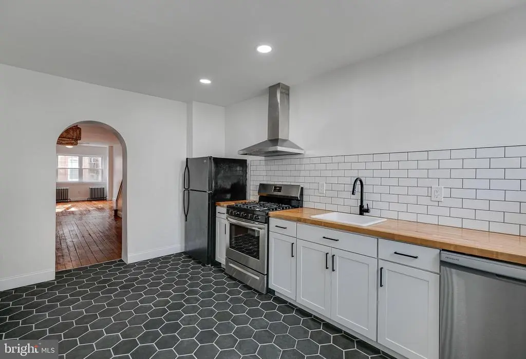 Pride of ownership is on full display at 3174 Miller Street. The main living space is anchored by a large south-facing window that allows natural light to pour in and cover everything from the high ceilings to the refinished original hardwood floors. Towards the center of the first floor is an open dining area, which provides a desirable amount of space to put on a record and enjoy a cocktail while hosting loved ones. Pass through the arched entryway to access the spacious kitchen adorned with butcher block counter tops, black hex tile floors, subway tile backsplash, high ceilings, and the continuation of natural light. The backyard is flanked by mature roses and hydrangeas, and offers an enclosed egress, ideal for city living. On the second floor is the 3-piece bathroom with stall shower, pedestal sink, and casement window. The middle bedroom is surprisingly large and can fit a king or queen bed with ease. At the front of the second floor is the massive primary bedroom, featuring an ideal amount of closet space and a generous footprint to furnish your sun-soaked oasis. 3174 Miller Street is within walking distance to Her Daughters Cafe, Campbell Square, La Roma, and all the local favorites found on Richmond Street.