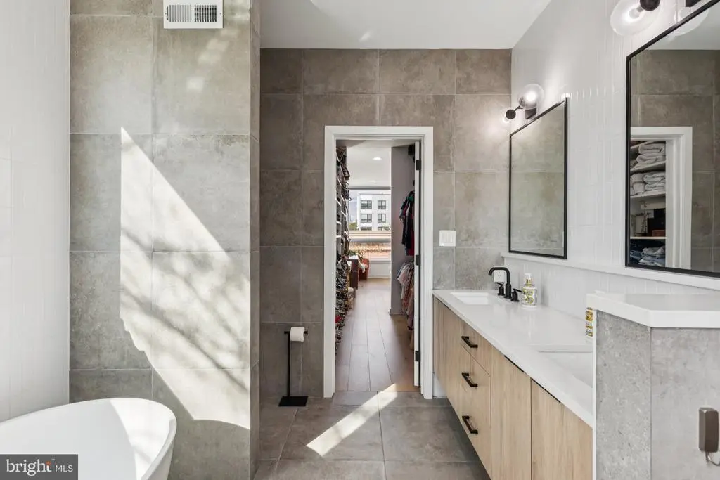 Welcome to 2150 Kater Street, a stunning custom-built corner home in the heart of Graduate Hospital and the Greenfield Catchment. Offering over 2,200 square feet, this 4 bedroom, 3 bathroom residence combines thoughtful design with modern upgrades and has FIVE years remaining on the Tax Abatement. The main level features wide-plank white oak flooring, floating stairs with exposed brick, and an open layout with a spacious living and dining area. The chef’s kitchen boasts Calacatta quartz countertops, custom maple cabinetry, GE Café Series appliances including a 6-burner gas stove, breakfast bar, pantry, and abundance of natural light. Upstairs you’ll find two bright bedrooms, a stylish hall bath, laundry, and a private patio. The third floor is a true retreat with a primary suite offering a custom walk-through closet, shiplap ceiling, and spa-like bathroom complete with dual vanities, soaking tub, skylight, bidet, and walk-in shower with dual rainfall heads and body jets. The fully finished lower level also provides flexible space for a fourth bedroom or office with a full bath. Outdoor living shines with a second-floor patio and a spectacular roof deck with 360-degree city views, which has been recently resurfaced and upgraded with custom LED lighting. Additional perks include a full smart alarm system with smartphone control, smart thermostat, a grill and wine fridge. Perfectly situated in the Graduate Hospital Area and adjacent to Fitler Square, this residence provides easy access to fine dining, one-of-a kind shopping, world-renowned cultural destinations and exciting nightlife. All major public transportation, PENN, CHOP, HUP, Rittenhouse Square, and the Schuylkill Banks/River Park are just steps away.