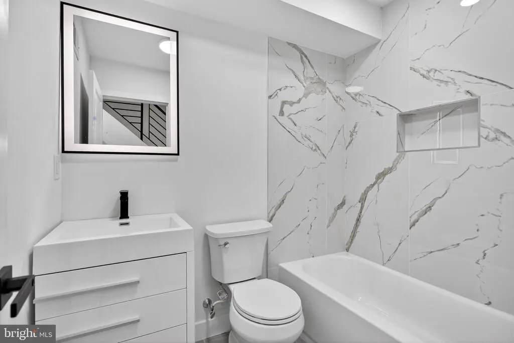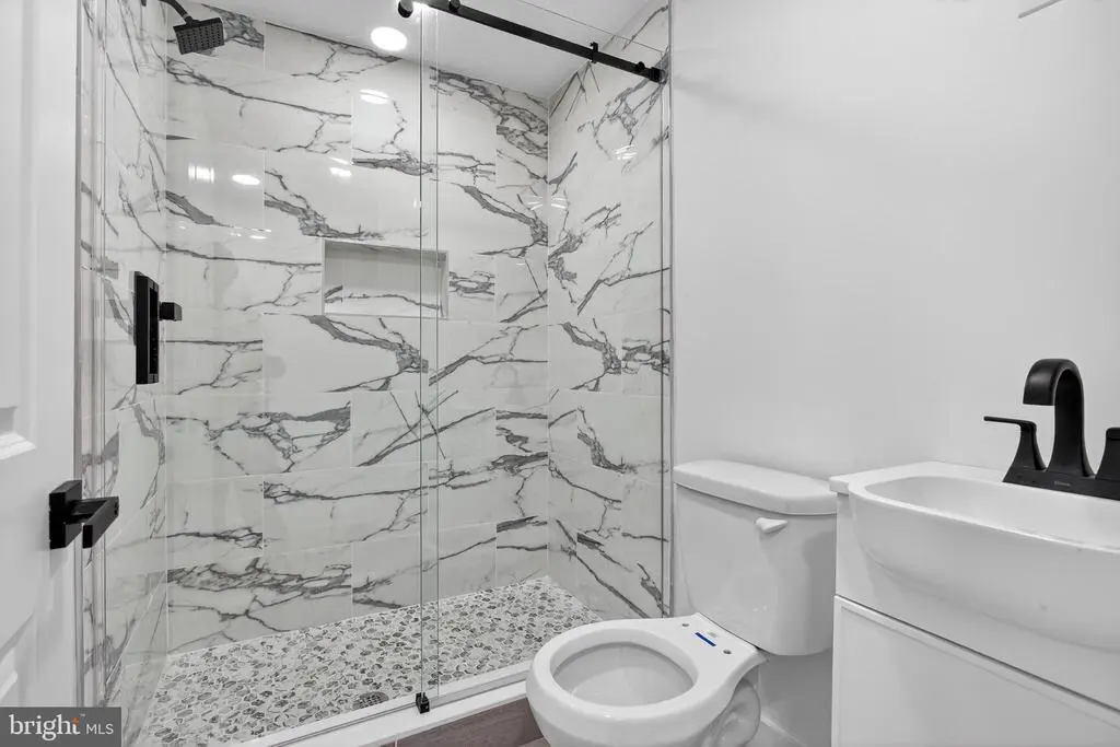 Step into sophistication and modern comfort with this exceptional new construction residence, a 3-story home with a fully finished basement that together create the experience and feel of a 4-story luxury property. Every inch of this home is a showcase of thoughtful design, high-end finishes, and true craftsmanship—delivering an elevated lifestyle in one of Philadelphia’s most exciting and fast-growing neighborhoods. The third floor is a private retreat devoted entirely to the primary suite, featuring a spacious 13x13 master bedroom, a 15x5 custom walk-in closet, and an impressive 13x12 spa-inspired bathroom with double rainfall showers and his-and-hers vanities. This elegant space blends modern style with ultimate comfort for the perfect escape. The second floor offers two bright and spacious bedrooms (each 13x11), both with generous closets (65x22) and a beautifully designed full bathroom enhanced by black accent fixtures and contemporary finishes. Oversized 48x60 windows fill every room with natural light, adding warmth and openness throughout. On the main level, the open-concept kitchen and living area bring form and function together. The kitchen showcases tall modern cabinetry, a central island for additional counter space, and premium stainless steel appliances, all set within a sleek, modern layout perfect for entertaining or daily living. The fully finished basement expands your living space even further, complete with a full bathroom, making it ideal for a guest suite, media room, or family gatherings. This level adds depth and versatility, creating the full impression of a 4-level home designed for today’s lifestyle. Throughout the entire house, including the basement, you’ll find luxury vinyl plank flooring, offering style, durability, and a seamless flow. The architectural staircase, built with a central steel beam and thick reclaimed pine wood slabs (12x36x11), stands as a stunning design centerpiece—merging industrial strength with handcrafted artistry. Built with both elegance and safety in mind, this home includes a modern fire sprinkler system and a fiberglass rooftop deck—a perfect space to relax, watch the stars, and enjoy breathtaking city skyline views. Conveniently located near Aramingo Avenue, this home provides quick access to major routes, shopping, dining, and a vibrant community surrounded by other new construction developments. Experience the perfect combination of modern luxury, functional design, and architectural beauty—a 3-story masterpiece with a full finished basement that truly feels like a 4-story dream home.