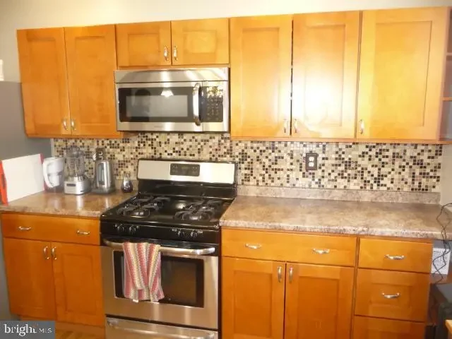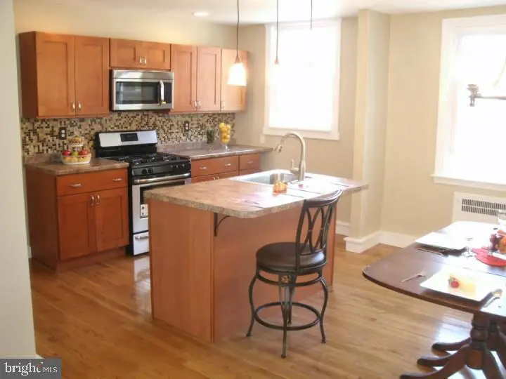 Great Mayfair location, 18' Stone and Brick airlite home, Front lawn and front concrete patio, Main level features foyer entry with coat closet, Living room with newer h/w flooring , Dining area with h/w flooring and modern kitchen with island featuring sink and SS dishwasher, Kitchen has a wall of wood cabinets with SS gas range and newer SS refrigerator. Upper level features Primary bedroom , 2 other bedrooms and an updated hall bathroom. Lower level features a partially finished recreation area, laundry area with exit to rear driveway with 1 car parking. Garage has been shortened and is used for storage. Electric panel is located in the garage. Replacement windows t/o, newer heater & h/w heater. Convenient location near public transit, shopping, schools and major roads such as I95 and Rt ! (Roosevelt Blvd)