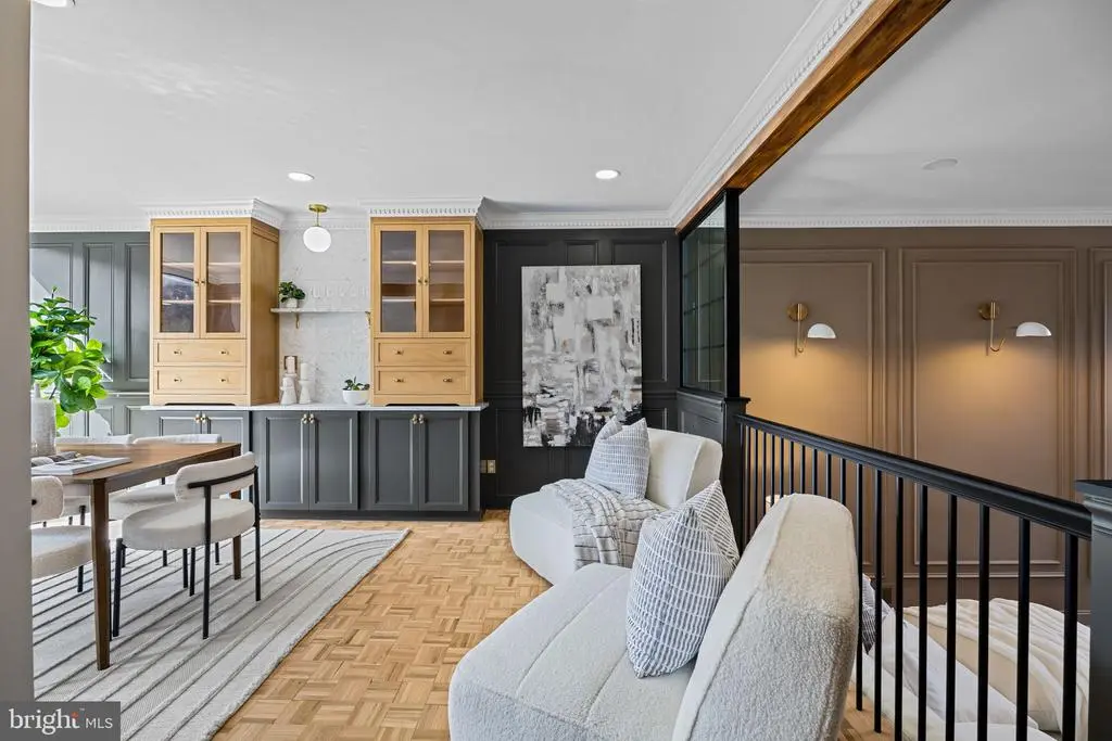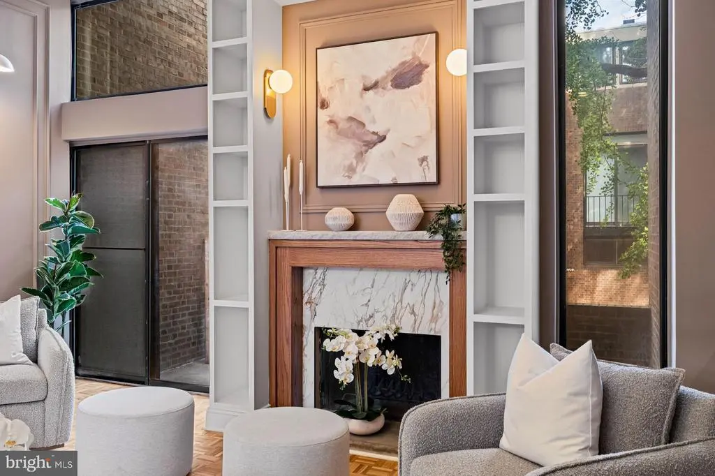 Welcome to this exquisitely reimagined residence in Society Hill, originally designed by Louis Sauer and thoughtfully renovated to offer the perfect balance of modern luxury and timeless character. This four-bedroom, three-bath home with private parking showcases elevated craftsmanship and refined finishes throughout. As you enter the foyer, you’re greeted by a bright and expansive living area featuring 11-foot ceilings, classic mill work, intricate custom moldings, a marble-surround fireplace, and beautifully preserved parquet oak floors. Floor-to-ceiling windows flood the space with natural light and frame serene views of the tree-lined street. Just beyond the living room, a patio overlooks the lushly landscaped gardens, creating an inviting space for morning coffee or evening relaxation. The gourmet kitchen is a showpiece of design, appointed with premium stainless steel appliances, inset cabinetry, Carrara marble countertops, and a custom-tiled range hood. An adjacent dining area with custome built-in shelving and cabinetry provides a warm and elegant setting for entertaining. Upstairs, the tranquil primary suite offers a generous walk-in closet and a spa-like bathroom featuring a walk-in shower and a freestanding soaking tub. Two additional bedrooms and a full hallway bath complete this level, blending comfort with thoughtful design. The lower level is equally impressive, offering a spacious bonus room with over-sized windows overlooking the rear patio and garden—perfect for a media lounge or entertaining space. This level also includes a mudroom/bar area and an additional full bathroom for convenience. A gated parking space directly behind the home provides ease and functionality in this coveted neighborhood. Nestled in the heart of a historically preserved community, residents enjoy access to beautiful green spaces like Three Bears Park and Independence Park. All of this, just steps from acclaimed restaurants, charming cafés, Ritz and PFS theaters, and a short 15-minute drive to the airport.