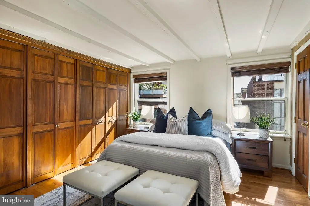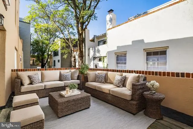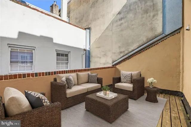Located on a quiet block of Rittenhouse Square, this charming 2 bedroom, 1 bathroom, trinity style home offers the perfect blend of historic character and modern comfort. At over 1,200 square feet, this expanded trinity is 30% larger than most, featuring a three-foot-wider layout and a kitchen extension at the rear, creating a more spacious and functional floor plan. Step inside the south-facing façade, where abundant natural light fills the cozy living area, complete with exposed brick walls, a fireplace, built-in shelving, and a convenient coat closet. The kitchen features tiled floors, granite countertops, a subway tile backsplash, and a dining nook, plus sliding doors leading to a private patio, ideal for a small herb and flower garden. The second floor offers a comfortable bedroom with two closets, a full bathroom with a tiled bath/shower, a linen closet, and access to an expansive rear deck ideal for morning coffee and or dining al fresco. The thoughtful design even allows for large furniture to be moved easily via the deck or the third floor balcony. Upstairs, the spacious primary bedroom spans the entire level, boasting a full wall of closets, an additional storage closet, and a charming Juliet balcony. The lower level houses the washer/dryer and provides extra space for storage. Enjoy city living at its best, just a short stroll to Rittenhouse Square Park, South Street, and neighborhood favorites like Pub & Kitchen, Southgate, Sabrina’s Café, and City Fitness. Commuters will love the convenient access to 30th Street Station for travel to New York or D.C., the University of Pennsylvania, and the direct line to the airport via Penn Medicine Station.
