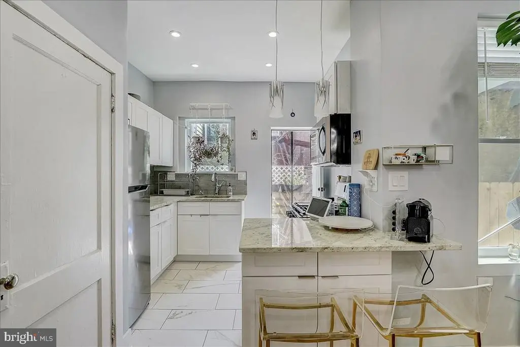 Fantastic, modern and fun home on a great street. Newly remodeled from top to bottom with high end finishes. Freshly painted soft gray throughout with all new windows, central air and solar panels to off set your utitly bills. Enter into your living room with a pretty glass transon above. The centerpiece is the orginal stone fireplace mantel carved out by a master craftsmanof its time. High end and stylish ceiling fans throughout. Hickory wide planked engineered flooring. The kitcehn has white shaker cabinets with a 2 seat island with cashmner vanilla counters. Beautiful elogated vintage tile for a backspalash. Sweet small outdoor space for a grill and sunshine. Beautiful pendant ligjting over the dining area. Plenty of natural light but also recessed lighting throughout. Second floor bathroom has 2 modern european vanity sinks with fun accessory lighting. Vintage backsplash and cashemere tiled flooring. Two nice sized bedrooms. Basement is unfinished but great for laundry and storage. Priced to sell,