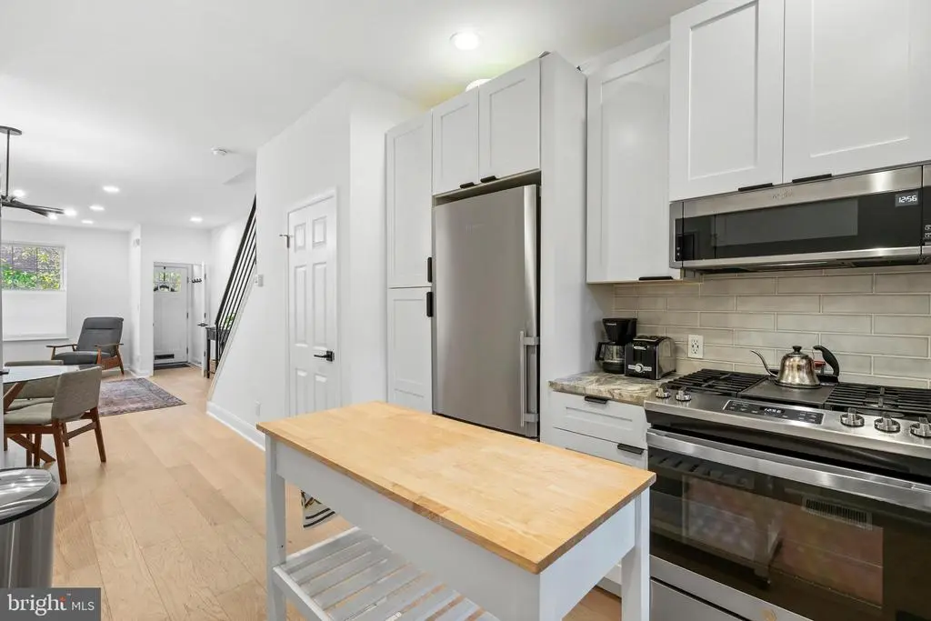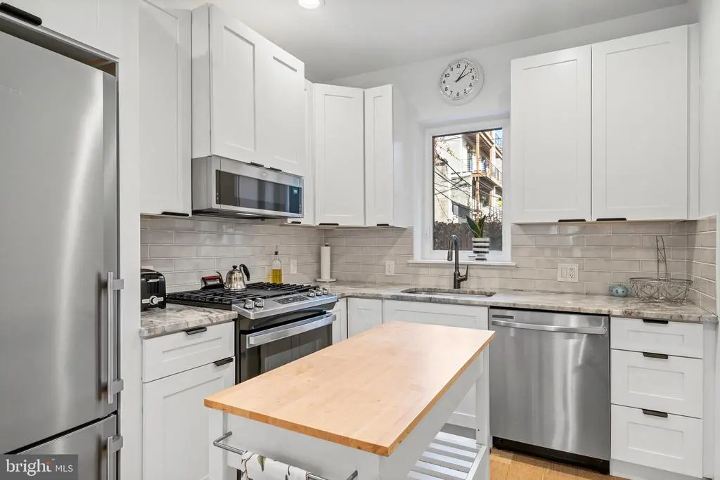 Welcome home! This vibrant and light-filled classic 3-story row home is located on a prime block in Graduate Hospital and has been recently renovated from bottom to top. Come on in and hang up your things in the welcoming vestibule. The living space is bright and open, with recessed lighting, wide-plank blond wood flooring, dedicated space for a dining table, and an adorable half bath. The designer kitchen features high-end appliances, abundant storage in the white shaker cabinets and pantry, a tile backsplash to accent the granite countertops, a breezy casement window over the sink, and a glass door leading to the yard area. Out back, there’s a private fenced patio for grilling and chilling, and a convenient side alley for putting the trash out or bringing your bike in. The second floor has two bright bedrooms and a hall bath with laundry. Next, prepare to be impressed by the quiet owners’ retreat on the third floor! The front bedroom is spacious and airy, with dual closets and a ceiling fan; the bathroom on this floor has a jetted soaking tub and separate glass-door tiled shower. There is also a bonus room with sliding doors that open onto a small balcony. Most recently used as a fitness studio, this room would be an ideal office, nursery, or lounge area. Basement is clean and dry and provides plenty of additional storage. Oh, and are you tired of rising energy prices? This home comes with solar panels (owned, not leased), which typically means $0 electric bills. Last but not least, the location: for the Philly sports fans, performing arts aficionados, and public transportation enthusiasts, this is just one block from Broad Street! Everything the city has to offer is just a few minutes in any direction: Rittenhouse Square shopping and restaurants, multiple grocery options, theaters, and local dining favorites on South Street—just a few of the highlights surrounding this A+ location. So much to love about this home! We welcome your visit and encourage a stroll around this fabulous neighborhood!