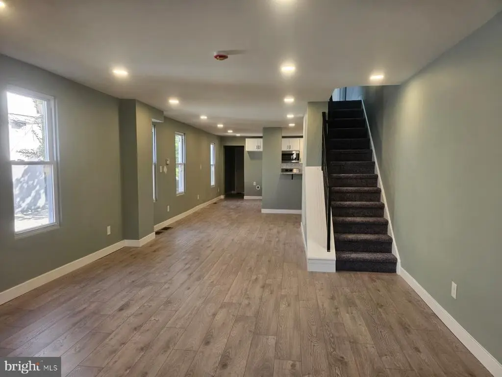Step inside this beautifully renovated 3-bedroom, 1 and 1/2 bath twin home in the heart of Philadelphia’s Fern Rock neighborhood. Every detail has been thoughtfully designed to blend modern comfort with classic charm. The open-concept main level features wide-plank luxury vinyl flooring, fresh neutral paint, and recessed lighting that fills the space with warmth and brightness. The spacious living and dining area flows effortlessly into a brand-new chef’s kitchen complete with white shaker cabinets, contrasting wood-tone lowers, subway-tile backsplash, and sleek granite countertops. Stainless steel appliances—including a gas range, built-in microwave, and dishwasher—complete this stylish and functional space. Upstairs, you’ll find three comfortable bedrooms, each with plush new carpeting, modern trim, and ample natural light. The stunning full bath showcases designer tilework, a navy vanity with marble top, matte-black fixtures, and oversized hexagon floor tiles for a bold, contemporary finish. Additional features include updated mechanicals, new windows, modern railings, and energy-efficient LED lighting throughout. The clean, dry basement offers excellent storage or potential future finishing options. Conveniently located near La Salle University, a block from Fern Rock transit center, major highways, and local shopping, this home delivers modern living in a prime city location—perfect for first-time buyers!