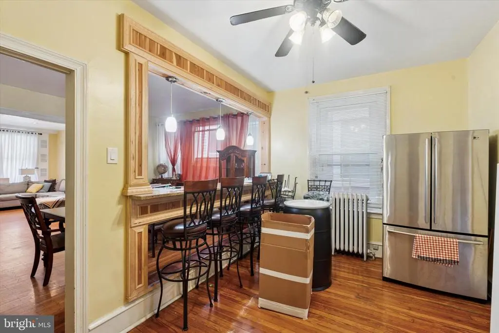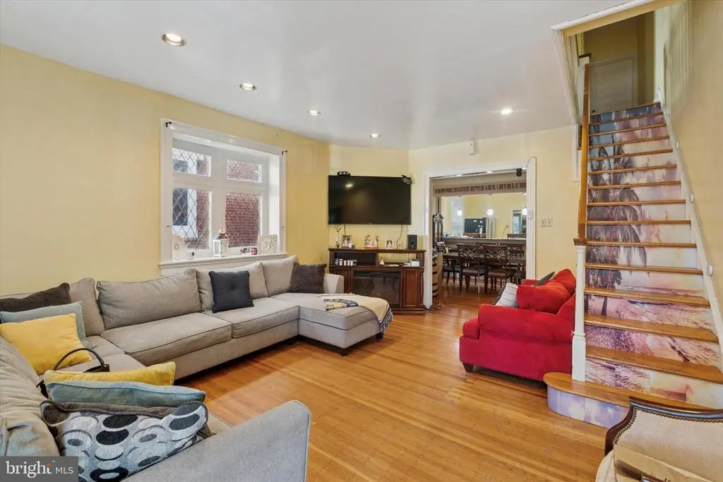 Welcome to 5507 N Marshall St! This large 3 bedroom house is on a quiet block near public transportation, grocery stores, and walking trails through Tacony creek. Walk in to a bright living room with large windows and beautiful hardwood floors. The dining room is great for entertaining, with space for a large table and bar seating before entering the kitchen. The kitchen leads to a fenced back patio that is ready to be transformed into your own oasis. Upstairs there are three large bedrooms with tall ceilings and hardwood floors throughout. The primary bedroom has a beautiful bay window. The basement spans the entire length of the house and has the plumbing and frame work installed for another bathroom.