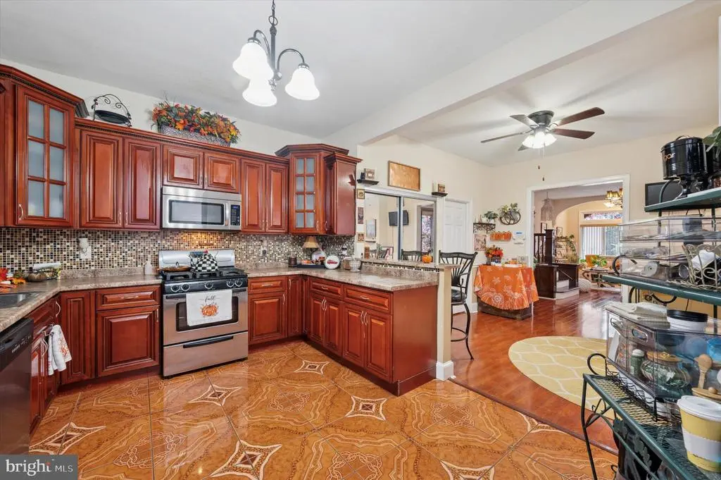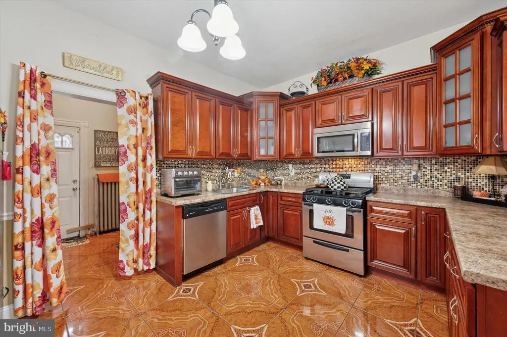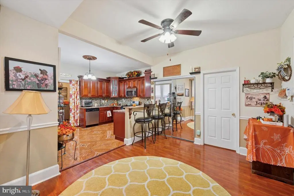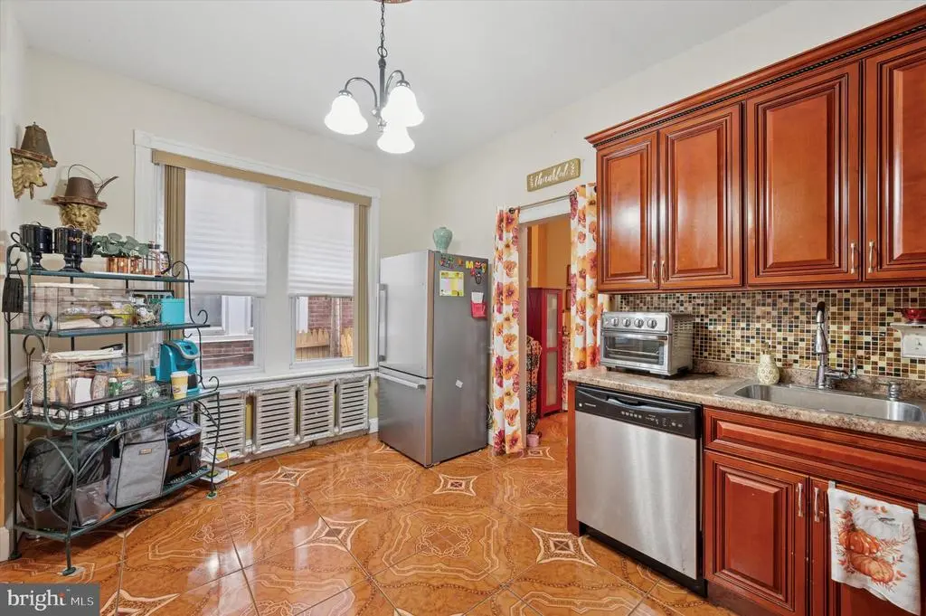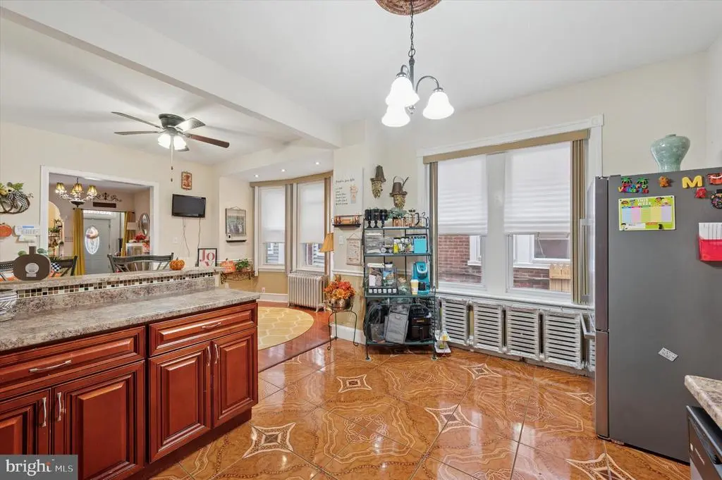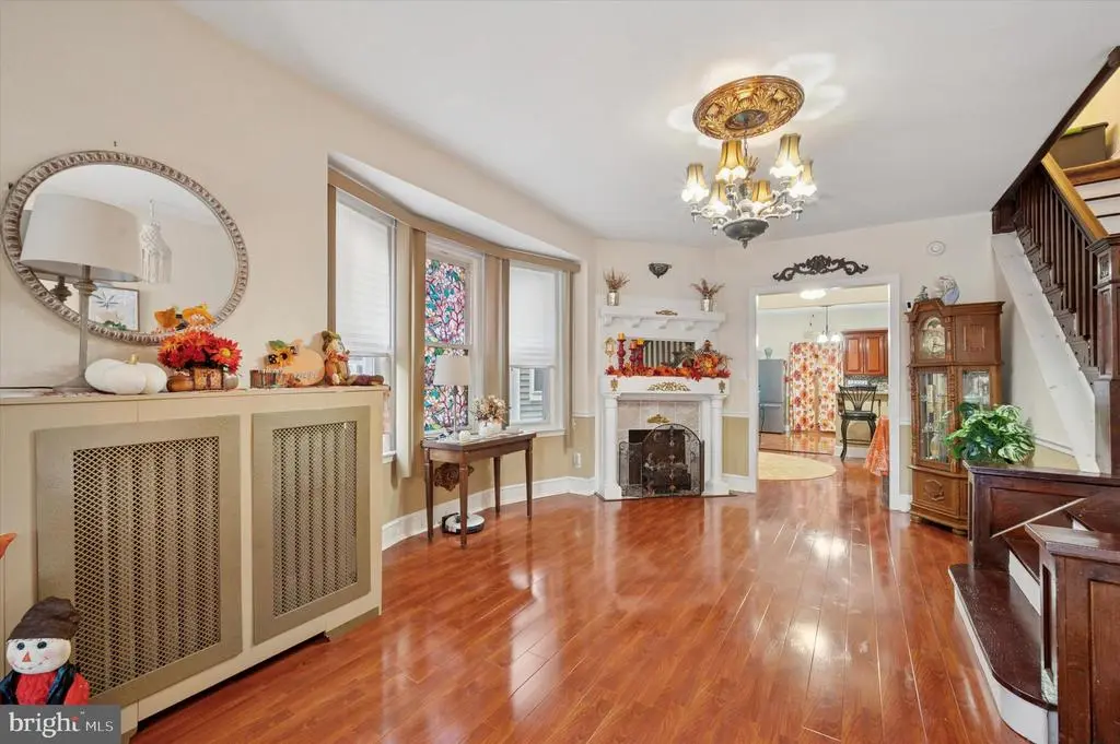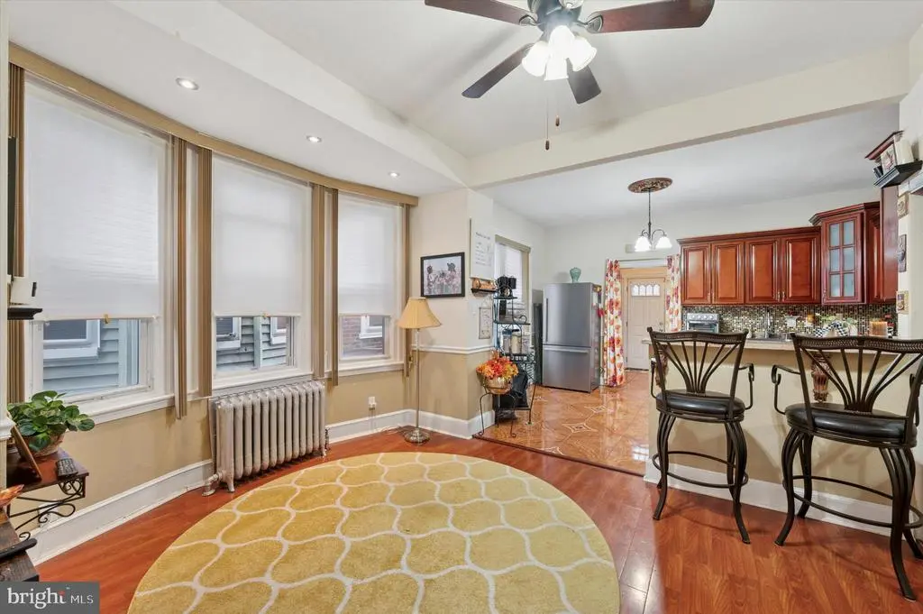 Nestled in a quiet block yet steps away from transit, this 4-bedroom, 2.5-bath twin home offering 1,792 sq ft blends classic bones with renovation-ready vision. You’ll see the promise from the moment you set foot on the generous front porch — a place to sip morning coffee, watch leaves drift, or greet neighbors. Inside, the main level offers good flow: a living room with abundant light, a dining area for dinners or gatherings, and a crisp kitchen space primed for upgrade or expansion. The rear area has laundry hookups plus a thoughtfully placed half bath. Upstairs, four well-sized bedrooms with fresh paint and ceiling fans await your personal touch, supported by a modern hall bath. The partially finished basement includes a full bath — a canvas for a lounge, workshop, media room, spare guest room or flex space.