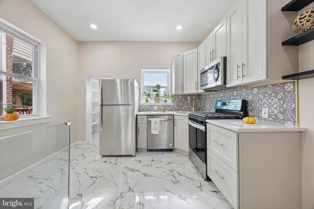 Welcome to 5928 Ellsworth Street, a beautifully renovated 4-bedroom, 3-bath rowhome with Central Air tucked into one of Cobbs Creek’s most desirable blocks! This 1920 Colonial-style interior row/townhouse blends timeless Philadelphia character with today’s modern upgrades, offering exceptional value, comfort, and convenience, and top of the line finishes. Step inside from the enclosed stylish foyer to an open-concept main level featuring tall ceilings, a gorgeous fireplace, a statement staircase, restored original hardwood floors with walnut inlay, recessed lighting, all-new windows (2025) that fill the home with natural light. A designer kitchen is complete with sleek quartz-style countertops, new stainless-steel appliances including gas cooking, and modern cabinetry. The spacious layout flows seamlessly to a low maintenance, composite rear deck with iron rails, perfect for morning coffee or hosting summer BBQs. Upstairs, you’ll find three inviting bedrooms, including a primary suite with a private bath that has a rain shower and brass finishes, plus a full hallway bath — both stylishly remodeled in 2025 and with tub/shower combos. The hallway features a stunning brick accent wall that runs the entire length, adding warmth and character to the space. Downstairs, the finished lower level offers a flex suite ideal for guests, in-laws, or a home office, with its own full bathroom with walk-in shower and private entrance option. Laundry hook up is available here. New HVAC with Central Air for cooling and heating, fully remodeled kitchen and bathrooms, all new windows and storm doors, new modern lighting fixtures, restored original hardwood & fresh paint throughout mean easy maintenance for years to come. The fenced-in backyard offers privacy and peace of mind. Located steps from Cobbs Creek Park, University City, and multiple SEPTA transit lines, this home makes commuting to Center City or the suburbs a breeze. Enjoy proximity to Clark Park, restaurants, and cafes—while owning a move-in-ready home in a neighborhood full of growth and charm. Perfect for home buyers looking for a turnkey property in one of West Philadelphia’s most walkable and appreciating areas. Schedule your private showing today!