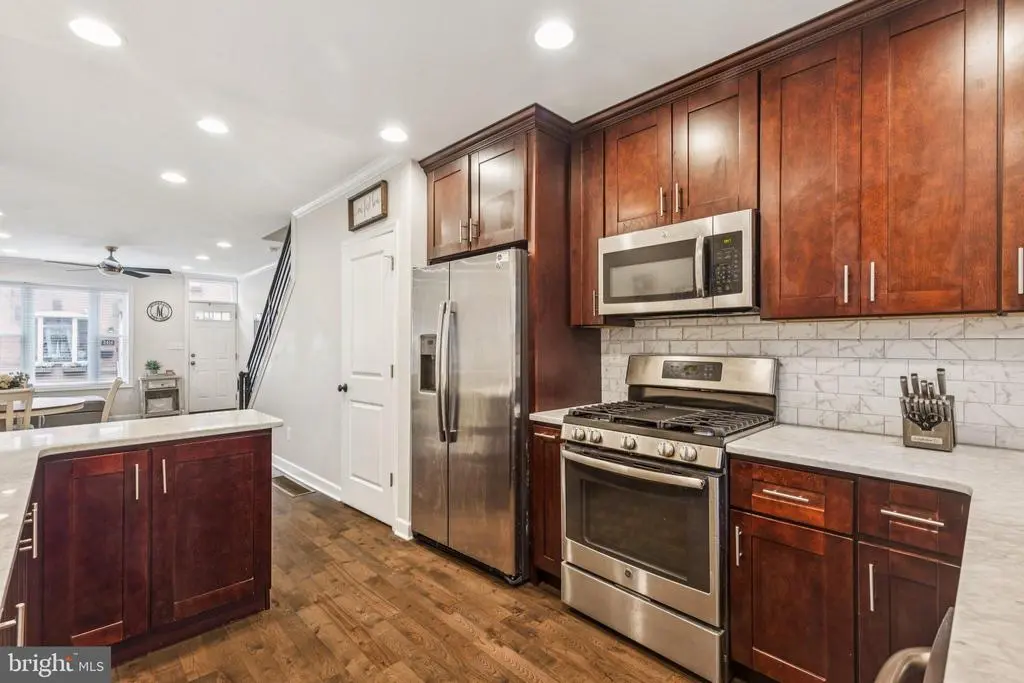Welcome to 2415 South Opal, a beautifully renovated home on a picturesque tree lined street. Walking down the block you’ll notice classic South Philly pride in ownership. Approach the handsome brick facade and step inside to discover an open layout with hardwood floors, upgraded finishes, and thoughtful use of space. The living area is sundrenched with big bright front windows, there is great space here for a sectional couch and TV. This area flows into the dining room and kitchen. The kitchen is a true gem. It's a space where guests or kids can sit at the breakfast bar while you’re cooking and entertaining. There is ample cabinetry, stainless steel appliances, and white stone countertops. Also, on this floor is a coveted first floor powder room. Downstairs is a fully finished basement with plenty of ceiling height. Unlike many other basements, this is truly extra living space. This area is perfect for a home gym, bar, or playroom. Upstairs you’ll find three nice sized bedrooms. The primary features plenty of space for a queen bed and large closets. There is a full hall bathroom on this floor as well. This home is located in the heart of Girard Estates. Neighborhood favorites like Taproom on 19th, Cacia’s, and the Stephen Girard Park are only seconds away. Make your appointment today!