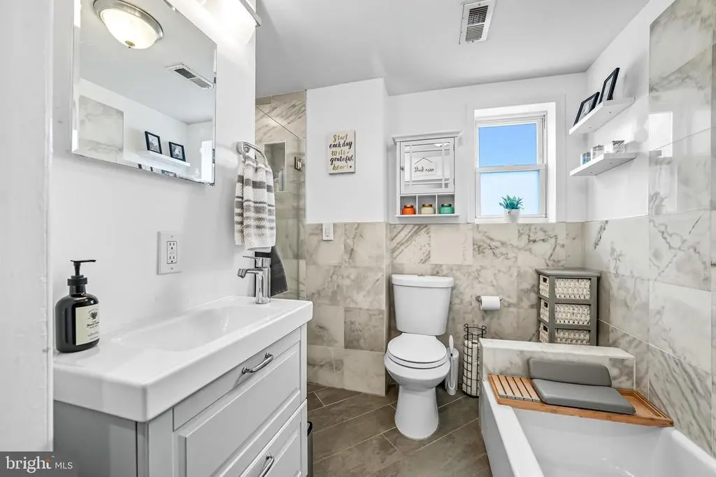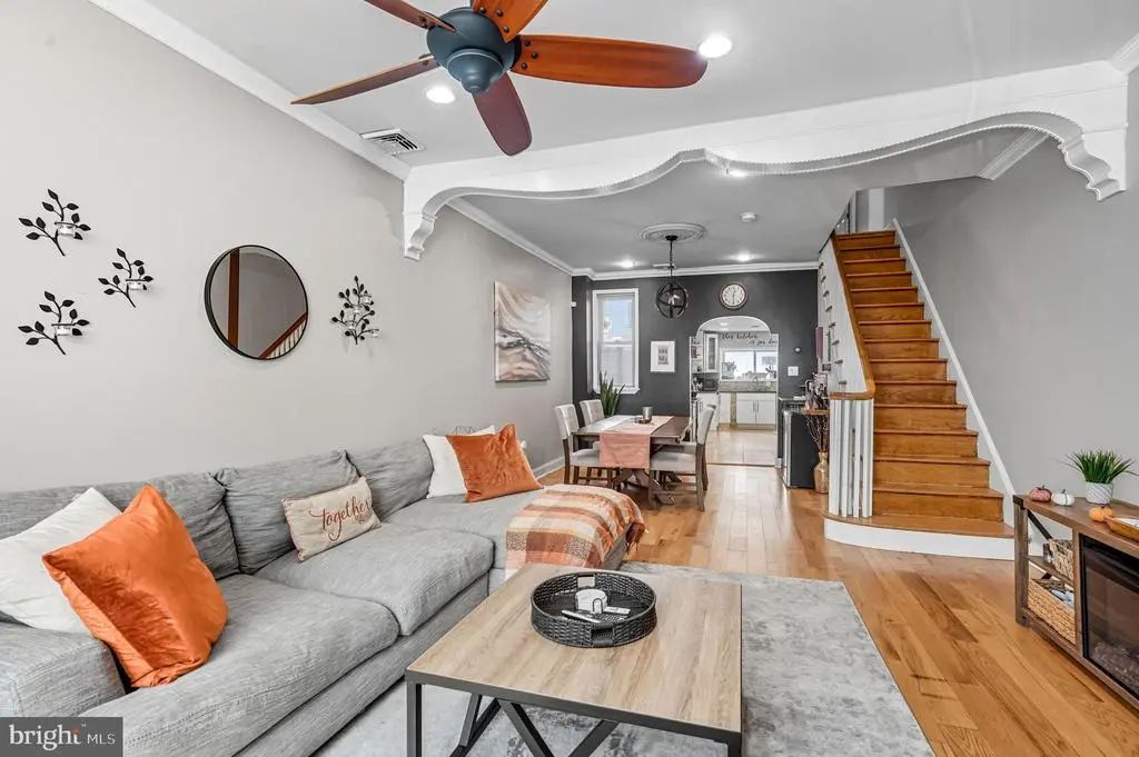 Welcome to 221 Moore Street, a beautifully renovated townhouse in the heart of Pennsport. This 3-bedroom, 2-bath home offers approximately 1,350 sq ft of stylish living space for your enjoyment. Step through the charming vestibule with original tile into a living/dining room bathed in natural light. High ceilings, a bay window, recessed lighting, and tasteful architectural touches create an inviting space for gathering and entertaining. The eat-in kitchen is a showpiece: gleaming granite countertops, stainless-steel appliances, glass-front cabinetry, tile backsplash, and dual oversized windows that bring the outdoors in. A convenient bar/desk area adds flexibility. Upstairs, three generous bedrooms boast bright exposure and ample closet space. The full hallway bath features elegant tile work, a pedestal sink, and a separate shower and tub. Downstairs, the finished basement expands your options β use it for a family room, media center, or guest suite. It also includes a full bath, laundry area, storage, and mechanical space. Out back, a large yard with stone pavers, garden plantings, and privacy fencing sets the scene for al fresco dining, relaxing, or entertaining under the sky. Built in 1988, this home combines modern upgrades with classic charm; including a newly flashed roof in 2024 and new washer/dryer in 2022. Its location in Pennsport gives you a true neighborhood feel while keeping you close to city amenities, dining, and transit options. 221 Moore Street is more than a house β itβs a place to call home.
