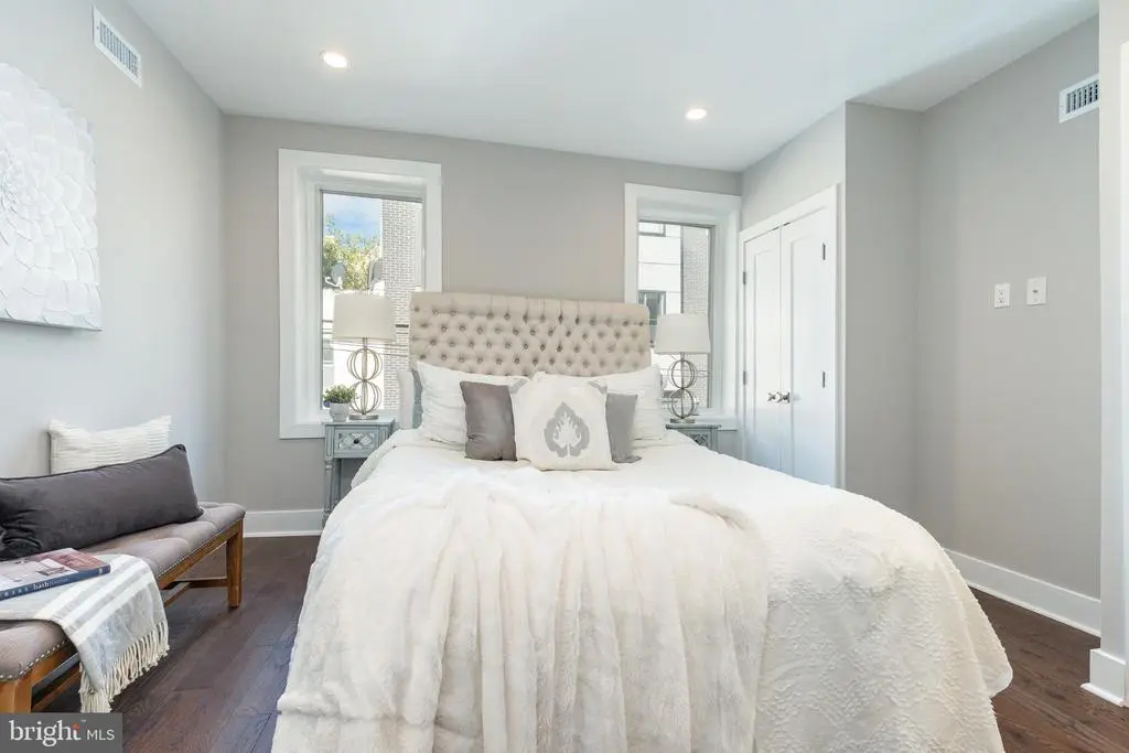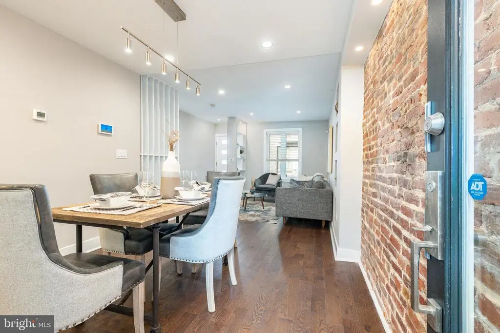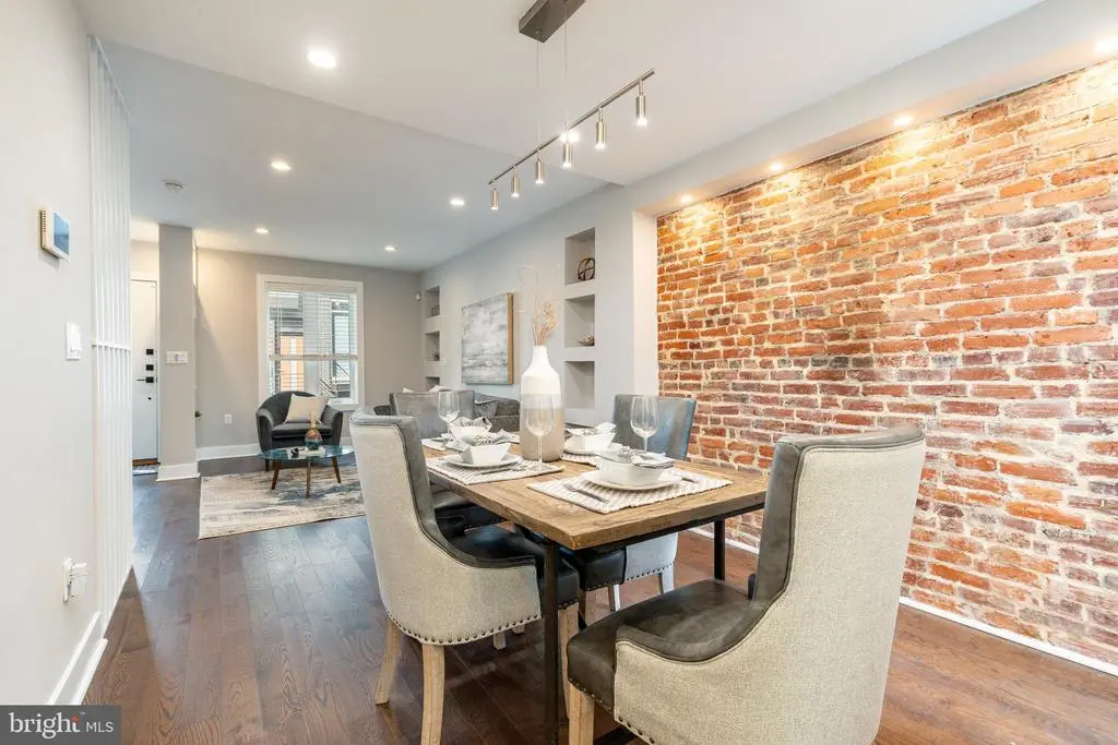 Discover a home that’s anything but ordinary. This beautiful two bedroom two bathroom was designed by Italian architect Stefania Zoboletti and blends thoughtful design with striking architectural details. From the moment you step inside, you're welcomed by an exposed brick feature wall and natural light streaming in through the glass rear door. Near the entrance, a custom designed bookshelf adds both function and flair, offering a glimpse through to the built-in shelving that lines the far end of the living room, perfect for displaying art, books, or collectibles. The open concept layout connects the bright living and dining areas to a sleek, modern kitchen outfitted with stainless steel appliances, white quartzite countertops, and clean lined cabinetry. A large picture window floods the space with light, making the dining table the true heart of the home. Outside a fenced in courtyard, ideal for enjoying your morning coffee, tending a garden, or hosting a summer cookout. Upstairs, the primary bedroom featuring generous closet space and a stylish en suite bathroom with a modern shower. The second bedroom is equally spacious, filled with natural light and overlooking the private courtyard. This floor features a laundry closet with washer and dryer. The fully finished basement offers endless possibilities of a home office, media room, fitness studio, playroom, or creative space. Walking distance to all of the center city, cafes and restaurants you do not want to miss the opportunity to tour this home.