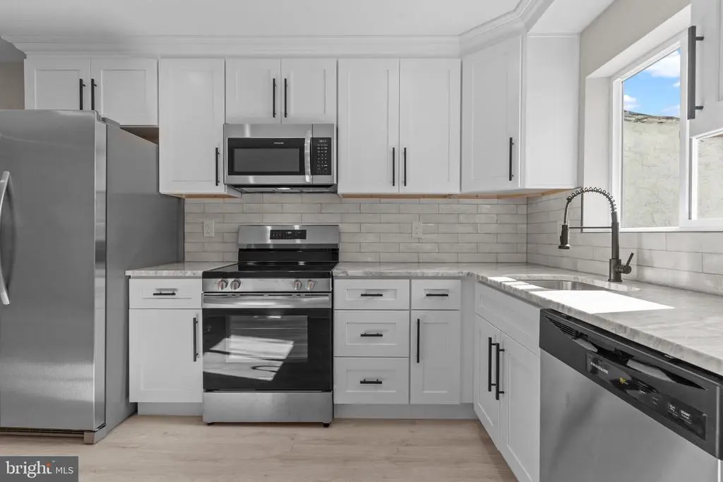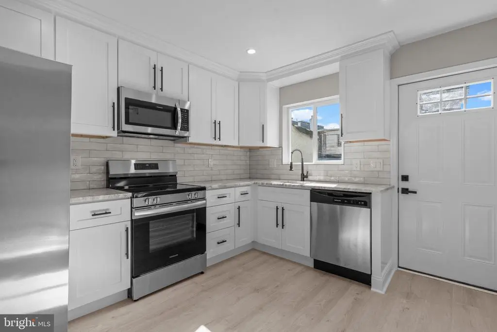 Welcome to 3233 Gaul Street, a completely renovated two-bedroom, two-full bathroom home in the heart of Port Richmond. From the moment you step inside, you’ll notice the meticulous updates and modern design throughout. An open foyer and sitting area welcome you into a bright living room that flows seamlessly into the eat-in kitchen. The kitchen features white shaker cabinets, subway tile backsplash, black hardware for a sleek modern touch, and stainless steel appliances. Upstairs, you’ll find two comfortable bedrooms and a beautifully updated full bathroom, complemented by a stylish new railing that ties the space together. The fully finished basement sets this home apart, offering additional living or entertainment space, a second full bathroom, and a separate laundry room. Outside, enjoy a private backyard that’s perfect for relaxing or entertaining. With brand new finishes from top to bottom, no detail has been overlooked—this move-in ready home is the perfect blend of modern comfort and Philadelphia charm. Don’t miss your opportunity to make it yours. All you have to do is unpack!
