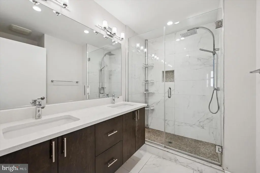 Experience the best of luxury urban living in this stunning 3-bedroom, 3.5-bathroom townhome with a two-car garage located in the highly sought-after gated community of Graduate Square. Enjoy just under 4 years remaining on the tax abatement, offering exceptional long-term value. This home is one of a handful of end-unit homes. A twin. Only attached on one side. This gives the owner an added exposure to all the western light one could wish for. The home’s spacious two-car garage design accommodates a 2-car vehicle lift, allowing for easy parking of two full-sized vehicles — a true rarity in the city. The fully finished basement provides flexible space ideal for a home office, gym, media room, or even a fourth bedroom. The first floor welcomes you with a gracious foyer, coat closet, and a versatile office area that opens through sliding glass doors to a peaceful private patio. This level also features a large bedroom overlooking the patio and a full bathroom — perfect for guests or multi-generational living. Upstairs, the main living area impresses with soaring 12-foot ceilings and an abundance of southern light pouring through floor-to-ceiling windows fitted with custom blinds. The open-concept design seamlessly connects the living, dining, and kitchen areas, creating an ideal environment for both entertaining and everyday living. The chef’s kitchen features sleek quartz countertops, a spacious island for casual dining, and high-end GE Profile stainless steel appliances. Step out onto the balcony from the living area to enjoy your morning coffee or an evening breeze. The third floor features a bright secondary bedroom with a walk-in closet and access to a full bathroom located in the hallway. A laundry closet equipped with a full-sized washer and dryer, along with a utility sink, adds convenience. The primary suite offers stunning views of the Center City skyline, a generous walk-in closet, and a spa-like bath complete with dual vanities and a luxurious rain shower. Continue to the expansive roof deck, a private urban retreat with custom planters, lounge seating, and breathtaking panoramic city views—perfect for relaxing or entertaining. Graduate Square residents enjoy a low HOA fee that covers trash removal, landscaping, and snow service, as well as access to a beautifully landscaped private park. The pet-friendly community boasts an impressive Walk Score of 85, indicating that most errands can be easily accomplished on foot. Just steps away are local favorites like Grace Tavern, Illata Restaurant, Igloo Frozen Yogurt, Dock Street Brewery, and Sidecar Bar & Grill, as well as grocery options including The Fresh Grocer and Heirloom Market. Fitness and wellness are conveniently accessible with City Fitness, Tuck Barre & Yoga, Stretch Zone, and more nearby. Conveniently located near CHOP, UPenn, Drexel, and the Schuylkill River Trail, with easy access to I-76, South Street Bridge, and Philadelphia International Airport. Graduate Square offers luxury, location, and lifestyle — all in one exceptional home.