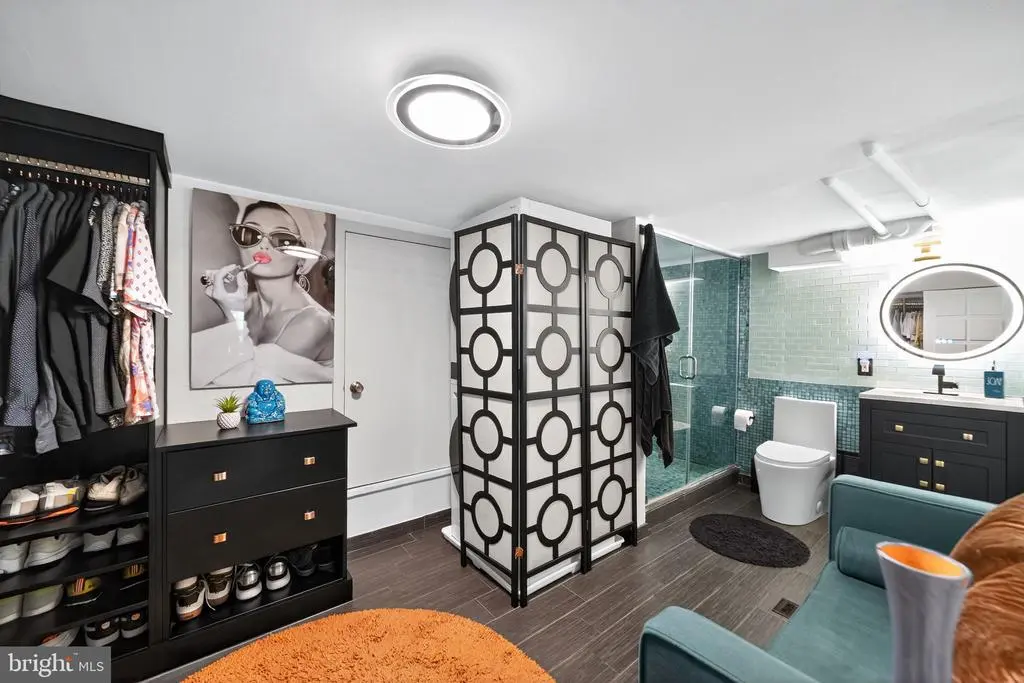 Bathroom - Walk-In Shower, Built-Ins, Primary Bath(s), Walk-in Closet(s), Window Treatments, Wood Floors