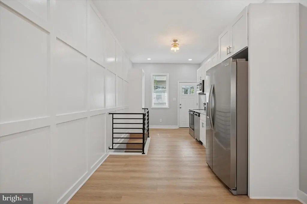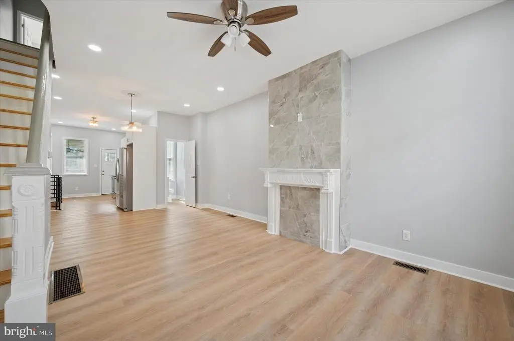 Welcome to 2816 W Albert St – a beautifully renovated 3-bedroom, 1.5-bath home where modern elegance meets thoughtful design. This property has been meticulously updated with beautiful finishes, creating a move-in-ready sanctuary you’ll be proud to call home. The open-concept main level is bright and airy, featuring warm natural wood floors, recessed lighting, and a stunning statement accent wall with mantel and a mounted TV setup. The spacious living and dining areas flow seamlessly into a designer kitchen equipped with stainless steel appliances, quartz countertops, sleek cabinetry, and modern light fixtures — perfect for entertaining or casual weeknight dinners. Custom built-ins with a bottle rack offers perfect storage for your in-home entertainment for guests. Convenient first floor powder room for guests. Upstairs, you’ll find three spacious bedrooms with ample closet space, recessed lighting and stylish ceiling fans. The beautifully upgraded bathroom features elegant tile work, a contemporary vanity, and matte black fixtures that tie the design together. The lower level offers a clean, carpeted finished space that can easily serve as a home office, gym, or recreation room. Enjoy the private rear patio — perfect for relaxing, grilling, or hosting small gatherings. This home offers the best of city living — close to shopping, transportation, parks, and just minutes from Center City. Whether you’re a first-time buyer or investor, this home checks every box for comfort, convenience, and contemporary style. Schedule your showing today!