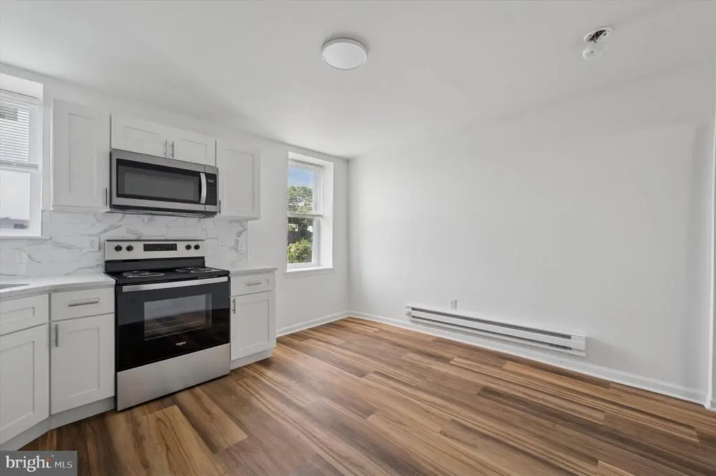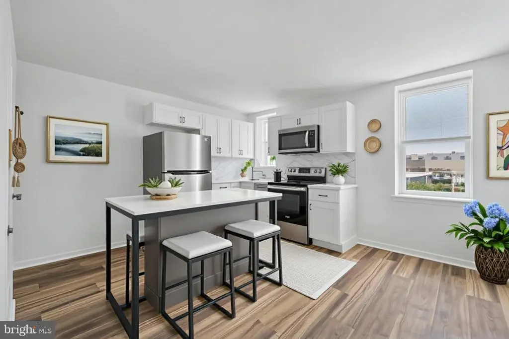 Welcome to this beautifully updated 2 bedroom, 1 bathroom home that perfectly combines comfort, style, and functionality. Step inside to an inviting open living area filled with natural light, fresh neutral paint, and updated flooring throughout. The modern kitchen features sleek countertops, stainless steel appliances, and shaker cabinetry, making it both beautiful and practical. The eat kitchen area offers a cozy spot for meals and family time. Both bedrooms are bright and spacious, offering flexibility for family, or a home office. The updated bathroom features contemporary tile work, modern fixtures, and a clean, timeless design. Downstairs, you’ll find a basement with a washer and dryer, providing convenience and additional storage space. Step outside to enjoy the spacious backyard, perfect for entertaining, gardening, or relaxing on sunny afternoons.