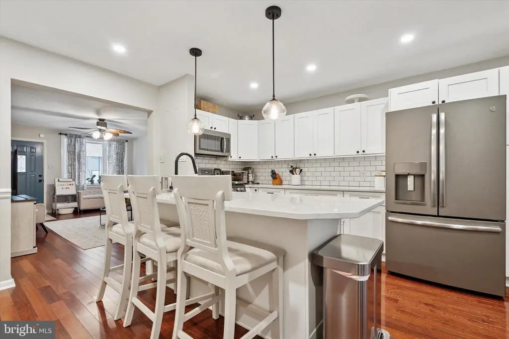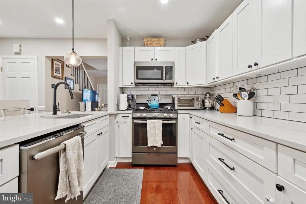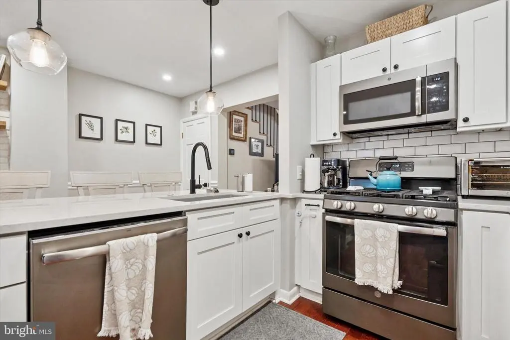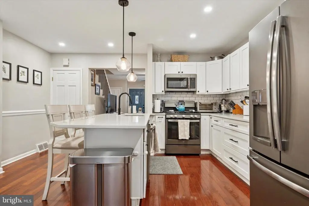 **Open House Cancelled** Welcome to 416 Hermit Street, a charming and spacious row home nestled in the heart of Roxborough, where the neighborhoods of Manayunk and Wissahickon meet. This beautiful residence offers three bedrooms, two full bathrooms, and a blend of thoughtful updates and timeless character. The fully renovated kitchen (2019) is a standout feature, designed for both cooking and entertaining, with quartz countertops, matte appliances, a quiet dishwasher, XL sink with a glass washer, and a touch-sensor faucet. Additional upgrades include refinished hardwood floors (2022), smart ceiling fans (2022), updated closet systems, and fresh basement carpeting (2024). The home also features a new roof (2020) with silver coating (2025), new storm door (2021), and custom details like a hand-painted nursery mural and French sliding doors on the master closet. With two covered outdoor spaces, driveway parking, and a mature fig tree in the backyard, outdoor living is just as inviting. Located on a wide, two-way street within walking distance to bus routes, regional rail, Main Street, playgrounds, dog parks, coffee shops, and Wissahickon Park, this home combines comfort, convenience, and community in one exceptional package.