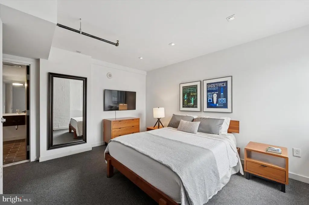 Discover the ideal blend of design, space, and modern comfort in this 1,747-square-foot CORNER bi-level residence at the Lofts at Bella Vista. Unit 306 offers refined urban living with architectural character in one of Philadelphia’s most vibrant neighborhoods. The main level features polished concrete floors, exposed steel beams, exposed brick walls, and wood-accented ceilings that showcase the home’s distinctive industrial style. A dramatic floating staircase serves as the centerpiece of the open-concept layout. The space offers abundant flexibility, with room for a large dining area, a generous living room with northern and eastern light exposures, and a versatile area perfect for an office, yoga space, or reading nook—all with stunning Center City skyline views. A convenient laundry closet and additional storage are also located on this level. The gourmet kitchen is equipped with imported Schiffini cabinetry, a fully integrated refrigerator, stainless steel appliances, and matching stainless steel countertops and island, offering both sleek design and everyday functionality. Upstairs, the primary suite overlooks the living area through expansive windows with custom shades and has a large closet, plus a spa-inspired bath featuring a floating vanity, oversized soaking tub, and large glass-enclosed shower. The spacious second bedroom is fully enclosed, includes a north-facing window, and has its own private bath with complementary design. Recent upgrades include a new geothermal HVAC system and new hot water heater (installed in 2025), ensuring energy efficiency and comfort throughout the year. This pet-friendly condominium includes a deeded indoor garage space for two cars and a private storage unit. Building amenities include 24-hour concierge service, fitness center, resident lounge, security doorman, and bike room. Ideally located in the heart of Bella Vista, this home puts the best of Center City within easy reach. Enjoy neighborhood favorites like the Italian Market, Sabrina’s, Angelo’s Pizzeria, and Rim’s Café, along with nearby green spaces such as Cianfrani Park. Daily conveniences, including Sprouts, Whole Foods, and Giant, are all just steps away, offering the perfect balance of vibrant city living and neighborhood charm.