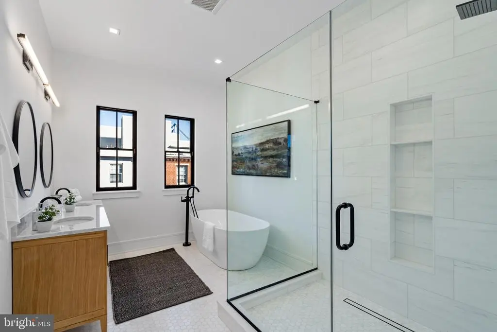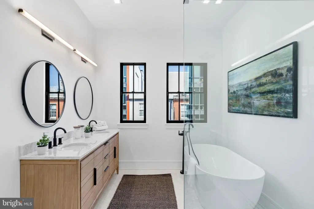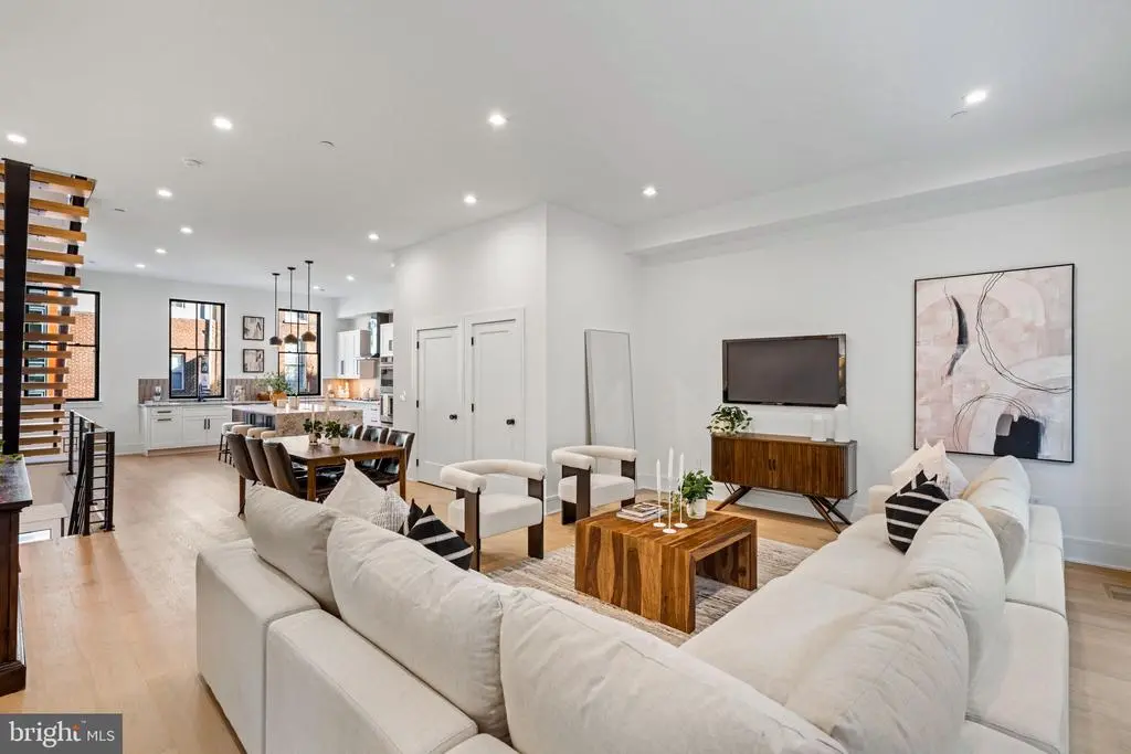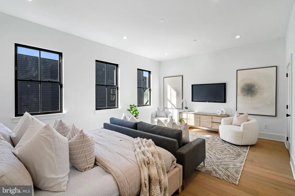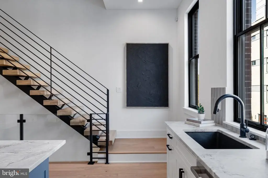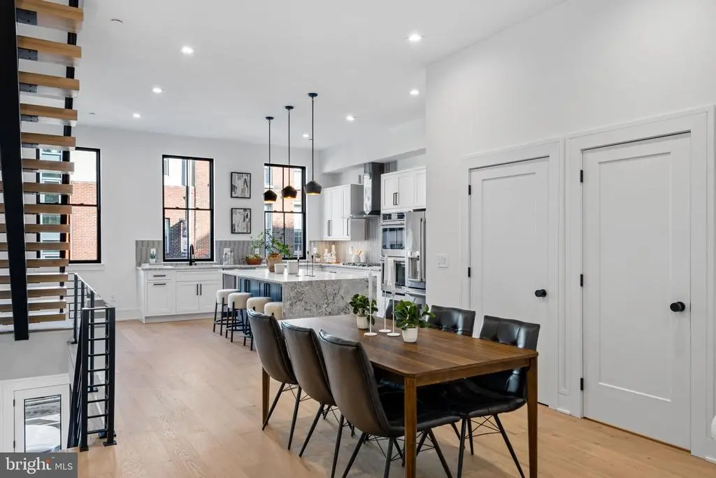 This development of 4-story luxury townhomes in Old City, delivering in Fall 2025, has 2 car attached garage parking, a gated drive aisle, 10 foot + ceiling heights, 3 private outdoor entertaining areas, and spectacular city skyline and bridge views from the roof deck. Located in the historic heart of Philadelphia, these homes feature beautiful brick facades paying homage to the surrounding colonial architecture! Enter the home onto the landing of the floating metal staircase with large Pella windows with striking black window frames that allow for light to pour in through the front of the home. The main floor kitchen features a Cafe' stainless steel appliance package with Bosh Dishwasher, quartzite countertops, custom tile backsplash, and high-end cabinetry. Continue on the main floor through the dining room and past the powder room into the living area complete with three sets of French doors that open up to the terrace. Go up the stairs to the second floor where you will find 2 large bedrooms, each with a full en-suite bathroom, and a laundry room complete with included front load washer and dryer units. The third-floor master suite is oversized and flooded with natural light and includes large custom outfitted walk-in closets, a five-piece bathroom with heated tile floors, a free-standing oval tub, huge walk-in shower with glass doors, body sprays, and handheld shower fixtures. Upstairs is the pilot house with a double roof deck, each side with 360 degree views of Old City, the Benjamin Franklin bridge, and Philly skyline. The basement of the home has a full bathroom , 10’ ceilings, and could serve as a perfect office space, kids play room, or guest bedroom. These homes have multi-zone heating and A/C systems as well as smart technology such as a Ring doorbell camera, Nest thermostats, and Schlage keyless entry smartlock. The home is complete with fully finished basement with heated floors throughout and can be an addition office space, kids playroom, movie theater or extra bedroom. This home is uniquely located next to Northern Liberties and just steps away from the river waterfront. You can walk down to the pier to enjoy the calm waters of the river and take a walk on the Benjamin Franklin Bridge and see great city skyline views. Easy access to I-95, shopping, restaurants, coffee shops and within the McCall Elementary School catchment. Each home comes with a Ten Year Real Estate Tax Abatement Under Councilmanic Ordinance 1456-A, Section 19-1303.4 of the Philadelphia Code, and a 1 yr builders warranty. **Taxes and Square Footage are to be independently verified by the buyer and their agent. **