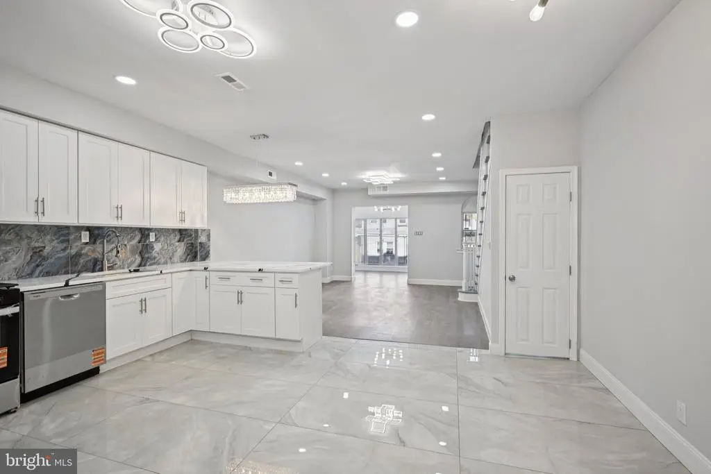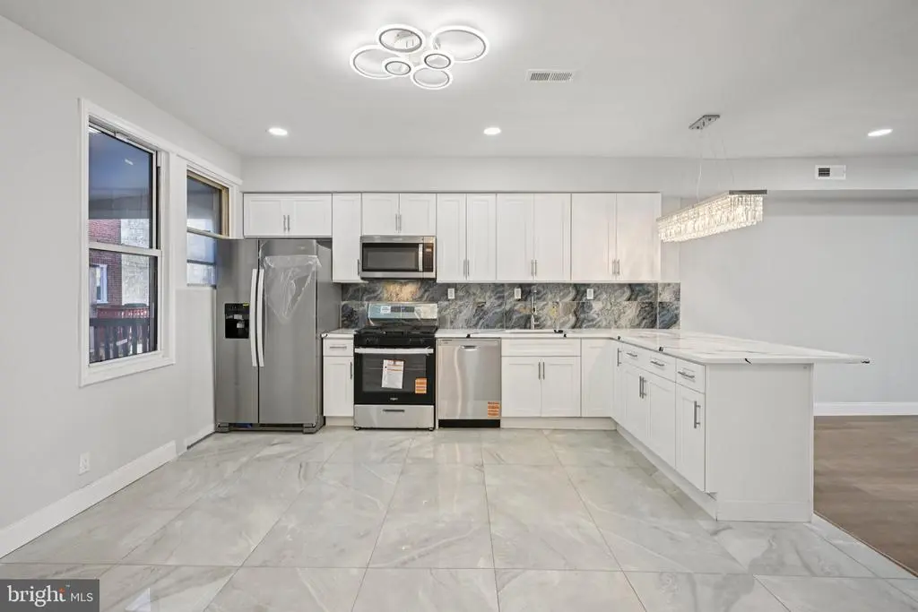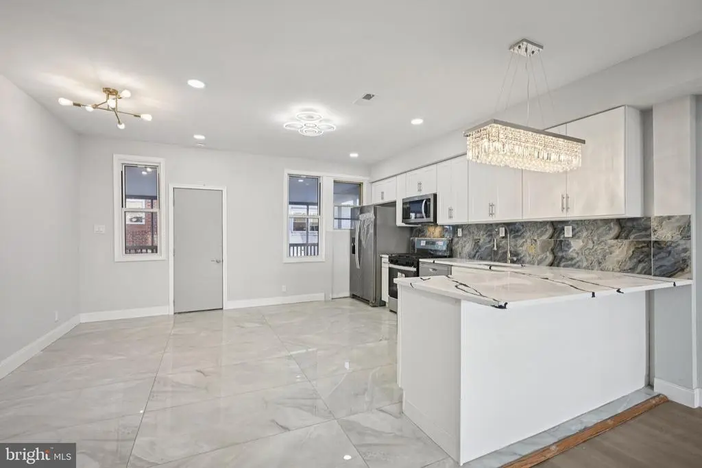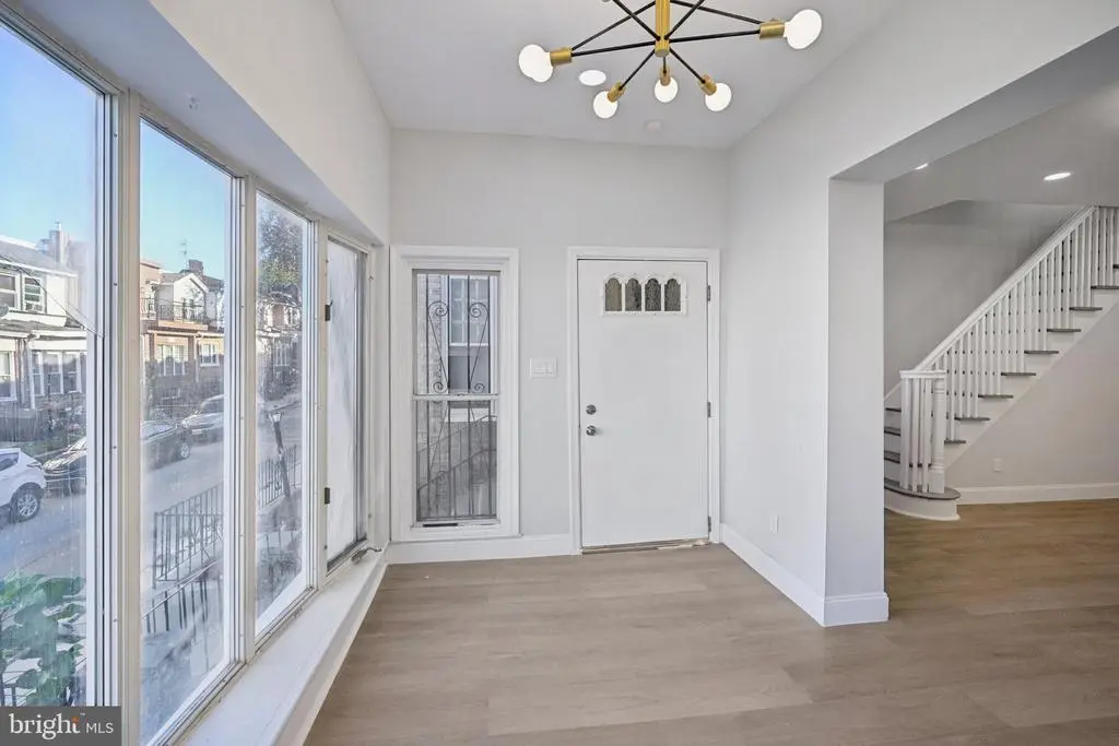 Welcome to this beautifully renovated rowhome in the heart of Cobbs Creek, where classic architecture meets contemporary design. Enter through the bright sunroom foyer into an open-concept main level filled with natural light and modern finishes. The spacious living room flows seamlessly into a stunning eat-in kitchen—perfect for entertaining and everyday living. The kitchen features stainless steel appliances, white shaker cabinetry, Quartz countertops, a breakfast bar with seating, and plenty of room for a dining table. From the kitchen, access the second-story rear deck—ideal for morning coffee or evening relaxation. Upstairs, you'll find three comfortable bedrooms, including a light-filled primary bedroom with large front-facing windows. The full hall bathroom boasts elegant tilework on the walls, floor, and tub/shower combo that adds a touch of luxury. The fully finished basement offers incredible versatility—perfect for a guest suite, home office, gym, or additional living space. It includes a laundry area with hookups and a utility sink, plus a beautifully tiled full bathroom with a walk-in shower. A rear door provides direct access to the back of the home. Move-in ready and thoughtfully upgraded throughout, this home offers a rare opportunity to own a turnkey property in one of West Philadelphia’s most vibrant and growing neighborhoods. Mortgage savings may be available for buyers of this listing.