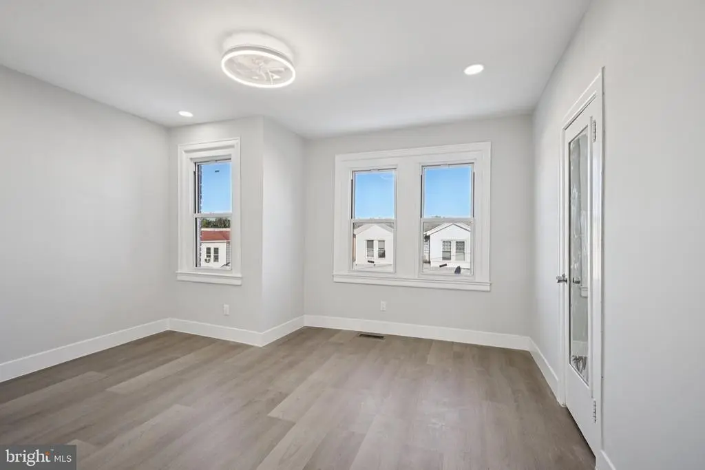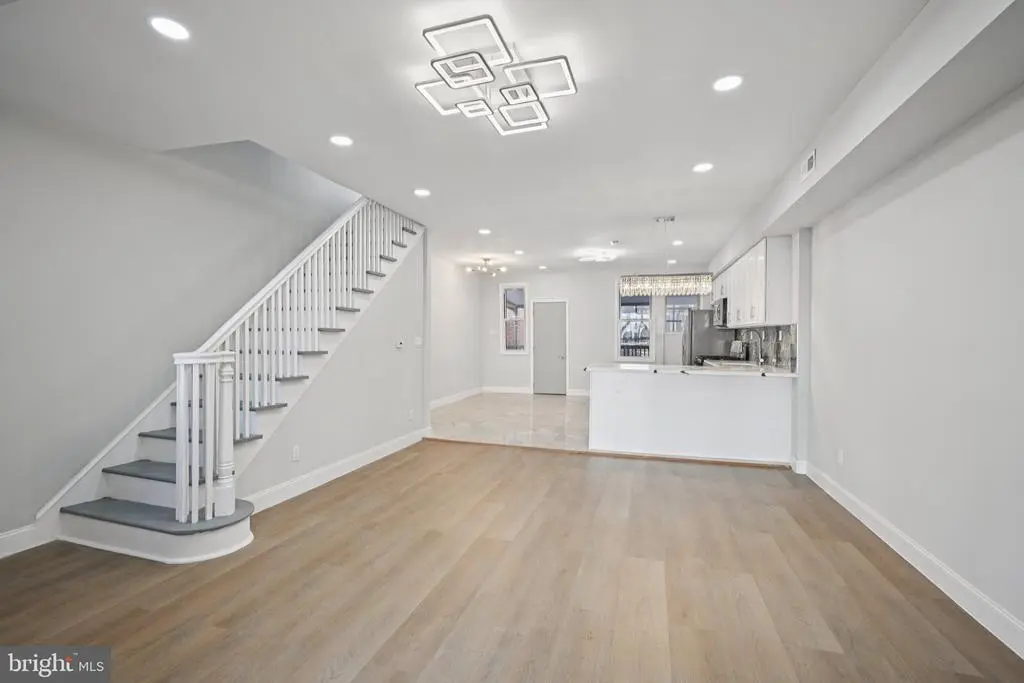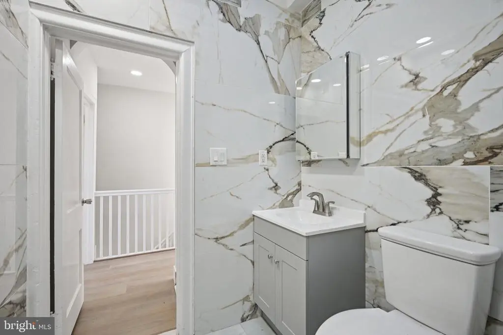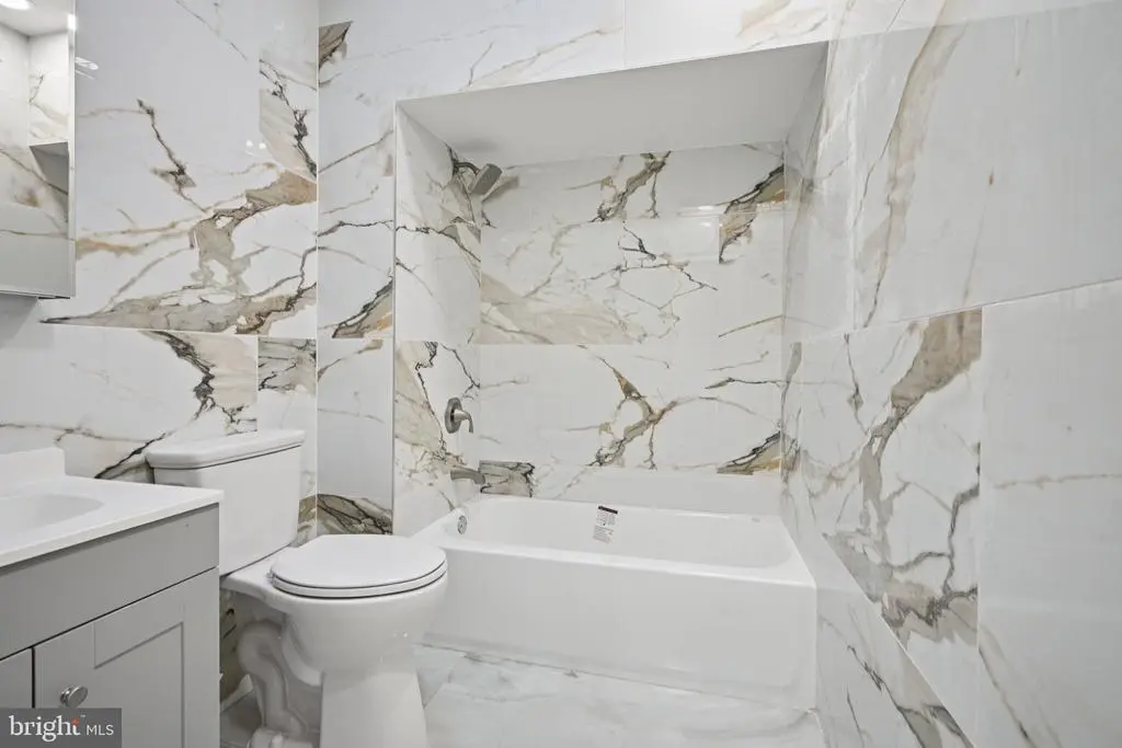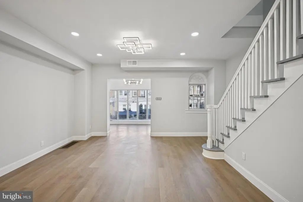 Welcome to this beautifully renovated rowhome in the heart of Cobbs Creek, where classic architecture meets contemporary design. Enter through the bright sunroom foyer into an open-concept main level filled with natural light and modern finishes. The spacious living room flows seamlessly into a stunning eat-in kitchen—perfect for entertaining and everyday living. The kitchen features stainless steel appliances, white shaker cabinetry, Quartz countertops, a breakfast bar with seating, and plenty of room for a dining table. From the kitchen, access the second-story rear deck—ideal for morning coffee or evening relaxation. Upstairs, you'll find three comfortable bedrooms, including a light-filled primary bedroom with large front-facing windows. The full hall bathroom boasts elegant tilework on the walls, floor, and tub/shower combo that adds a touch of luxury. The fully finished basement offers incredible versatility—perfect for a guest suite, home office, gym, or additional living space. It includes a laundry area with hookups and a utility sink, plus a beautifully tiled full bathroom with a walk-in shower. A rear door provides direct access to the back of the home. Move-in ready and thoughtfully upgraded throughout, this home offers a rare opportunity to own a turnkey property in one of West Philadelphia’s most vibrant and growing neighborhoods. Mortgage savings may be available for buyers of this listing.