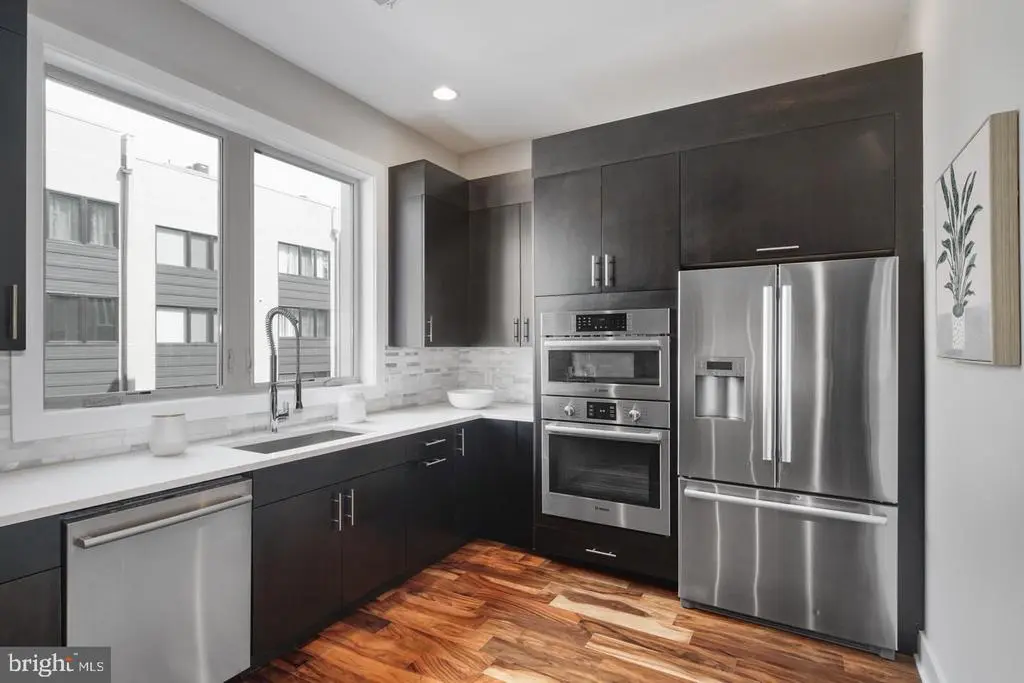 This beautiful townhome is situated in the heart of Philadelphia's Old City - the owner of this property will be living in luxury all while being a stone's throw from the some of the most desirable locations in the entire city. We enter this property through a private community driveway that helps give this unit an oasis-like feel. There is a 1-car garage on the lower level. Continuing into this unit, we are welcomed by a large first floor sitting room with beautiful hardwood floors. It is soaked in light from two large sliding glass doors that open out back to the spacious and fenced in back patio. Upstairs to the second floor, we turn into the stunning kitchen with light glistening throughout. The large windows in this kitchen make it an incredible space to cook for the entire family. The high end finishes are topped off by a beautiful stainless steel appliance package including an oven, microwave, range with hood, dishwasher, side by side fridge, and more. There are hardwood floors throughout this level and flow out from the kitchen into the main living/dining area past a powder room at the top of the steps. Large and accommodating, the living room, is perfect for entertaining or simply relaxing an enjoying your home cooked meals. It features ample space, over-sized double windows, recessed lighting, and much more! There is even a reading alcove for relaxing in your new home. On the third floor are the two guest bedrooms and a large shared full bathroom. The exemplary hardwood floors, large closets, and over-sized windows saturate the whole floor with natural light and make it perfect for family and friends. Moving up in this house, we find the primary suite featuring beautiful hardwood floors, large walk in closet with built-in shelving, over-sized windows, recessed lighting, and a gorgeous master bathroom! The master bath shows off dual sinks, incredible tile work, large mirrored vanity and counter space, a pristine glass shower featuring multiple shower heads including a rain shower nozzle, and commode. Coming up to the roof-deck, it is clear that the best was saved for last. The views from this property of the Ben Franklin Bridge are one of a kind and a centerpiece of this property's charm. You'll be able to enjoy it all in style from this spacious outdoor area. With built in refrigerator and cabinetry, it couldn't get any better for entertaining. This property is just minutes from some incredible parks as well including Independence National Historic Park, Welcome Park, and Penn's Landing. With everything in such close vicinity, you won't need to go far, and if you do, it's just a five minute walk to the Market Frankford Line and other public transportation. All square footage numbers are approximate and should be verified by the buyer. It is the responsibility of the buyer to verify real estate taxes. Square footage total includes above grade space and below grade space and is estimated. **The property is also available for lease purchase - reach out for more details. Tax abatement ends 1/2027. *Photos are of a similar home in the development and may not depict actual finishes.