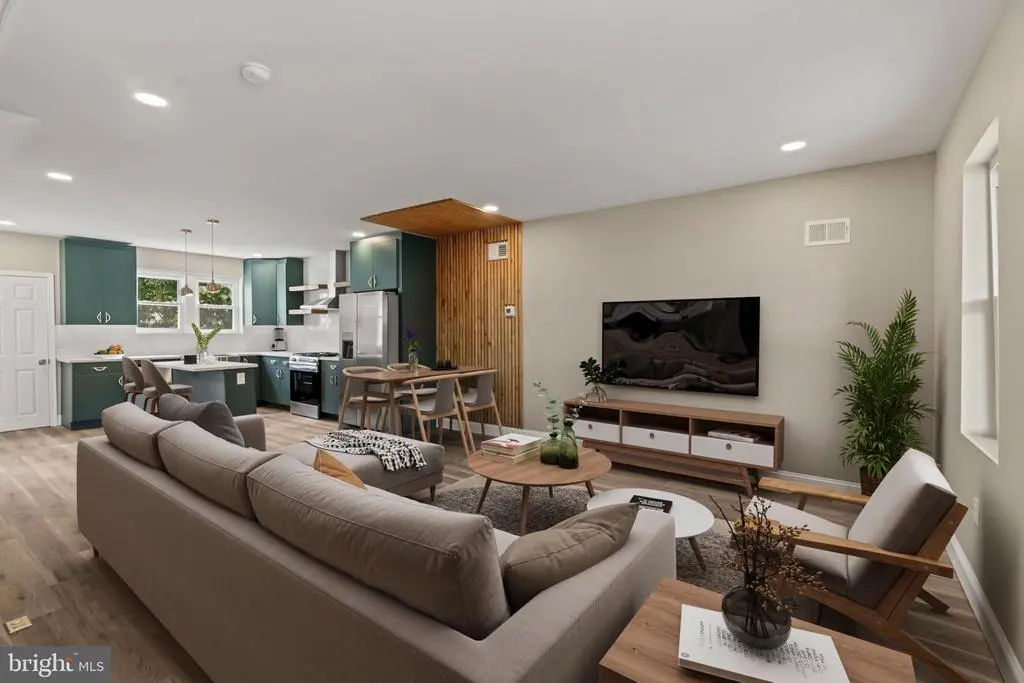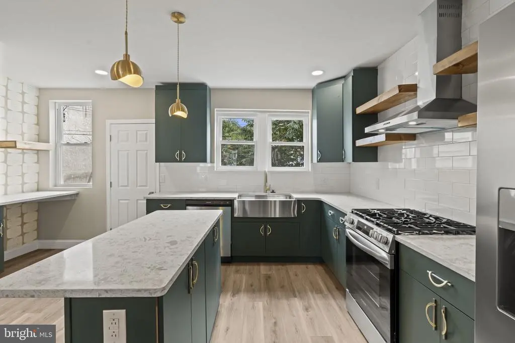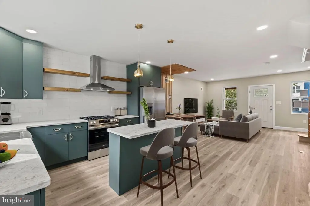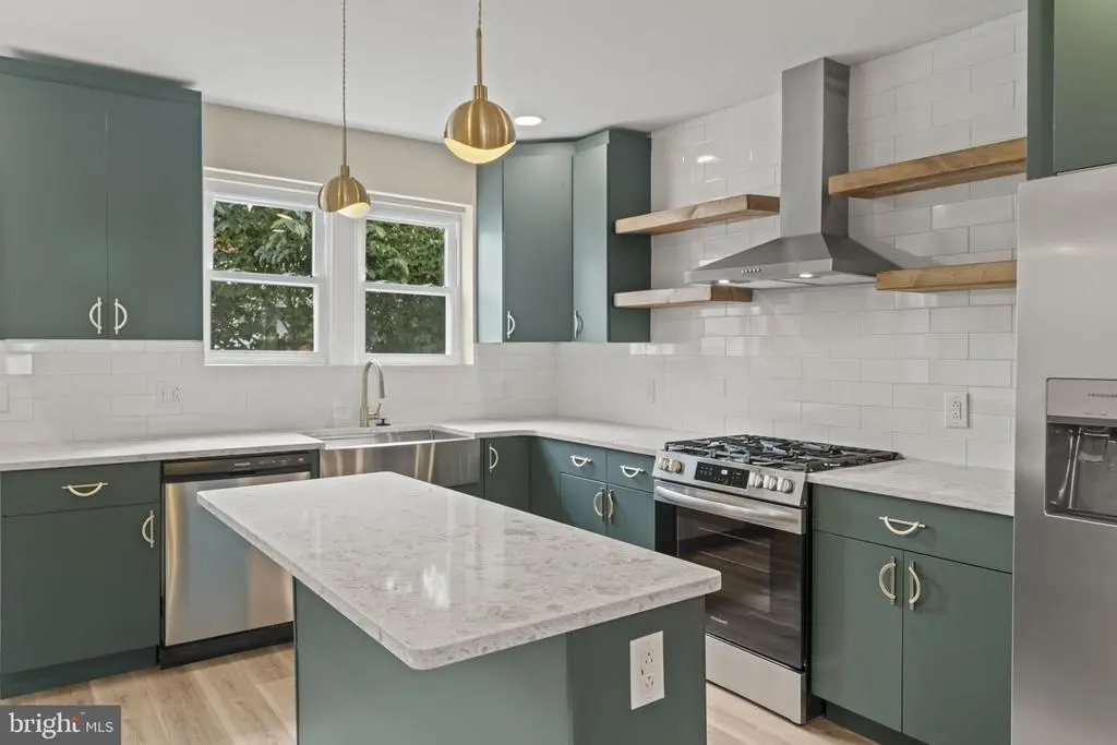 Fully renovated 4BD / 2.5BA home showcasing modern design and top-tier craftsmanship in a rapidly developing neighborhood! Step inside to an open-concept main level with new wide-plank flooring, recessed lighting, and designer finishes throughout. The stunning chef’s kitchen features deep-green custom cabinetry, quartz countertops, brushed brass hardware, stainless-steel appliances, and natural wood floating shelves—perfectly blending warmth and sophistication. Every detail has been upgraded with all-new windows, doors, HVAC, plumbing, and electrical systems for worry-free living. The spacious living and dining areas flow beautifully, ideal for entertaining or relaxing in style. Enjoy outdoor living on the covered front porch with cedar columns and tile flooring that complement the home’s modern interior. The walk-out lower level adds versatility—ideal for a recreation room, home theater, office, or private in-law suite with separate entrance. Upstairs features bright, comfortable bedrooms and elegantly updated bathrooms. A true turn-key opportunity combining quality, comfort, and design in a neighborhood on the rise—schedule your tour today!