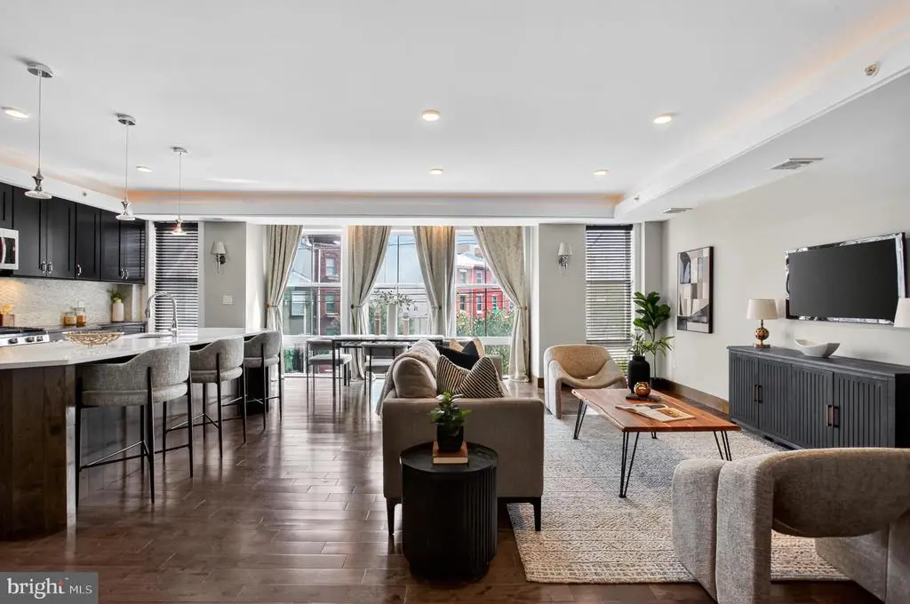 Discover an exquisite urban retreat nestled in the vibrant Fishtown neighborhood, where contemporary elegance meets modern convenience. This stunning 2-bedroom, 2.5-bathroom unit, built in 2016, offers an unparalleled lifestyle defined by sophistication and comfort. Step inside to find an open floor plan that seamlessly integrates living, dining, and kitchen spaces, perfect for both entertaining and everyday living. The gourmet kitchen is a chef's dream, featuring upgraded quartz countertops, a built-in range, and a spacious island that invites culinary creativity. The sleek design is complemented by high-end appliances, including a dishwasher, refrigerator, trash compactor, and in-unit washer and dryer, ensuring that every convenience is at your fingertips. Rich wood floors, recessed lighting and floor to ceiling windows enhance the ambiance, creating a warm and inviting atmosphere throughout the home. Thoughtfully designed window treatments provide both privacy and natural light, while the dedicated dining area sets the stage for memorable gatherings. The two well-appointed bedrooms offer a serene escape, each with easy access to beautifully designed bathrooms, ensuring comfort and luxury at every turn. Safety and security are paramount, with features such as carbon monoxide detectors, smoke detectors, and a main entrance lock, providing peace of mind in your urban sanctuary. Located in the heart of Fishtown, this property is perfectly positioned for those who appreciate a dynamic lifestyle. With convenient access to public transportation, including a bus stop less than a mile away and an airport within 10 miles, commuting is a breeze. Explore the eclectic mix of local shops, trendy restaurants, and vibrant nightlife that Fishtown is renowned for, all just moments from your doorstep. This unit is not just a home; it's a lifestyle choice that embodies luxury, convenience, and community. Experience the best of urban living in a space that reflects your discerning taste and desire for quality. Don't miss the opportunity to make this exceptional property your own-where every detail has been meticulously crafted for an elevated living experience.
