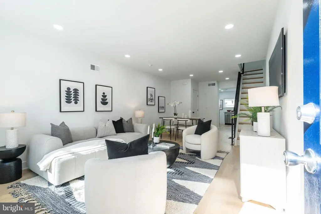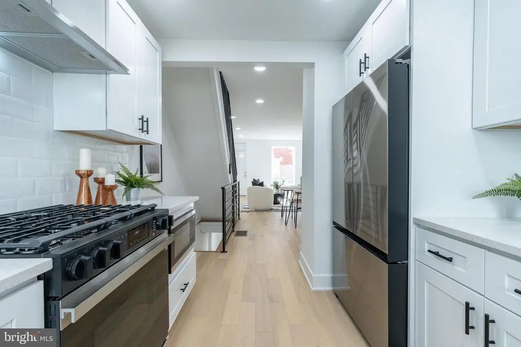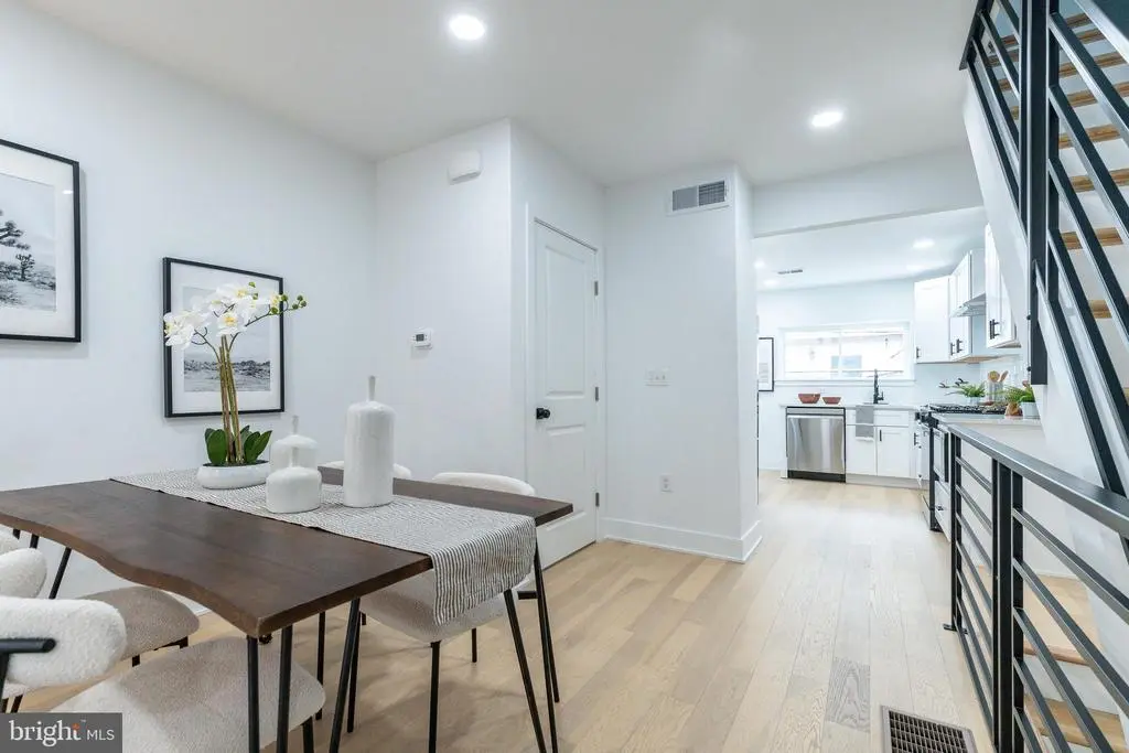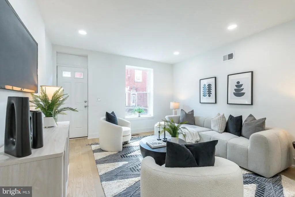 Step inside this beautifully reimagined South Philly rowhome — a classic brick exterior that hides a sleek, fully renovated interior designed for modern living. This home comes with a full 10-YEAR TAX ABATEMENT, offering incredible long-term savings and unbeatable value. Every detail has been thoughtfully redone, blending timeless craftsmanship with contemporary style. The open-concept main level flows effortlessly from the bright living room to the dining area and into a beautifully designed kitchen showcasing white shaker cabinets, quartz countertops, stainless steel appliances, and sleek black hardware for a clean, modern look. Light hardwood floors, recessed lighting, and a convenient first-floor powder room come together to create a warm, cohesive, and functional space perfect for everyday life. Upstairs, you’ll find two spacious bedrooms and two beautifully appointed full baths — including a private en-suite in the primary bedroom with elegant finishes and a spa-inspired atmosphere. The fully finished basement adds even more flexibility — ideal for a home gym, office, play room or cozy media space. Heading out to the backyard, enjoy your private outdoor space with new concrete hardscaping and a sleek privacy fence — perfect for entertaining. Reach out now to schedule a private tour!