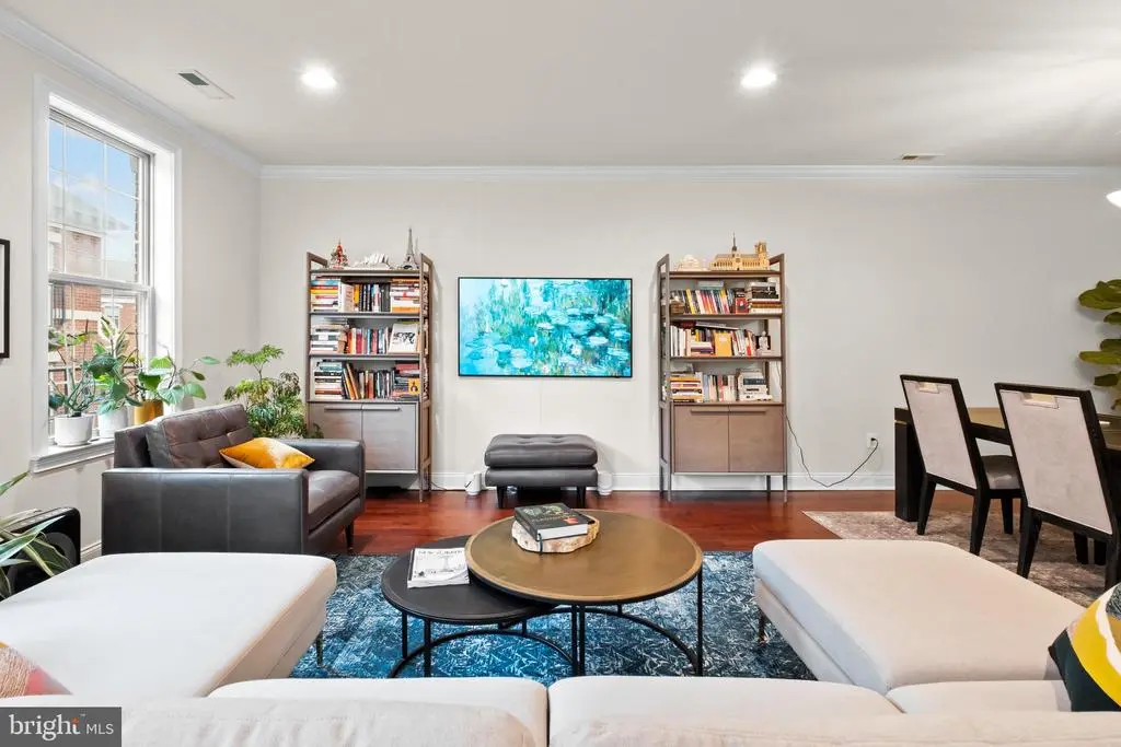 Nestled along a picturesque, tree-lined walkway in Naval Square- Philadelphia’s premier gated community- 112 Commodore Ct unveils a truly exceptional 23-foot-wide bi-level townhome just a short walk to both Rittenhouse Square & University City. This sun-drenched end unit features 8 extra windows, 3 spacious bedrooms, 2.5 baths, a private terrace and the ultimate convenience of an attached one-car garage. Step into a bright and inviting open-concept living and dining area, beautifully enhanced with rich hardwood floors, two additional windows that fill the space with natural light, and an abundance of upgraded recessed lighting. The chef-inspired kitchen is a true showpiece, boasting elegant shaker-style cherry cabinetry, a tumbled marble backsplash, sleek granite countertops, and a full-size pantry. A premium stainless steel appliance suite includes a four-door Samsung refrigerator, Bosch dishwasher, stainless range, and a newer microwave — perfectly blending style and functionality. The adjacent family room space opens onto a full-length private terrace—perfect for relaxing or entertaining. Upstairs, retreat to the elegant primary suite, a serene haven featuring soaring vaulted ceilings, plush carpeting, and an expansive walk-in closet outfitted with custom California Closet built-ins. The spa-inspired en-suite bath offers dual vanities with granite countertops, a relaxing soaking tub, and a separate glass-enclosed shower. Two additional sun-drenched bedrooms—one also showcasing a second custom California Closet walk-in—share a beautifully appointed hall bath. A convenient laundry closet with washer and dryer and even more built-in storage completes this thoughtfully designed upper level. Additional highlights include a convenient attached garage with built-in storage, plus a private hallway leading to the garage featuring custom built-ins—perfect for organizing everyday essentials. There’s also ample space to store bikes, strollers, and more, blending thoughtful design with effortless functionality. Enjoy peace of mind knowing that all major mechanical systems have been recently updated, including the lower-level HVAC in 2025, the upper-level HVAC in 2023, and the hot water heater in 2022. Countless lighting upgrades throughout ( 5K). Enjoy the ease of having the heated outdoor pool & state-of-the-art fitness center less than a minute walk from your building and the concierge close by. You’ll also love the convenience of having an Amazon Locker station right in the community. The dramatic community room in Biddle Hall rotunda is perfect to reserve for private parties. Enjoy the outdoor amenities of the 20-acre park-like setting: including picnic areas, well-kept gardens & mature landscaping. With a gated entry and on-site visitor parking, convenience and security are paramount. Very close proximity to South Street Bridge, UPenn (0.7 mi), CHOP, HUP & Drexel, Rittenhouse (0.9 mi) & Fitler Square. Fantastic restaurants and cafes, such as Rival Bros Coffee, Friday Saturday Sunday (James Beard Winner), Illata BYOB, Pub & Kitchen, Southgate, Sabrina's & Loco Pez, are all just steps outside the gates. The new Heirloom Market by Giant and South Square Market are only a block away. Directly out the back gate you will find easy access to the Schuylkill River Park, including the Award Winning Trail & Boardwalk, Markward playground, Tennis Courts & dog park! Naval Square is a pet friendly community allowing up to 2 pets with no weight restrictions. Don't miss this rare opportunity to own a piece of urban paradise in one of Philadelphia's most sought-after neighborhoods! There is a special assessment with an additional monthly charge of $413.88 until Dec 2026. This is not reflected in the monthly condo fee of $740.16. If possible, seller prefers mid- December settlement with rent back until January 11th 2025.