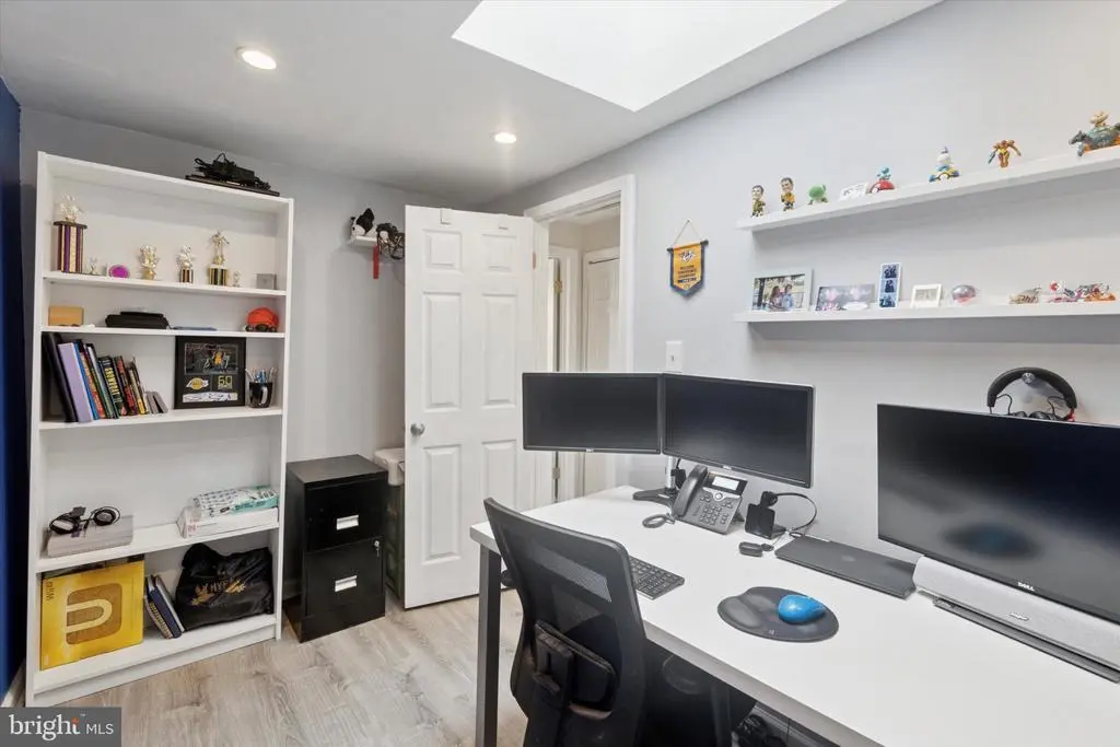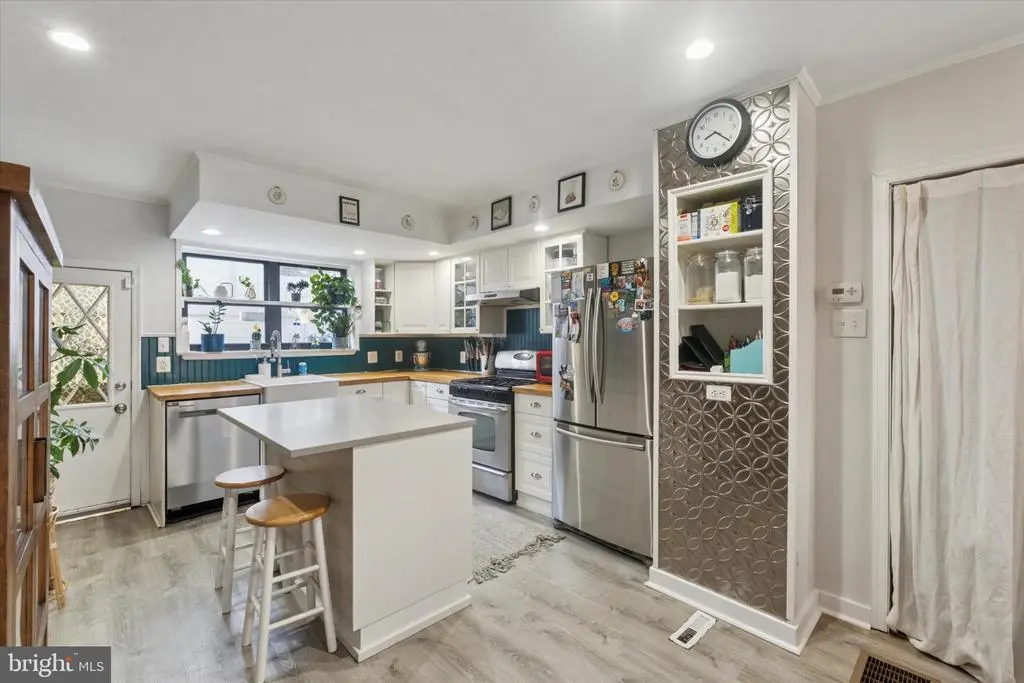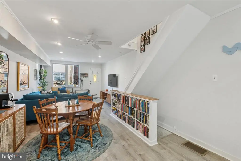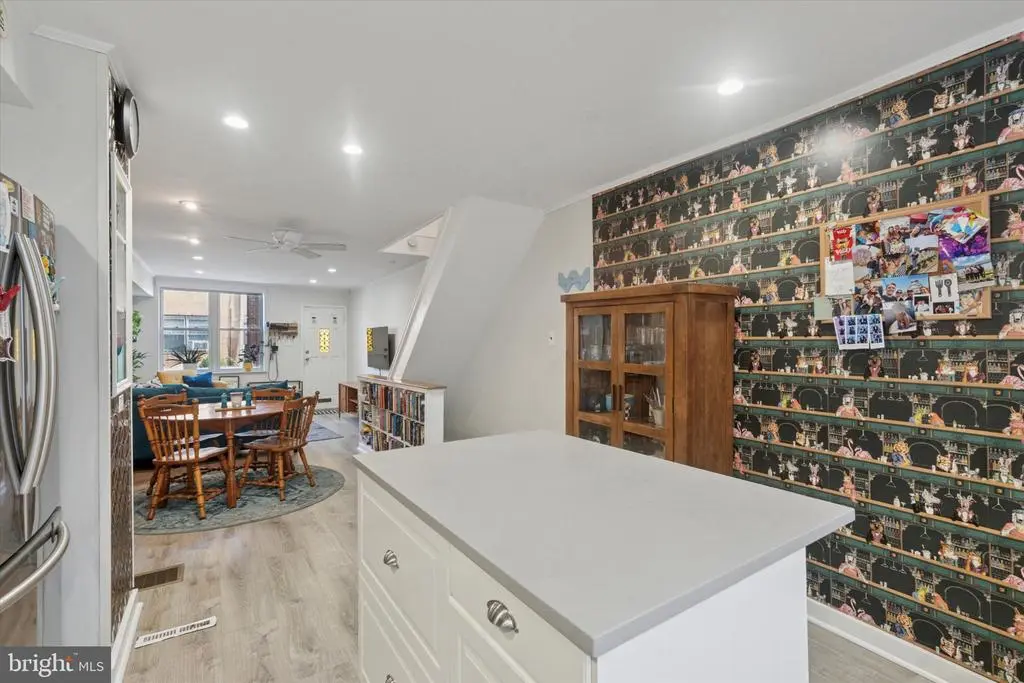 Welcome to this charming, updated home in highly desirable Passunk Square. Enter into the quintessential open floor plan with loads of natural light. There’s plenty of room for a comfy sectional in the living room and an expandable table in the dining room, and you’ll love the bright, spacious kitchen with island seating and plenty of storage. The ample storage on this floor includes a pantry closet and a beautiful custom built-in bookcase. The back door leads out to a generous sunny patio for your table, grill and planters. The second floor has three bedrooms, full bathroom, and a hall closet. The front and rear bedrooms both have great closet space, and light pours into the middle bedroom through a large skylight. Down in the basement the front room is partially finished with some built-in shelves and desk providing additional flex space, and the unfinished rear room houses all the mechanicals, a Speed Queen washer and dryer, and has extra space for storage. This cute block is located just steps from the ACME and CVS, Pat’s and Geno’s, and everything that Passunk Ave has to offer. It’s also a short walk to the Italian Market. Gold Star Park, which is a neighborhood gem, is just around the corner, abd Benna’s Cafe is only a half a block away. This location has it all. New roof installed in 2021. Showings start Sunday, October 26 at the Open House 11am-1pm.