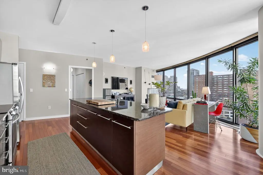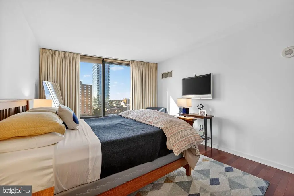 Perfectly positioned within the prestigious Murano Condominium, this stunning two-bedroom, two-bathroom residence offers style, sophistication, and comfort. Set along the building’s dramatic curve, the home showcases an expansive band of floor- to- ceiling glass panels, flooding the space with beautiful natural light and offering captivating southwestern views. Enter through an impressive gallery-style foyer that opens into a spacious, open-concept living and dining area with an elegant modern kitchen featuring imported Italian cabinetry, granite countertops, stainless steel appliances, and a sleek glass-tile backsplash. A generously sized balcony extends from the kitchen and is an ideal spot for morning coffee or dining al fresco. Handsome hardwood floors flow throughout, enhancing the home’s warmth and contemporary aesthetic. The oversized primary suite serves as a serene retreat, while the large guest bedroom offers comfort and privacy for visitors. Custom-designed closets and tailored window treatments layer the home with style and sophistication. Included with the residence are one garage parking space and a dedicated storage unit. Enjoy the Murano’s exceptional amenities, including a 60-foot indoor lap pool, 5,000 sq. ft. outdoor terrace, hospitality suite, and 24-hour concierge, bike storage and EV charging. Steps away from Trader Joe’s and Giant grocery stores, The University of Pennsylvania, Drexel University, The Schuylkill River trails, The Art Museum, Rittenhouse Square, 30th Street Station and all the stylish boutiques and impressive restaurants the neighborhood has to offer. An opportunity that should not be missed.