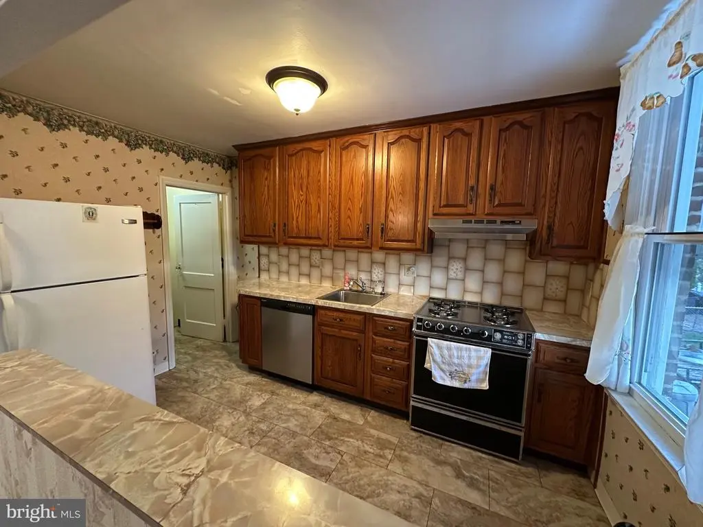 2916 Brighton Street is a brick front, airlite row home in West Mayfair. 1st floor features a spacious living room, dining room and kitchen. Kitchen features wood cabinets, gas cooking, dishwasher and garbage disposer with stairs to the basement. The basement is roomy, with 1/4 bath, laundry area and exit to one car garage and extra long fenced private driveway. The 2nd floor offers 3 airy bedrooms, all with ample closet space and ceiling fans, and a hall bathroom with ceramic tile. This home is in a great location and has been well maintained by the current owner and is move-in ready. Easy commute to shopping, schools and transportation.