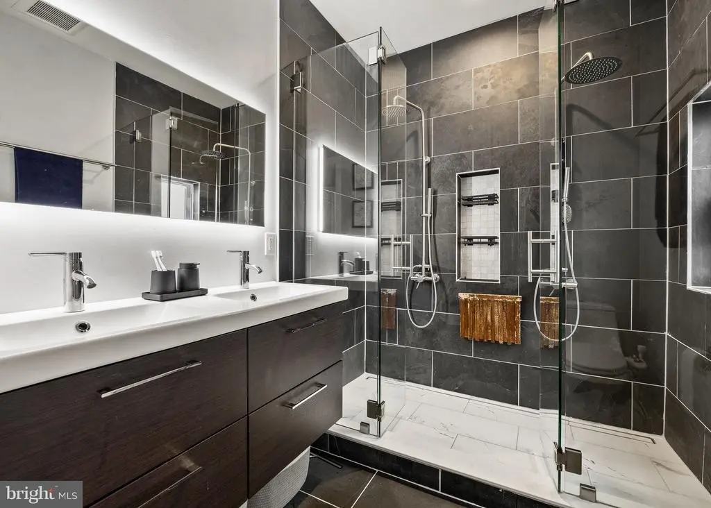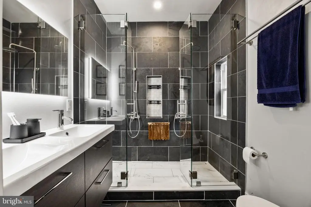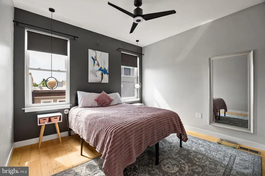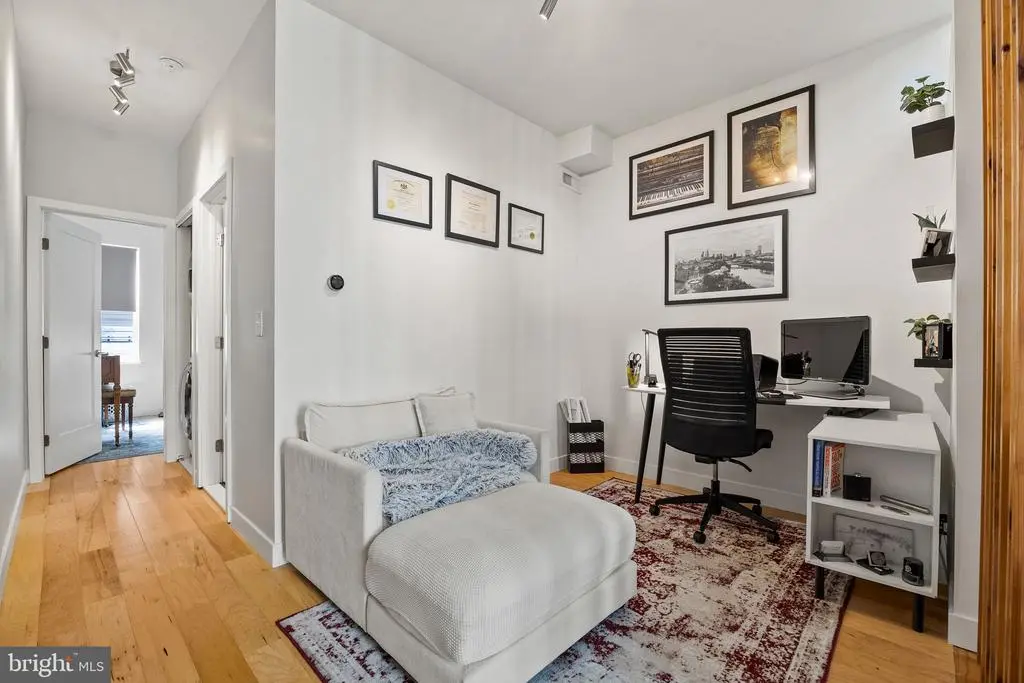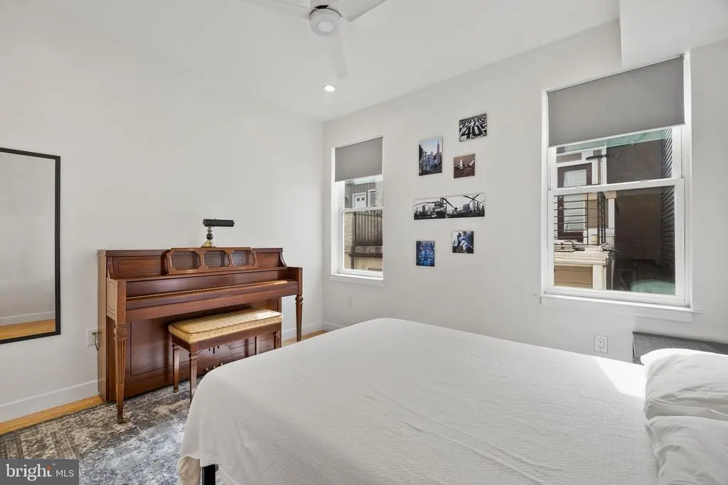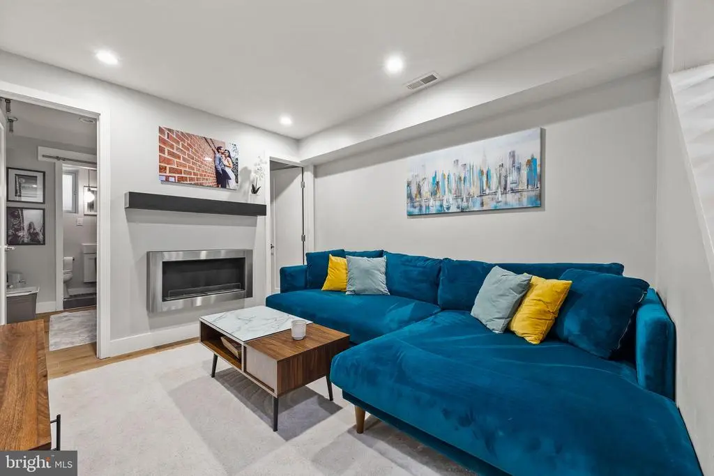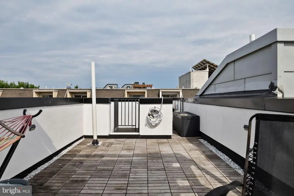 Tucked away on one of Northern Liberties’ most charming cobblestone blocks, 858 North Leithgow Street is a thoughtfully designed, architecturally significant home that’s truly one of a kind. Built in 2019, this contemporary 3 bedroom, 3 bathroom home makes a bold impact, with every inch of space carefully considered, with refined finishes, custom features, and an abundance of natural light throughout. The main level features extra high ceilings and a warm, open design. The living area has a custom wood architectural element that rises from floor to ceiling, dividing the sitting area from the staircase and connecting the floors above and below the main level in a playful yet compelling way. The kitchen is flooded with light from clerestory windows above and includes a peninsula with barstool seating, sleek cabinetry with built-in conveniences (spice rack, refuse, lazy susans), and stainless steel appliances. Just off the kitchen, a private backyard patio offers the perfect setup for morning coffee, outdoor dinners, or casual gatherings. The fully-finished lower level is a true extension of the home’s living space and includes a media room, a full bedroom, and a stylish open wet bath with tile floors and walls. Under a modern mantle in the media room, a fireplace with bioethanol heating adds a cozy touch and is included with the home. On the second floor, an open office area leads to a second bedroom, laundry, and an elegant full bath. The third-floor primary suite includes excellent closet space, a stunning full bath with dual vanities, sleek black tile, and a dual-head setup in an oversize shower. The third floor also provides access to an interior courtyard area. This unique, gravel-floored indoor-outdoor space connects to a spiral staircase that leads up to the private rooftop deck. The rooftop entertainment area is a true highlight, complete with a custom pergola and incredible views of Center City and the Ben Franklin Bridge. Whether you're entertaining or simply enjoying a quiet evening, this space is beautifully finished and easy to love. Additional highlights include hardwood floors throughout, central air, tankless hot water heating, ceiling fans in the bedrooms and living room, sliding closet doors, and a custom refuse and recycling enclosure at the front of the home. Window treatments, light fixtures, kitchen appliances, washer/dryer, gas grill, and bioethanol fireplace are all included in the sale, and 5 years remain on full tax abatement! This is not a typical row home—it's a smart, sophisticated space with tasteful design and creative use of every square foot. Every detail reflects the care, intention, and passion of the architect-owner who has brought to life a modern, warm residence as a model for urban living. Just steps from some of the best dining, coffee shops, markets, bars, and public transportation in Northern Liberties, 858 N Leithgow is a home you’ll love coming back to every day.