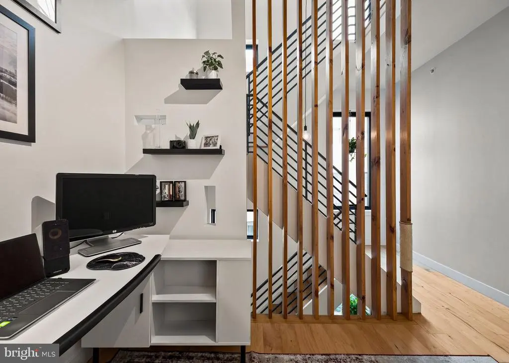 Bathroom - Walk-In Shower, Ceiling Fan(s), Built-Ins, Recessed Lighting, Spiral Staircase, Studio, Upgraded Countertops, Wood Floors