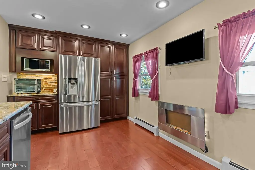 Refined Living in the Heart of the Northeast - Welcome to 4210 Greenmount Road!! This beautifully loved home for over 40 years includes upgraded features where comfort meets sophistication. The heart of the residence features a spacious living room, high-end kitchen adorned with rich cherry wood cabinetry, granite countertops, and stainless steel appliances, creating a culinary space that’s as functional as it is stylish. An electric fireplace with a mounted TV adds warmth and charm, while the spacious dining area invites gatherings and memorable meals. Upstairs, you’ll find three generously sized bedrooms, each offering ample closet space, along with a modern remodeled bathroom featuring heated floors, a luxurious touch you’ll appreciate year-round. The finished lower level expands your living area with direct slider access to the backyard oasis, complete with a covered patio, and a above ground pool w/surrounded deck (opened every season and well maintained by owners - has newer liner/pump/motor) ideal for entertaining or unwinding in privacy. The large yard offers room to play, relax, or garden, while the converted shed serves as your very own outdoor bar lounge, a perfect setting for game nights, fall festivities or summer parties. A private driveway provides convenient off-street parking. Beautifully designed and meticulously maintained, this home blends indoor elegance with outdoor enjoyment, offering the best of Philadelphia living in a quiet, desirable neighborhood. Lastly, you'll benefit from convenient access to major thoroughfares such as Interstate 95, Roosevelt Blvd, as well as strong local education options (including the Arts Academy at Benjamin Rush High School, and elementary schools like Stephen Decatur School and Aloysius L. Fitzpatrick School) and accessible regional transit via SEPTA bus and rail service and several shopping districts with fabulous nearby restaurants. Don't miss out on this opportunity. Schedule your tour today.