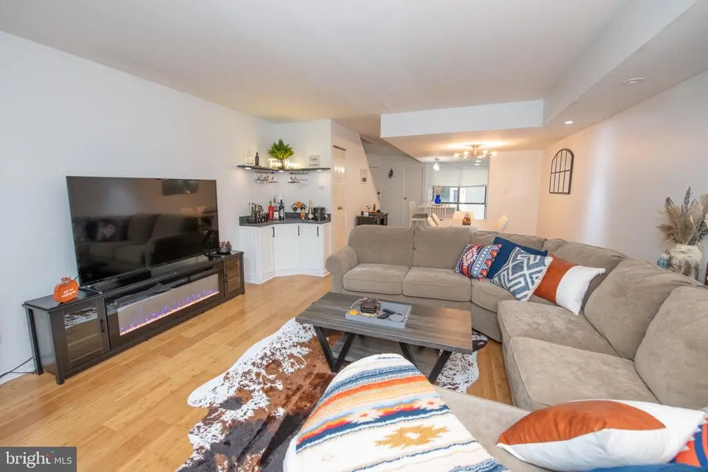 Welcome to “The Treehouse” (Unit E); a beautifully updated 2-bedroom, 2.5-bath condo in the desirable Green Tree Run community. This spacious home offers a bright, open-concept layout with brand new luxury vinyl plank flooring throughout both levels and elegant bamboo hardwood accents. The first floor has been completely refreshed to create a modern, open living space. A wall was removed to expand the kitchen and enhance flow into the living area. The kitchen features brand new quartz countertops, an added island with bar seating, built-in bench seating for casual dining, updated stainless steel appliances including a new microwave, stove, and refrigerator, and updated electrical/recessed lighting. The first floor also includes a completely renovated half bath and a stylish built-in bar area perfect for entertaining. Upstairs, the primary suite offers a private bath and a large walk-in closet, while the hall bath features a brand new tub installed by Bath Fitter. A new central AC unit provides peace of mind and comfort throughout the home, along with recently installed modern ceiling fans in each bedroom. A brand new washer-dryer combo adds convenience. Enjoy peaceful woodland views from your newly enclosed private sunroom balcony, with walk in closet for additional storage. Take advantage of Green Tree Run’s outstanding amenities—clubhouse, fitness center, indoor and outdoor pools, sauna, and walking paths. HOA fees include heat & water, as well as one guaranteed assigned parking spot, with plenty of overflow parking as well. Brand new roof installed this year! Conveniently located near major routes, public transportation, shopping, and dining, this home combines comfort, convenience, and contemporary style. Schedule your private showing today!