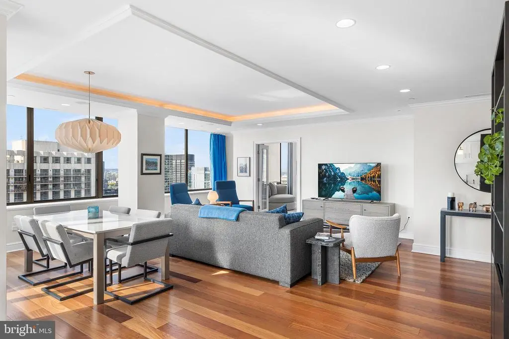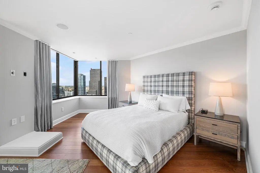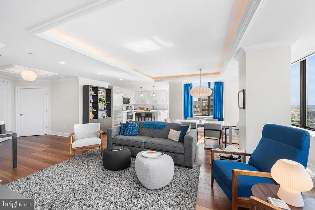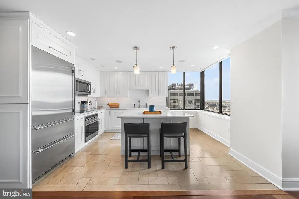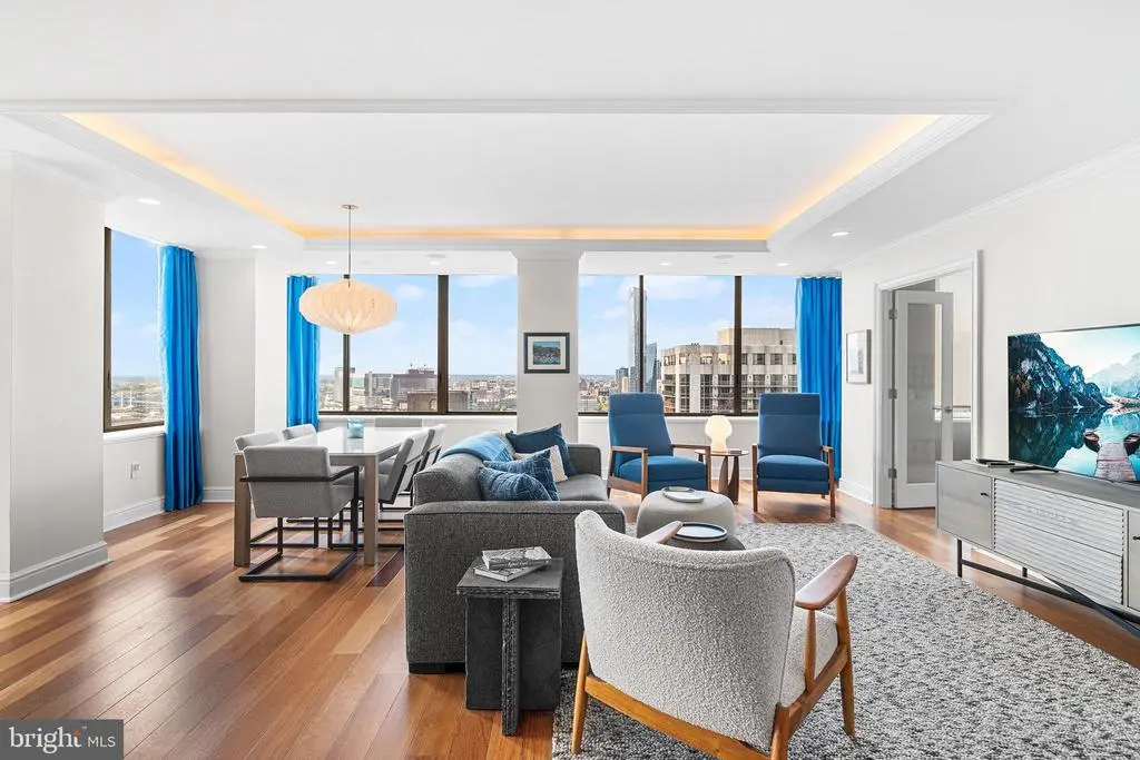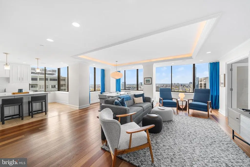 Experience elevated living in this exceptional corner residence on the 26th floor of The Rittenhouse Hotel and Condominium, where sweeping north, south, and sunset views fill the home with light and energy. A welcoming foyer leads to an expansive open-concept living and dining area surrounded by floor-to-ceiling windows that capture spectacular sunsets and sparkling night vistas. The thoughtfully designed split floor plan offers ultimate privacy, with a bedroom and full bath on either side of the main living space—ideal for hosting guests or creating a private retreat. The beautifully renovated kitchen features crisp white cabinetry, quartz countertops, and top-tier stainless steel appliances, including a Sub-Zero refrigerator, while the primary suite offers a tranquil escape with a spa-inspired bathroom in soothing shades of gray and white. Additional highlights include a stylish powder room, elegant flooring throughout, custom lighting, well-appointed closets, and remote-controlled window treatments. Residents of this prestigious address enjoy access to world-class amenities (available for an additional fee), including acclaimed restaurants, a chauffeur-driven town car, a luxury spa, an indoor pool, an outdoor sun deck and parking. A current special assessment with a remaining balance of $15,776 applies.