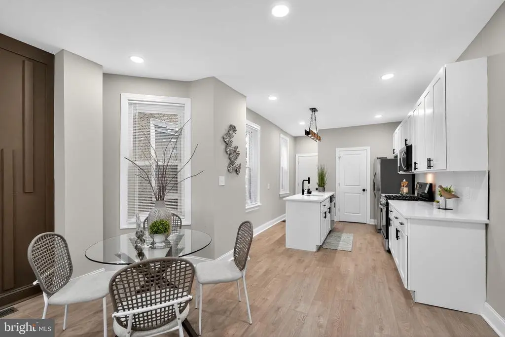 Welcome Home to 1453 S 52nd Street! This beautifully renovated three-bedroom, one-and-a-half-bath home offers 1,112 square feet of modern living space in the heart of West Philadelphia. Step inside to find brand-new laminate wood flooring that flows seamlessly throughout the entire home — from the spacious living and dining areas to all three bedrooms upstairs. The kitchen is the true centerpiece, featuring sleek white shaker cabinets, stainless steel appliances, granite countertops, and a large island with a built-in sink and dishwasher — perfect for cooking, entertaining, or gathering with family and friends. A stylish half bathroom on the main level adds convenience for guests. Upstairs, you’ll find three generous bedrooms with the same modern flooring and a fully updated full bath with a new vanity, commode, and ceramic tile flooring and shower surround. Additional highlights include brand-new HVAC with central air conditioning for year-round comfort. This move-in-ready home combines contemporary finishes with everyday functionality.