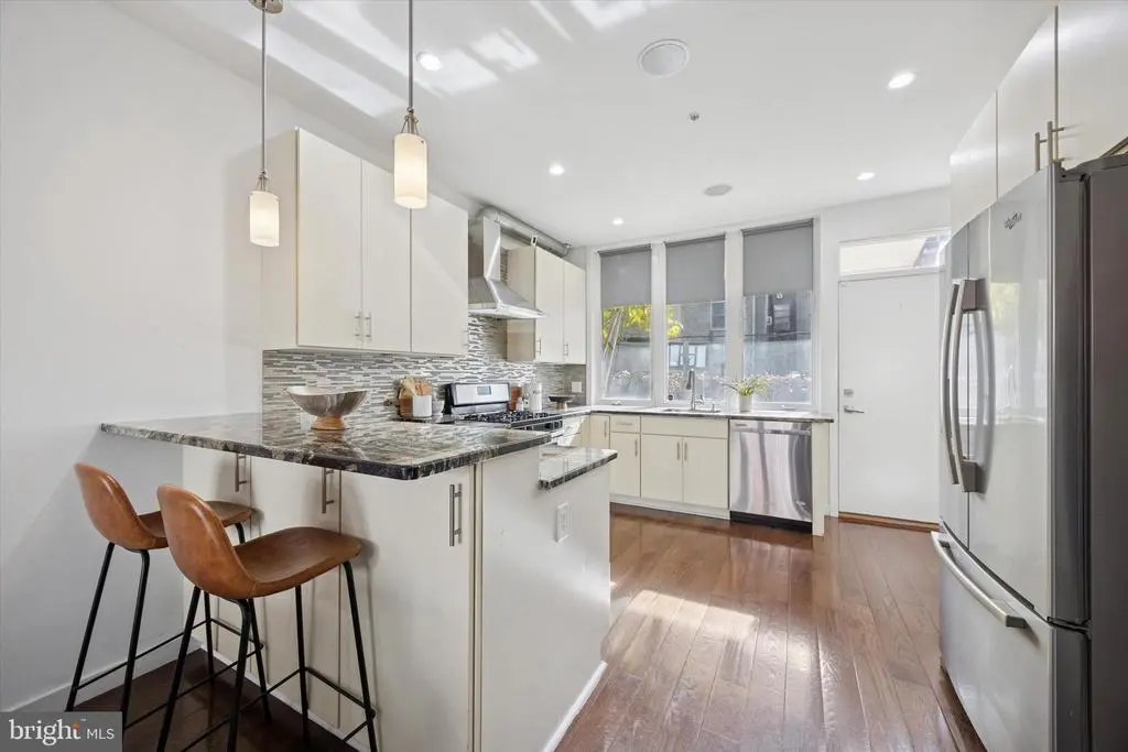 ***MULTIPLE OFFERS RECEIVED - OFFER DEADLINE OF TUESDAY 11/11 AT 9 AM***. Move right in on Montrose! Welcome to 2212 Montrose, a home that truly has it all! Enjoy living on one of the best blocks in all of Graduate Hospital and experience a small, quiet street with friendly neighbors all around! This four bedroom, three full bathroom home, at almost 2200 sq ft of living space, with a finished basement and roof deck, is perfection! Upon entering the home, you are greeted with a wide open floor plan and can't miss the wide plank hardwood flooring throughout. The kitchen is complete with beautiful dark granite counters, stainless steel appliances including a drawer microwave, a two-tiered peninsula for extra seating and plenty of storage space! From there, head to the large back patio surrounded by a wooden fence, great for all outdoor activities. The versatile second floor has two large bedrooms, both with great closet space, and a hall bathroom with a tub and large format tile shower surround. The primary suite is on the third floor and is not to be missed! The spacious bedroom gets tons of natural light and captures the detailing of the bay window. Enjoy an enormous walk-in closet, outfitted with a custom Elfa closet system with plenty of hanging and drawer storage. The amazing primary bath has a double vanity with tile backsplash and large shower stall complete with marble tile, and three piece shower system including a rainhead and handheld fixture. A wet bar is ideally located outside of the bedroom to service the roof deck above. The roof deck has unobstructed, breathtaking views of the entire skyline! For extra living space and the fourth bedroom complete with a third full bath, head down to the basement which has new luxury vinyl plank flooring throughout! Updates sellers have done during their ownership: New wide plank luxury vinyl tile flooring in the basement (12/2023), Elfa closet system in primary suite (2021), new HVAC compressor (5/2022). Walk-score is off the charts from here as you can get to so many hot spots within Graduate Hospital in minutes including Julian Abel Park, Schuylkill River Trail, brand new Aldi and CVS a few blocks away, Sidecar Cafe, Loco Pez, Ultimo Coffee, Heirloom, Dock Street Brewery, Chick's, Ant's Pants Cafe and more! Head up to Fitler Square and Rittenhouse Square in minutes! Take a look at this gem of a home today and move right in and enjoy the ease of city living tomorrow!