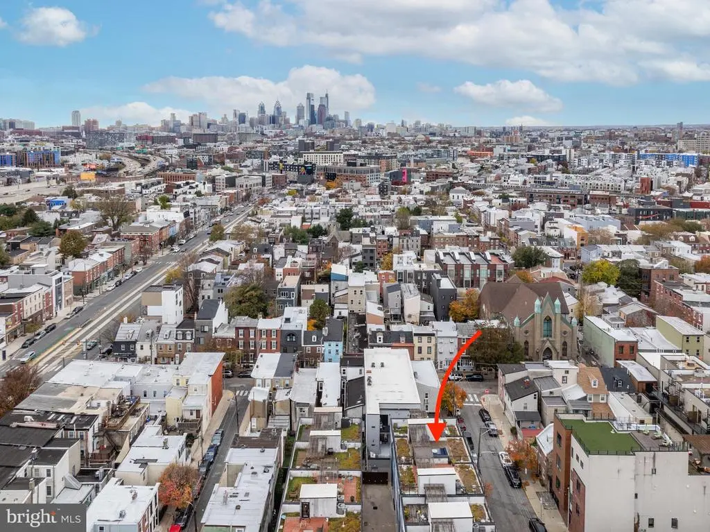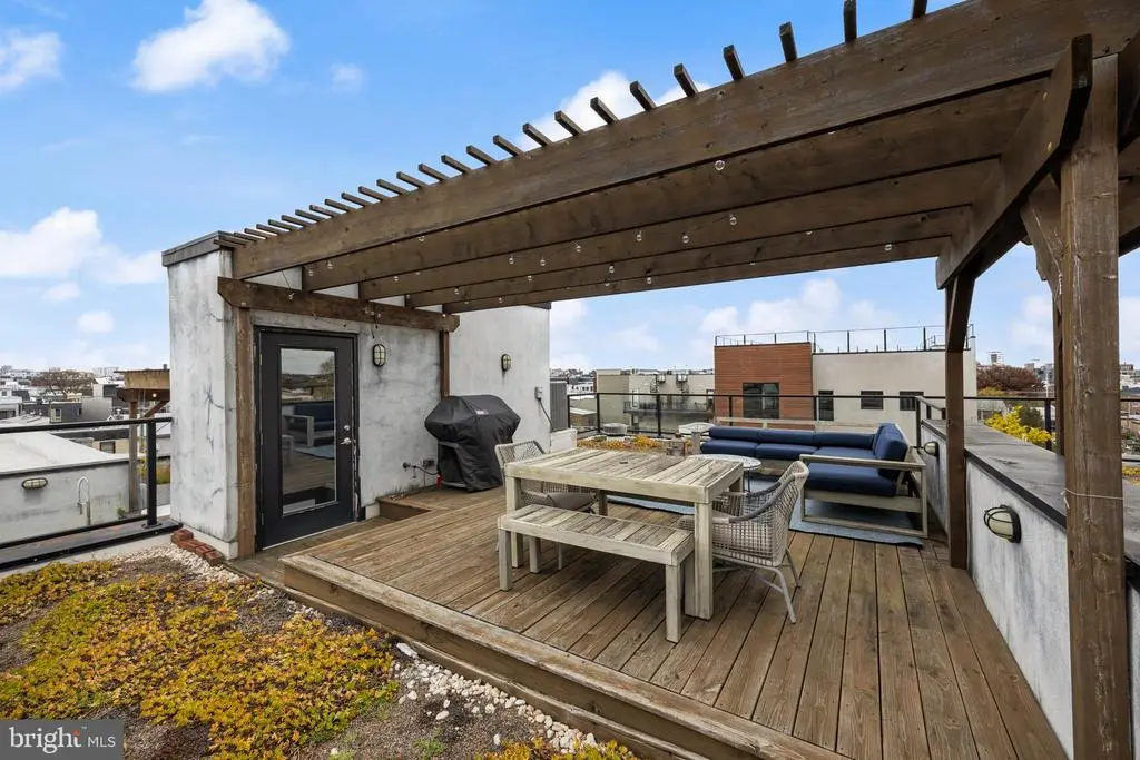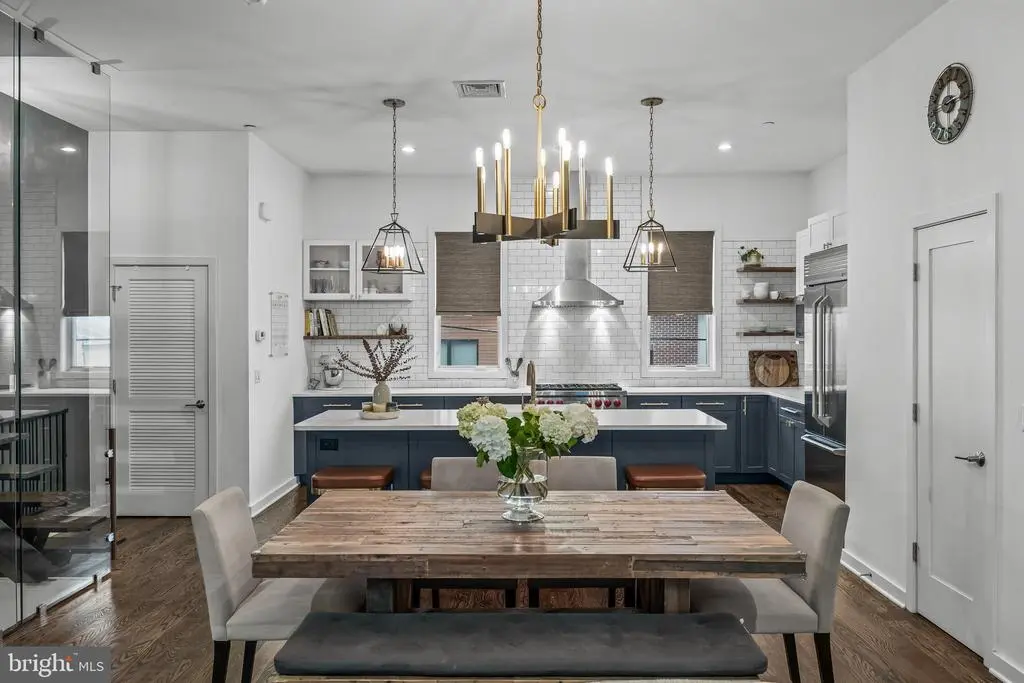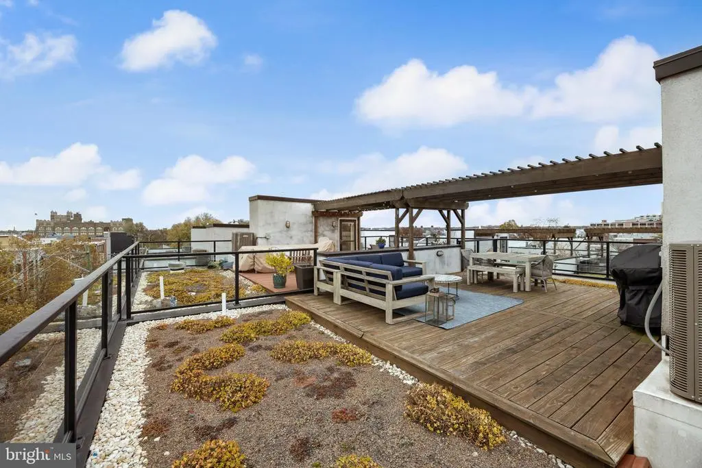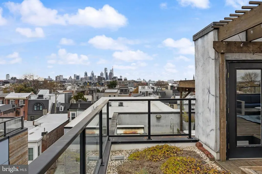 Welcome to Moyer Court, a unique community in the true heart of Fishtown. This one-owner residence has been lovingly maintained and offers a rare blend of modern comfort, thoughtful design, and unbeatable location. Situated in the actual center of Fishtown, this home puts you minutes from La Colombe, Suraya, Kalaya, and countless other neighborhood favorites. The El train is just a short stroll away, connecting you quickly to Center City and beyond. Despite its proximity to the action, Moyer Street remains peaceful and community-minded, with friendly neighbors and easy street parking. While the home is in a townhome community, each unit is fully customized from layout to features so no two homes are alike. From the minute you step up to the living room, you'll immediately notice the grandeur of the 10 foot ceiling height and expansive 25 foot wide living area that is unlike most townhomes in Fishtown. The gourmet chef's kitchen only adds to the luxury feel with an extra long island, custom colored kitchen cabinets, and high end appliances including a Wolf range and built in Monogram professional grade refrigerator. No design detail was spared by the owners who sourced custom made reclaimed kitchen shelves from the Philadelphia Salvage Company and luxury light fixtures from a local boutique lighting company. This kitchen and living area is every host's and avid cook's dream for everyday living and entertaining. The third floor features a large primary suite with large custom walk-in closet offering boutique-style storage and organization. The primary suite extends into a beautiful light filled office. A third, smaller bedroom can easily accommodate a full sized bed or serve a variety of functions based on the new owners' needs. This floor also has another full bathroom and nice sized storage closet. Full sized, energy efficient washer and dryer are located on the first floor. The green rooftop oasis offers sweeping city views of the Ben Franklin Bridge and Center City skyline. Features such as the built-in gas line (no propane tanks needed) and lush plants make it the perfect space for outdoor dining, gardening, and sunset gatherings A private one-car garage that fits a medium-sized SUV with ease and gated drive isle for secure package delivery offer a much sought after convenience for city life. The unit is also walking distance from multiple parks and steps from Adaire, Fishtown Rec, and Swimmo.