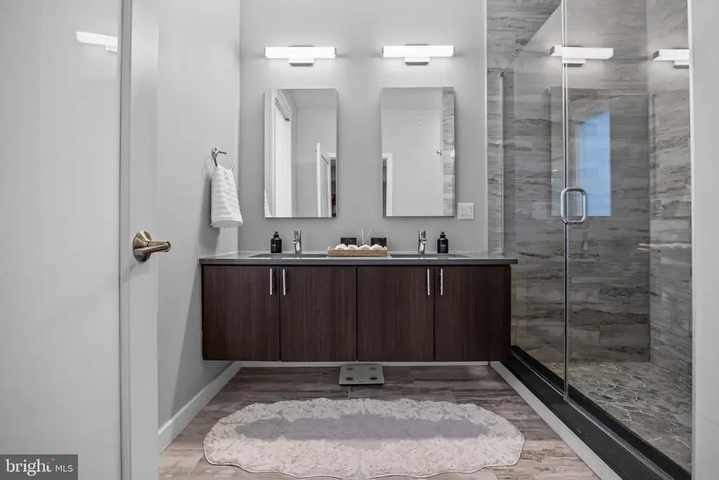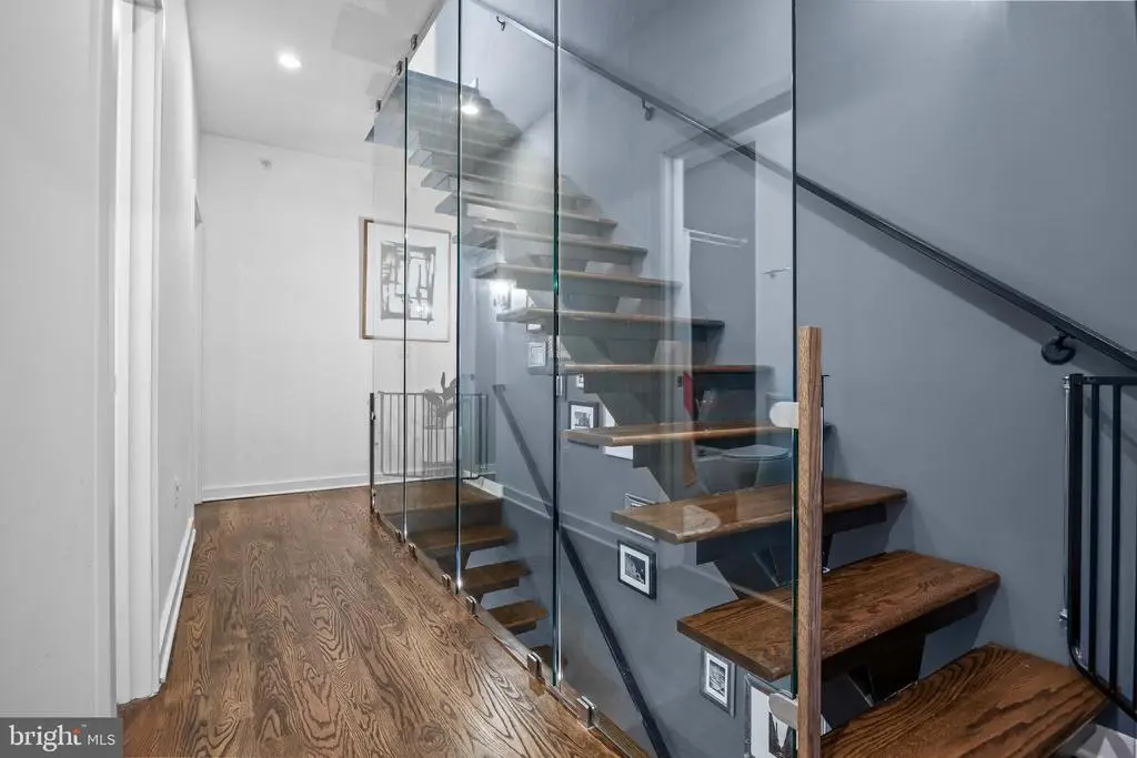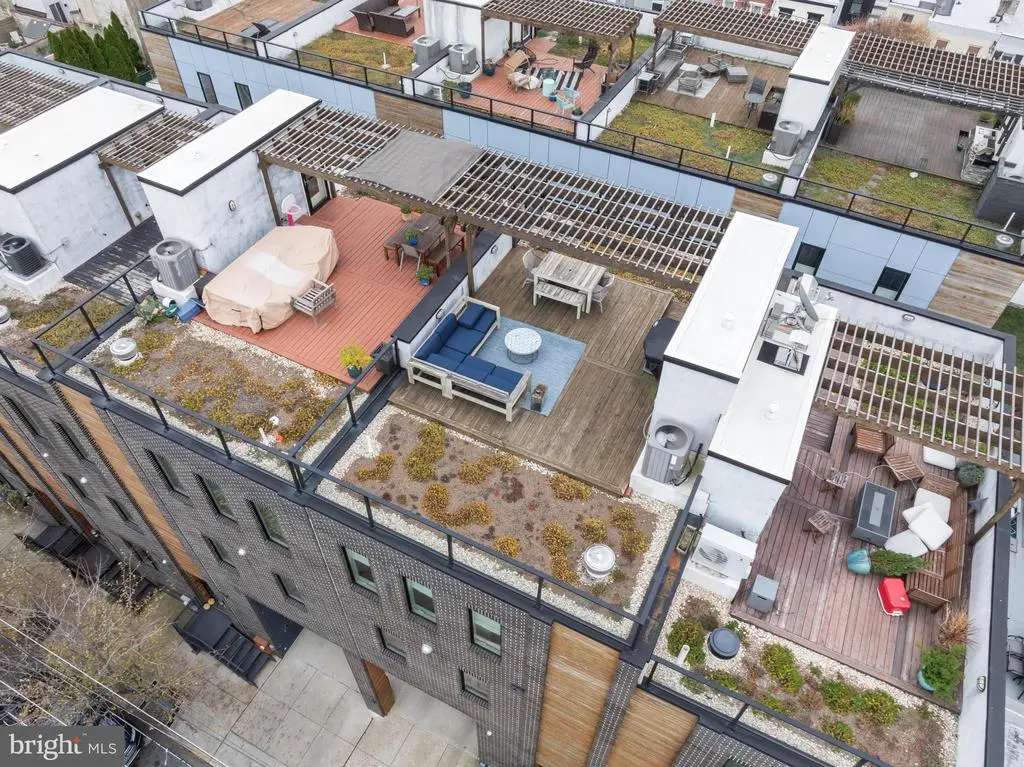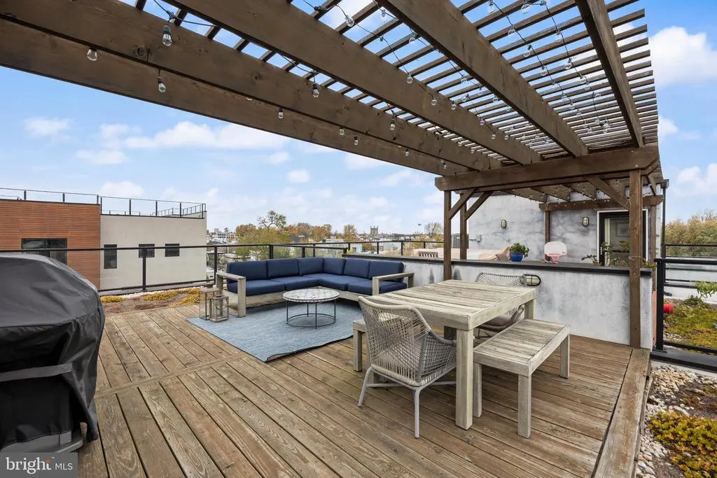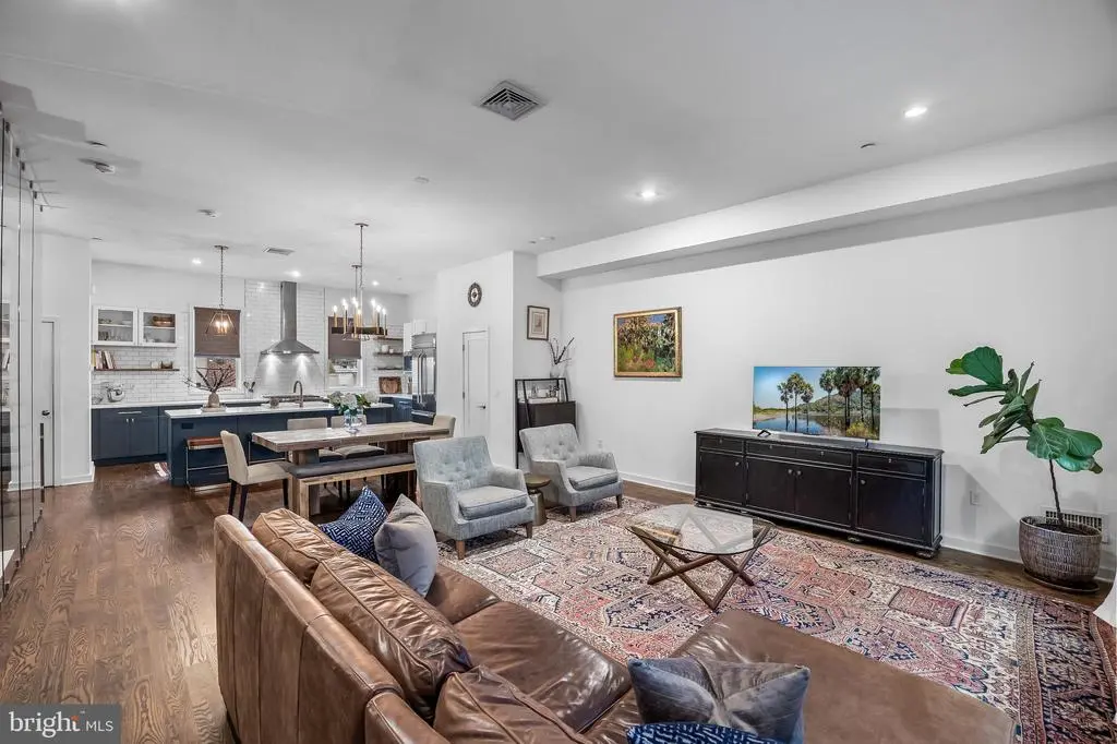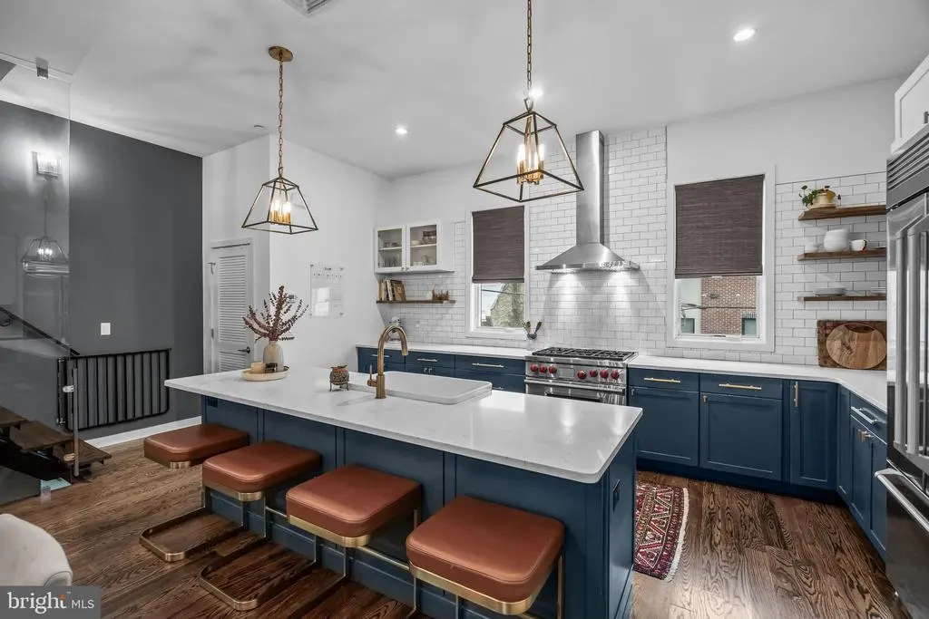 Welcome to Moyer Court, a unique community in the true heart of Fishtown. This one-owner residence has been lovingly maintained and offers a rare blend of modern comfort, thoughtful design, and unbeatable location. Situated in the actual center of Fishtown, this home puts you minutes from La Colombe, Suraya, Kalaya, and countless other neighborhood favorites. The El train is just a short stroll away, connecting you quickly to Center City and beyond. Despite its proximity to the action, Moyer Street remains peaceful and community-minded, with friendly neighbors and easy street parking. While the home is in a townhome community, each unit is fully customized from layout to features so no two homes are alike. From the minute you step up to the living room, you'll immediately notice the grandeur of the 10 foot ceiling height and expansive 25 foot wide living area that is unlike most townhomes in Fishtown. The gourmet chef's kitchen only adds to the luxury feel with an extra long island, custom colored kitchen cabinets, and high end appliances including a Wolf range and built in Monogram professional grade refrigerator. No design detail was spared by the owners who sourced custom made reclaimed kitchen shelves from the Philadelphia Salvage Company and luxury light fixtures from a local boutique lighting company. This kitchen and living area is every host's and avid cook's dream for everyday living and entertaining. The third floor features a large primary suite with large custom walk-in closet offering boutique-style storage and organization. The primary suite extends into a beautiful light filled office. A third, smaller bedroom can easily accommodate a full sized bed or serve a variety of functions based on the new owners' needs. This floor also has another full bathroom and nice sized storage closet. Full sized, energy efficient washer and dryer are located on the first floor. The green rooftop oasis offers sweeping city views of the Ben Franklin Bridge and Center City skyline. Features such as the built-in gas line (no propane tanks needed) and lush plants make it the perfect space for outdoor dining, gardening, and sunset gatherings A private one-car garage that fits a medium-sized SUV with ease and gated drive isle for secure package delivery offer a much sought after convenience for city life. The unit is also walking distance from multiple parks and steps from Adaire, Fishtown Rec, and Swimmo.