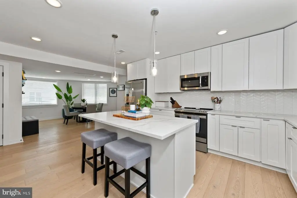 Welcome to 1716 Cambridge Street! Unit 3 is a bright and airy condo, located on the 2nd level of a modern boutique building. The sleek entrance to the building includes a video intercom system to communicate with guests and provide remote access. Enter the condo into an expansive, open-concept floor plan. The stunning kitchen boasts white shaker cabinets, quartz countertops, a custom tiled backsplash, stainless steel appliances, island seating with pendant lighting and an adjacent dining area. The home includes wide plank hardwood floors and recessed lighting throughout. The spacious living room includes oversized windows and access to one of two balconies. The primary bedrooms suite includes a huge walk-in closet, access to the 2nd covered balcony, a luxurious bathroom with double vanity, a large walk-in tiled shower with rainfall showerhead and a private water closet. The secondary bedrooms are generously sized with oversized windows, each with adjacent full bathrooms with tub-shower combo. Enjoy the convenience of in-unit laundry. Located in the bustling Francisville neighborhood where you can enjoy nearby cafes, restaurants and venues such as The Met. Easy access to the broad street line, Fairmount Ave and easy commute to Temple University and Hospital. Low Taxes due to the tax abatement. Approximately 4 years remain. Low condo fees.