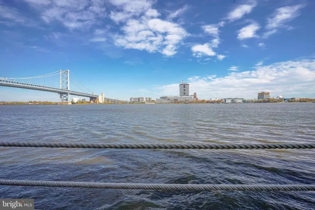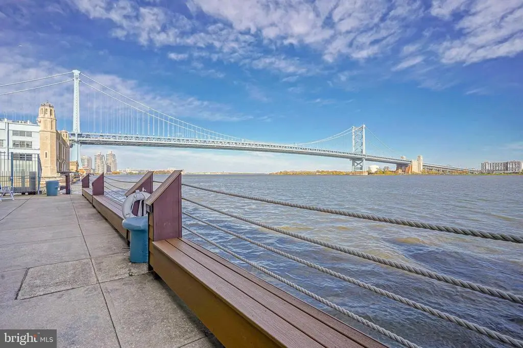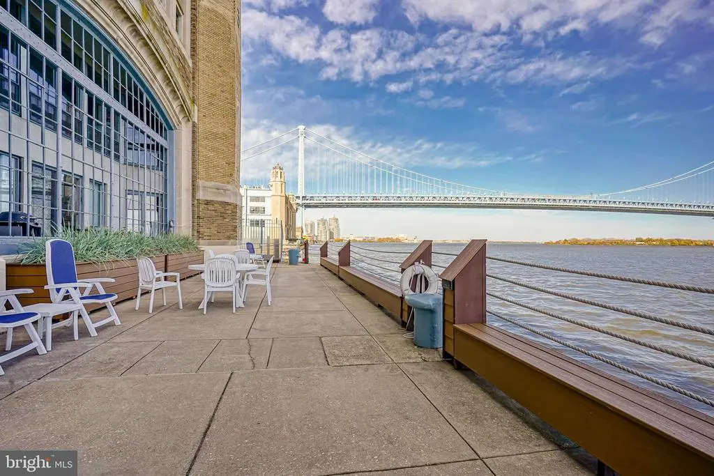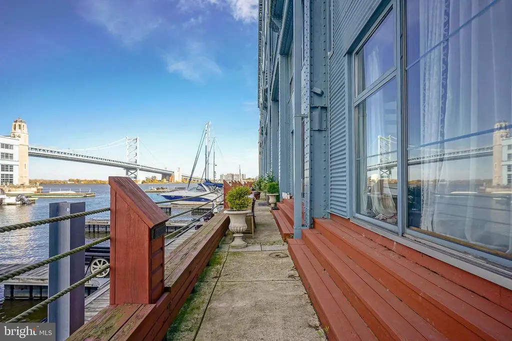 Experience true waterfront living at Pier 3 Condominiums, one of Philadelphia’s most desirable addresses along the Delaware River. This 2-bedroom, 2-bath home blends modern updates, incredible natural light, and seamless indoor-outdoor living with one of the largest private waterfront decks in the city. Enjoy the convenience of secure garage parking and access to four on-site electric car charging stations—an uncommon perk for waterfront living in Philadelphia. Step inside to an open designer kitchen with sleek cabinetry, stainless steel appliances, granite countertops, a dishwasher, and a convenient breakfast bar. The kitchen flows into a spacious living area with triple sliding glass doors that open to the expansive deck, an entertainer’s dream where you can dine, relax, and take in views of the Ben Franklin Bridge and marina. Natural light fills the space throughout the day, highlighting hardwood floors, wood French doors, and an oak staircase that adds warmth and texture to the modern design. The primary bath features a large soaking tub, while the guest bath includes a stand-up shower and an in-unit washer and dryer. Comfort is built in with high-efficiency HVAC, endless hot water, and radiant heat in every room. The home also offers generous storage, including a walk-in closet in the primary suite. Pier 3 residents enjoy a 24-hour concierge, 24/7 door person for security and package deliveries, a heated indoor pool, fitness center, and a community waterfront deck overlooking the Delaware River. Located just a five-minute walk to Old City and with quick access to I-95, this home offers the perfect balance of city convenience and tranquil waterfront living. Move-in ready and available for almost immediate occupancy.