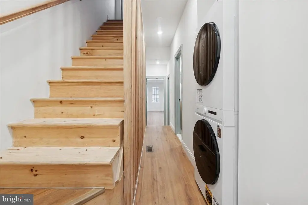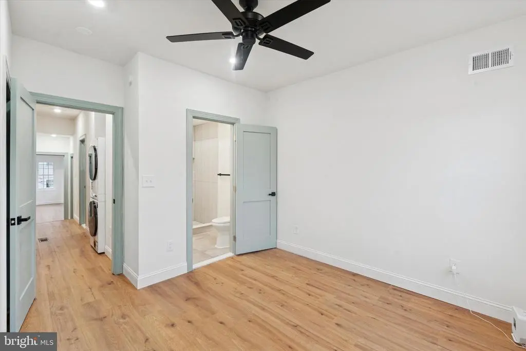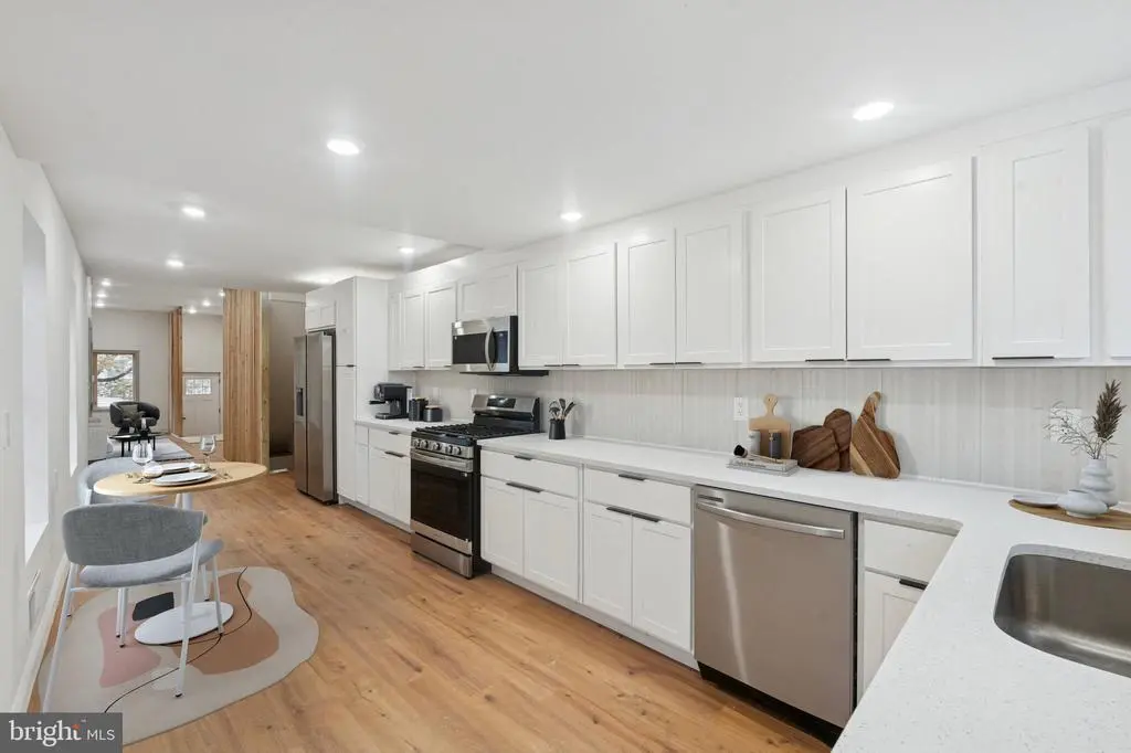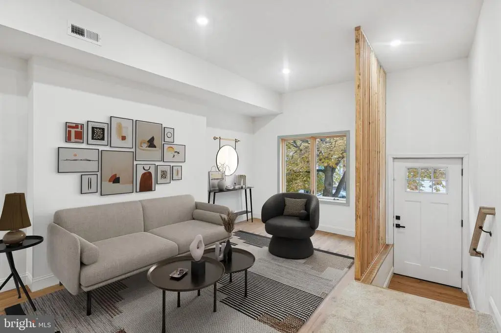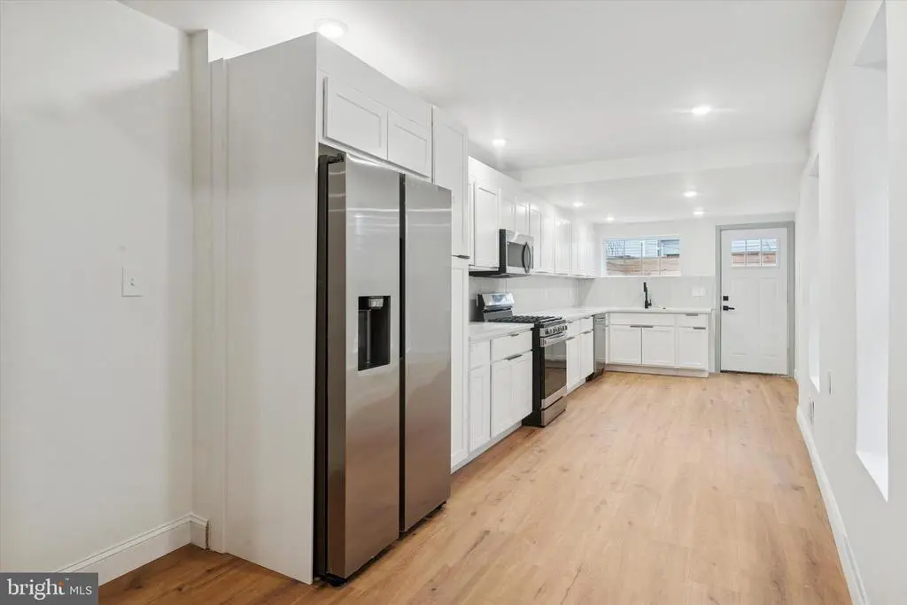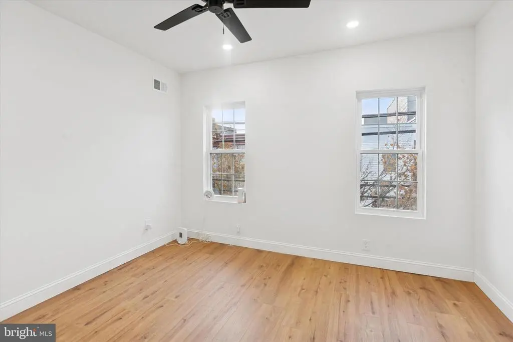 Welcome to this beautifully designed 3-story, 4-bedroom 3.5-bathroom home in the heart of Brewerytown, offering modern finishes, generous living space, and thoughtful details throughout. Step inside to find an open-concept first floor featuring new wood floors, a kitchen with white shaker cabinets, sleek white countertops, and stainless-steel appliances — perfect for cooking and entertaining. A convenient powder room and access to the wooden-fenced backyard complete the main level. The second floor includes two comfortable bedrooms, each with bifold closets and black ceiling fans, plus a hallway bathroom with a tub/shower combo and stylish finishes. The front bedroom serves as a private suite, featuring a full bathroom with a walk-in shower and a single wood vanity topped with granite. A hallway washer and dryer closet adds convenience. The third floor is a luxurious master suite retreat — complete with a bedroom and bath with a double vanity, large soaking tub, separate shower, and private deck ideal for relaxing or morning coffee. The finished basement adds valuable living space, perfect as a fourth bedroom, guest room, or home office, featuring soft carpeting for added comfort. Additional features include central air and heat, modern fixtures, and a layout designed for both comfort and functionality. Enjoy living in one of Philadelphia’s most vibrant neighborhoods, close to parks, dining, and easy access to Center City. **Some pictures are virtually staged to show you the home furnished.