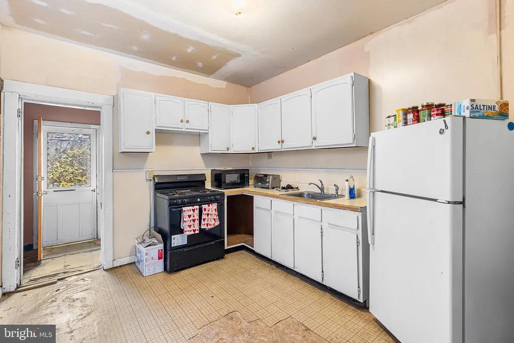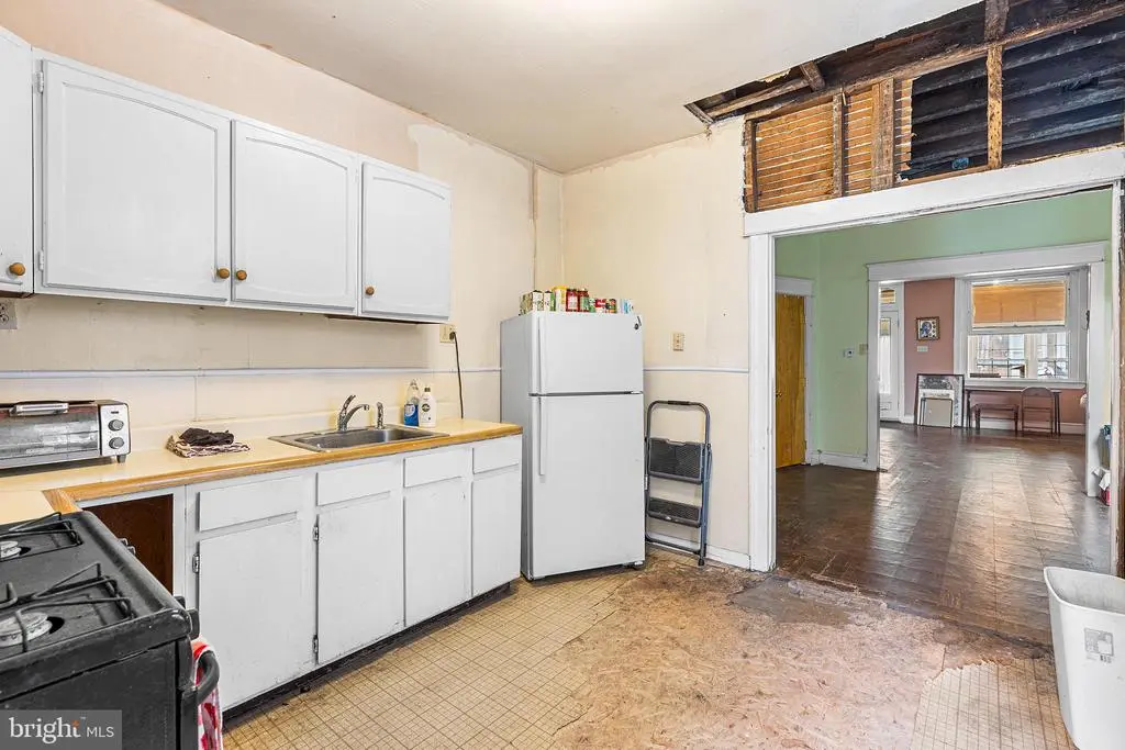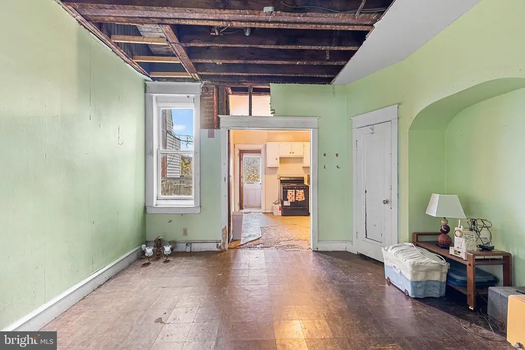 Opportunity knocks in this spacious Harrowgate rowhome with tall 9-foot ceilings and solid bones. This home is ready for someone to unlock its potential, whether through a thoughtful renovation to live in, a modest cosmetic update to rent, or a value-add investment. Original architectural details add character throughout, including the front double entry doors crafted in solid red oak with tall glass panels and brass hardware—perfectly poised for restoration. Inside, the main floor offers generous width and high ceilings, ideal for reimagining the living spaces. The rear patio, approximately 170 sq. ft., invites creative landscaping ideas. Upstairs features three large bedrooms, two of which connect through a charming Quaker-style door, plus a full bathroom. The big kitchen flows into a rear mudroom/laundry area, offering functional space for modern living. The basement has solid joist seating, ready to support your renovation plans. Harrowgate is an emerging neighborhood where early 20th-century Philadelphia architecture is being rediscovered and restored. The community is active and engaged, with local initiatives improving public spaces and fostering a strong sense of place. Conveniently located near Aramingo Avenue shopping, public transit on Frankford and Castor Avenues, the Tioga Station of the Market-Frankford El, I-95 access, and within walking distance to Walmart and Target. Nearby 3-bedroom homes that have been updated rent for around $1,500/month, and recently renovated properties within a quarter mile have sold in the $185,000–$215,000 range, demonstrating both rental and resale potential. This is a home for someone with vision—whether to create a comfortable personal space, generate rental income, or make a modest renovation that adds value. Potential is the key word.
