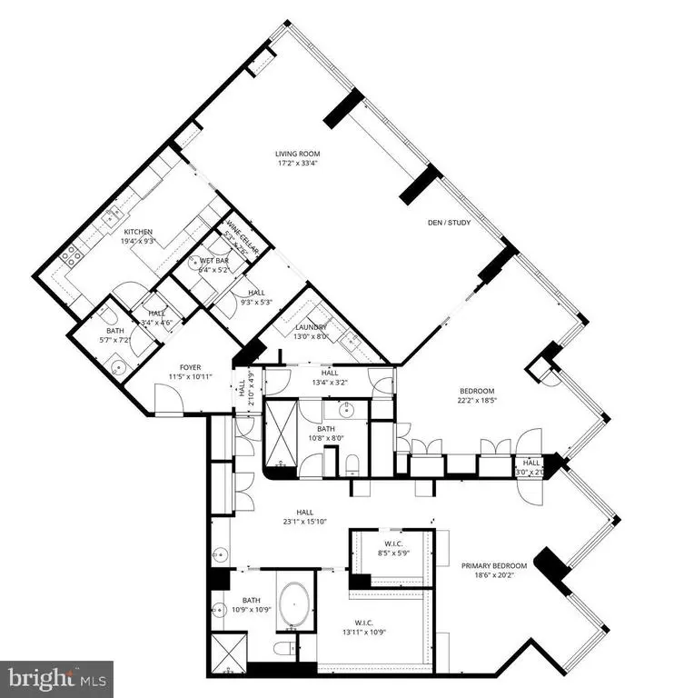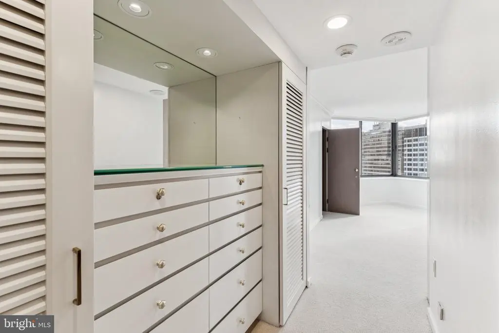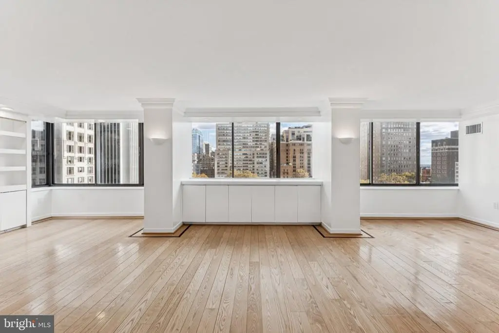 Custom designed home with spectacular Rittenhouse Square views and high-end finishes at the highly coveted Residences at The Rittenhouse Hotel. From the jaw-dropping sunrise views directly over Rittenhouse Square to the large open spaces, perfect for entertaining, this one-of-a-kind showplace is not to be missed. Upon entering the home, you are greeted by a welcoming foyer which conveniently branches out in all directions. Heading straight from the foyer towards the great room is a center gallery boasting architectural ceiling detail with accent lighting and a hidden wet bar with large Kedco wine refrigerator. The grand open great room is a love story to Rittenhouse Square. No matter where you are in the space, the wall of oversized windows provides a stunning view of the beautifully landscaped park. Additional features include custom built-ins, including under window storage and two display bookcases with more storage space; accent lighting; light hardwood floor with inlay; architectural details; and ample space for various living and dining layouts. There is also plenty of room to create a dedicated den/study. Adjacent to the great room is the high-end chef's kitchen with sleek flat panel white cabinetry; undercabinet lighting; granite countertops; double bowl stainless steel sink with garbage disposal, instant hot water faucet, and filtered water faucet; recessed lighting; and high-end appliance package including a double Thermador oven, five burner GE range with hood, Samsung dishwasher, Sub Zero fridge, and trash compactor. Between the kitchen and foyer is a custom, mirrored powder room and deep coat closet. On the other end of the great room is a spacious den/bedroom with two walls of windows overlooking The Square, two built-in Murphy beds, display shelving, a deep wall closet, and a hidden door leading to the primary suite. The luxurious primary suite includes a large bedroom with oversized windows overlooking The Square, two built-in bookcases, and hidden storage space. Attached to the bedroom is a massive dressing area with multiple custom built-ins, two walk-in closets, separate vanity with mini sink, and two marble-appointed bathrooms-- one with a jacuzzi tub and glass enclosed shower and the other with a large glass enclosed shower. Off of the dressing area is a hallway laundry room with white cabinetry, large sink, and side-by-side LG washer and dryer. Additional home highlights include Lutron lighting, automatic shades, beautiful millwork and molding throughout, plush carpet in the bedrooms, and hardwood floors throughout the foyer, great room, and kitchen. The condominiums at The Rittenhouse sit atop the five-diamond Rittenhouse Hotel. Residents of The Rittenhouse enjoy the use of a chauffeur-driven town car, concierge, and 24-hour lobby attendant. And for an additional fee they can enjoy the same amenities as hotel guests, including valet parking, housekeeping services, room service, spa and fitness center, indoor pool, dog walking, the newly renovated Paul Labrecque Salon, and Lacroix Restaurant.