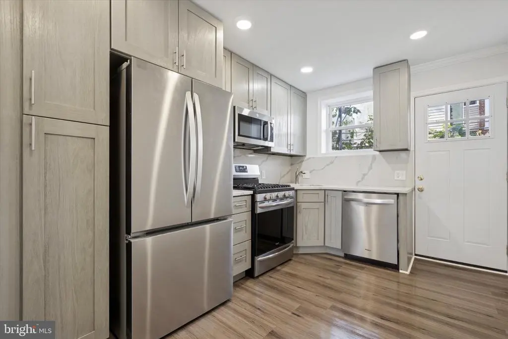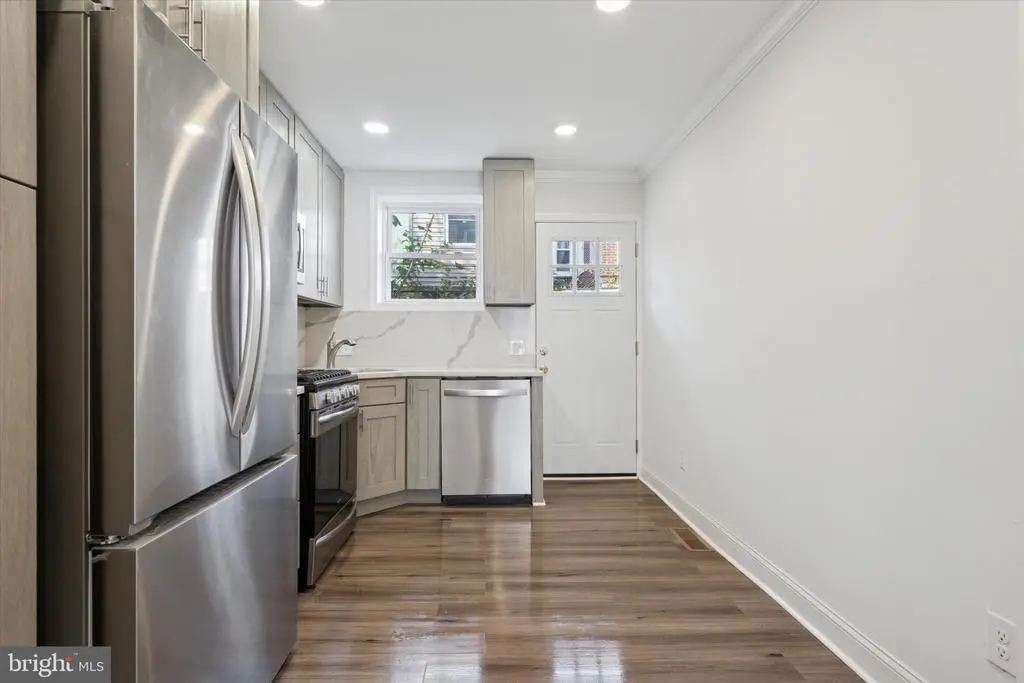 Stunningly Renovated 3-Bedroom Townhouse in Harrowgate! Welcome to 3450 Joyce Street, a fully renovated three-bedroom, one-and-a-half-bath townhouse in the heart of Harrowgate! This move-in-ready home features brand-new wood floors, recessed lighting, and a sun-filled open-concept first floor. The modern kitchen boasts new cabinets and countertops, stainless steel appliances, and access to a private back patio—perfect for relaxing or entertaining. A new powder room completes the first floor. Upstairs, enjoy three spacious bedrooms with new carpet, fresh paint, and a renovated full bathroom. Additional perks include a new HVAC system and an unfinished basement for extra storage or future customization. Just minutes from I-95, Tioga Train Station, and Harrowgate Park, with shopping, restaurants, and public transit nearby. Eligible for NeighborFirst programs with discounted interest rates, no mortgage insurance, and first-time buyer $6k lender credit. Don’t miss this beautiful, move-in-ready townhouse in a prime location!